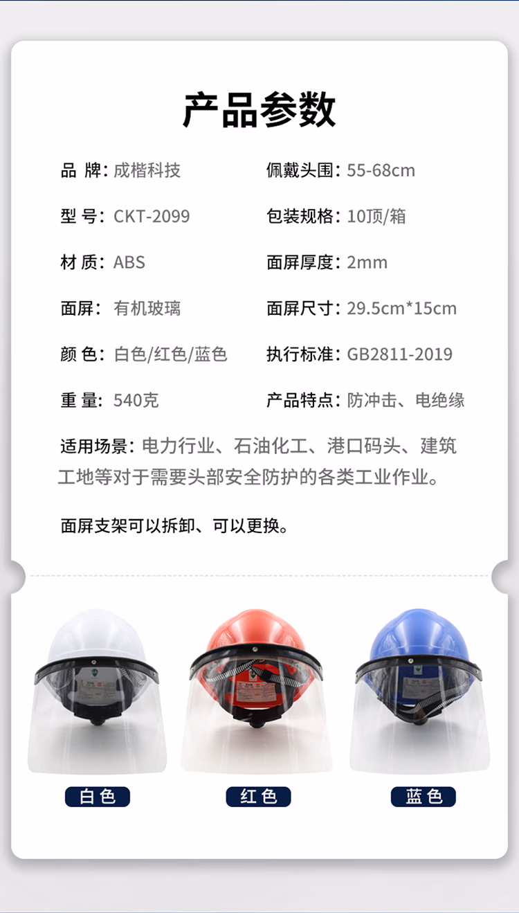 成楷科技国标电力安全帽工地绝缘带防电弧面屏 CKT-MP2099 红色 1个