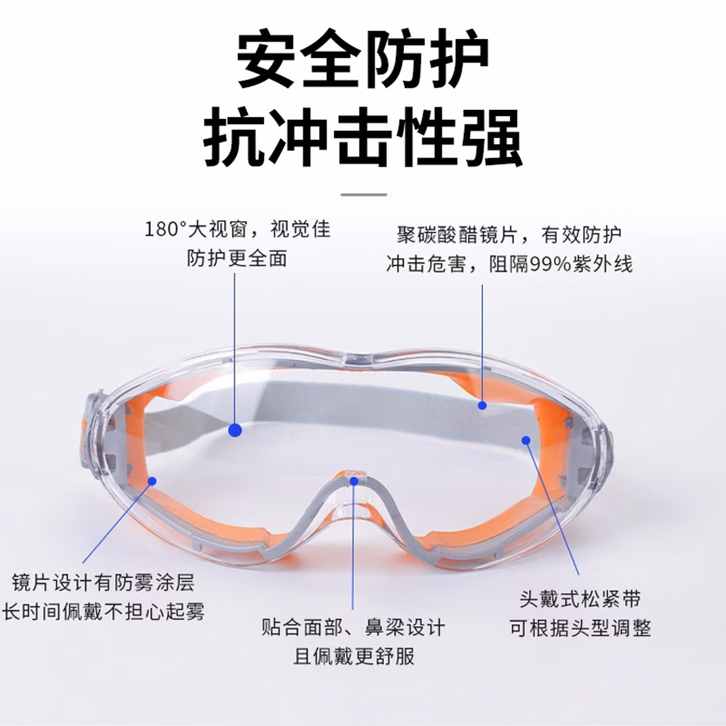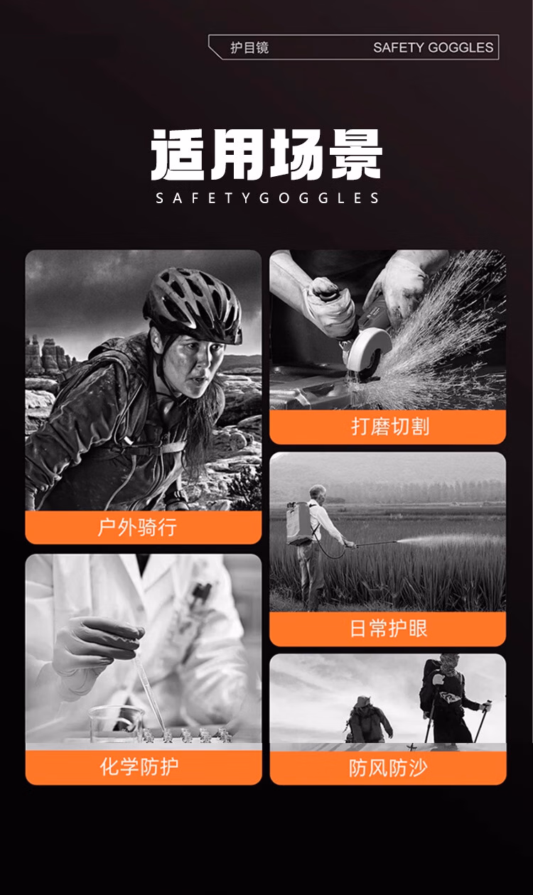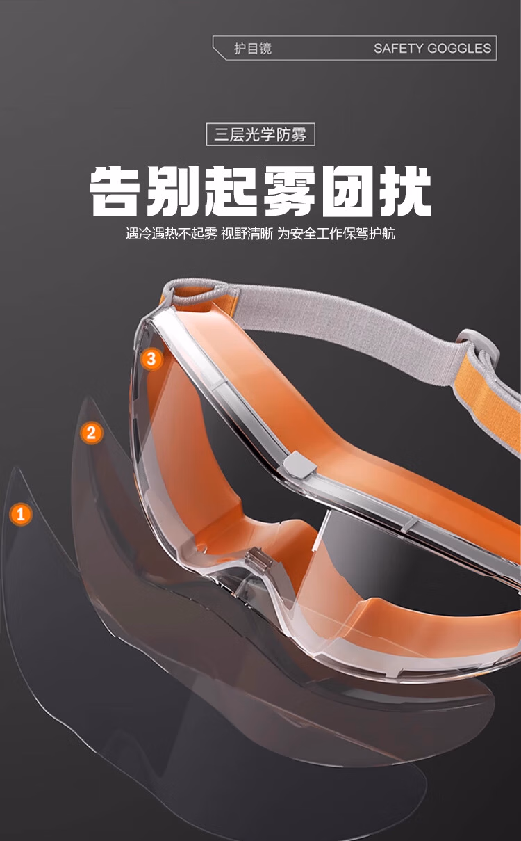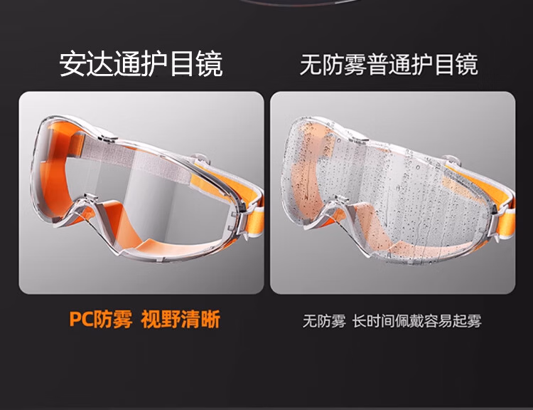 > 安达通 护目镜 防风沙防雾防花粉尘可戴近视眼镜防切割飞溅全封闭防护眼镜 【次日达】高强款 橙色