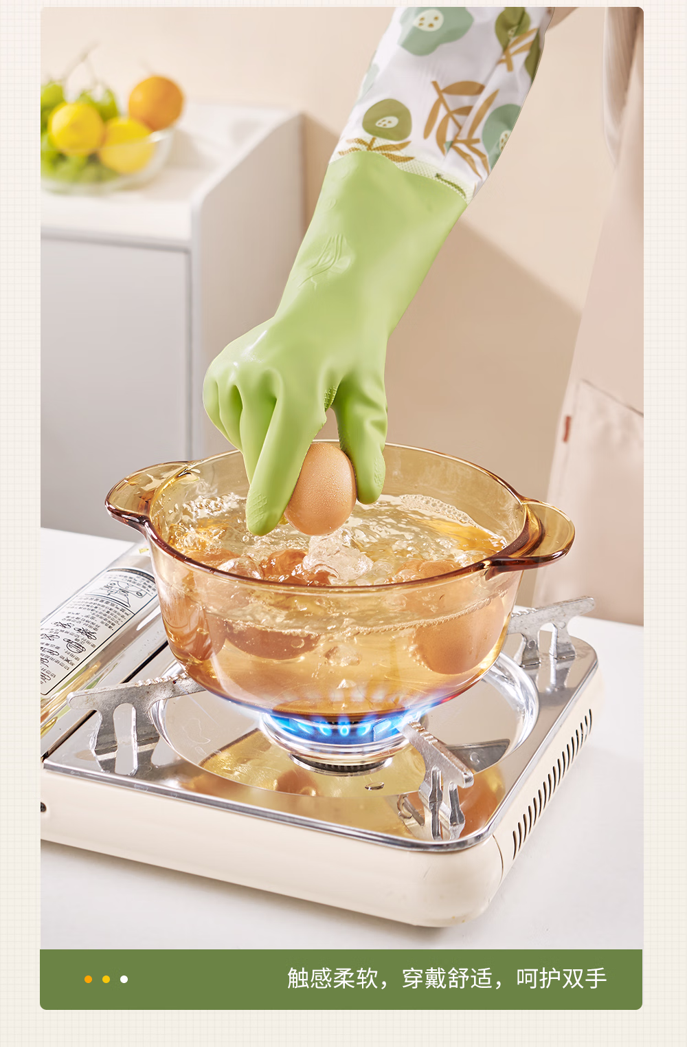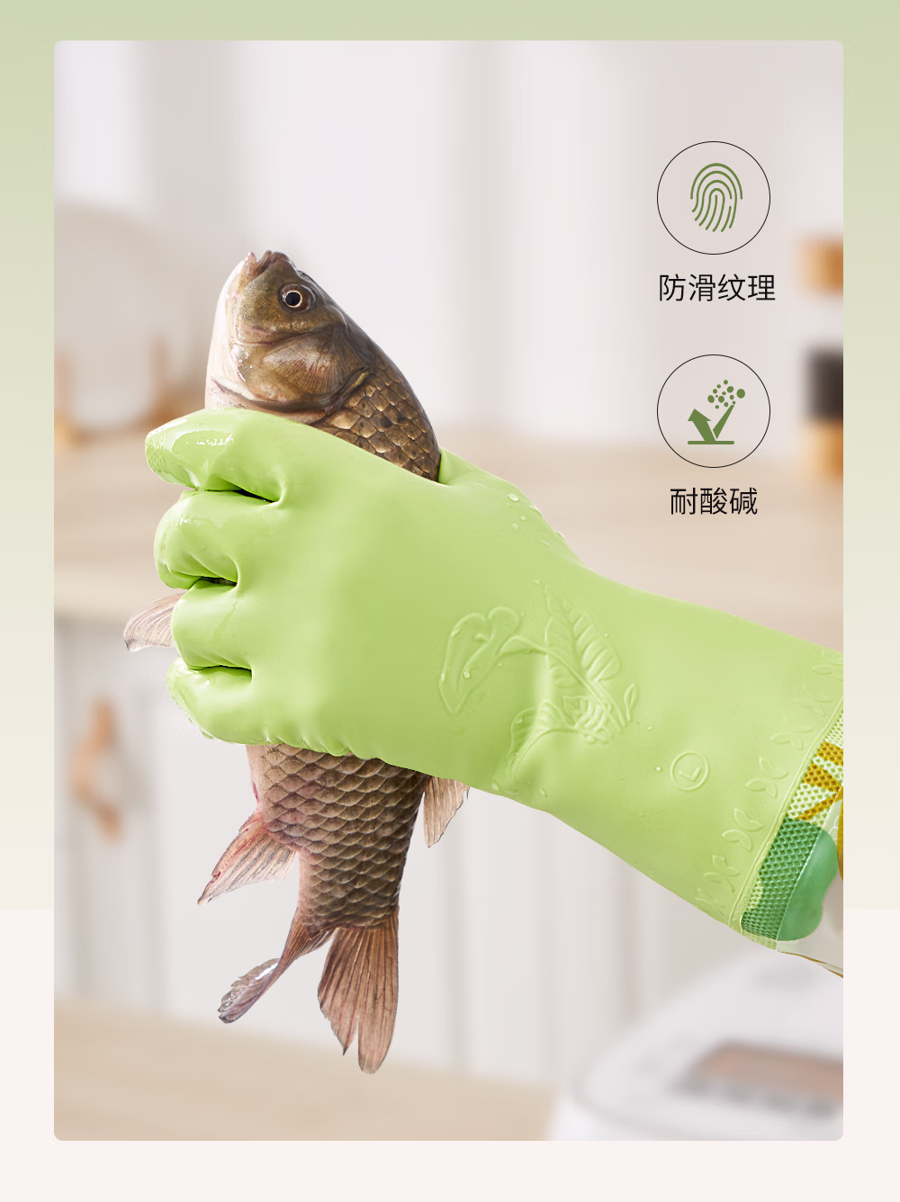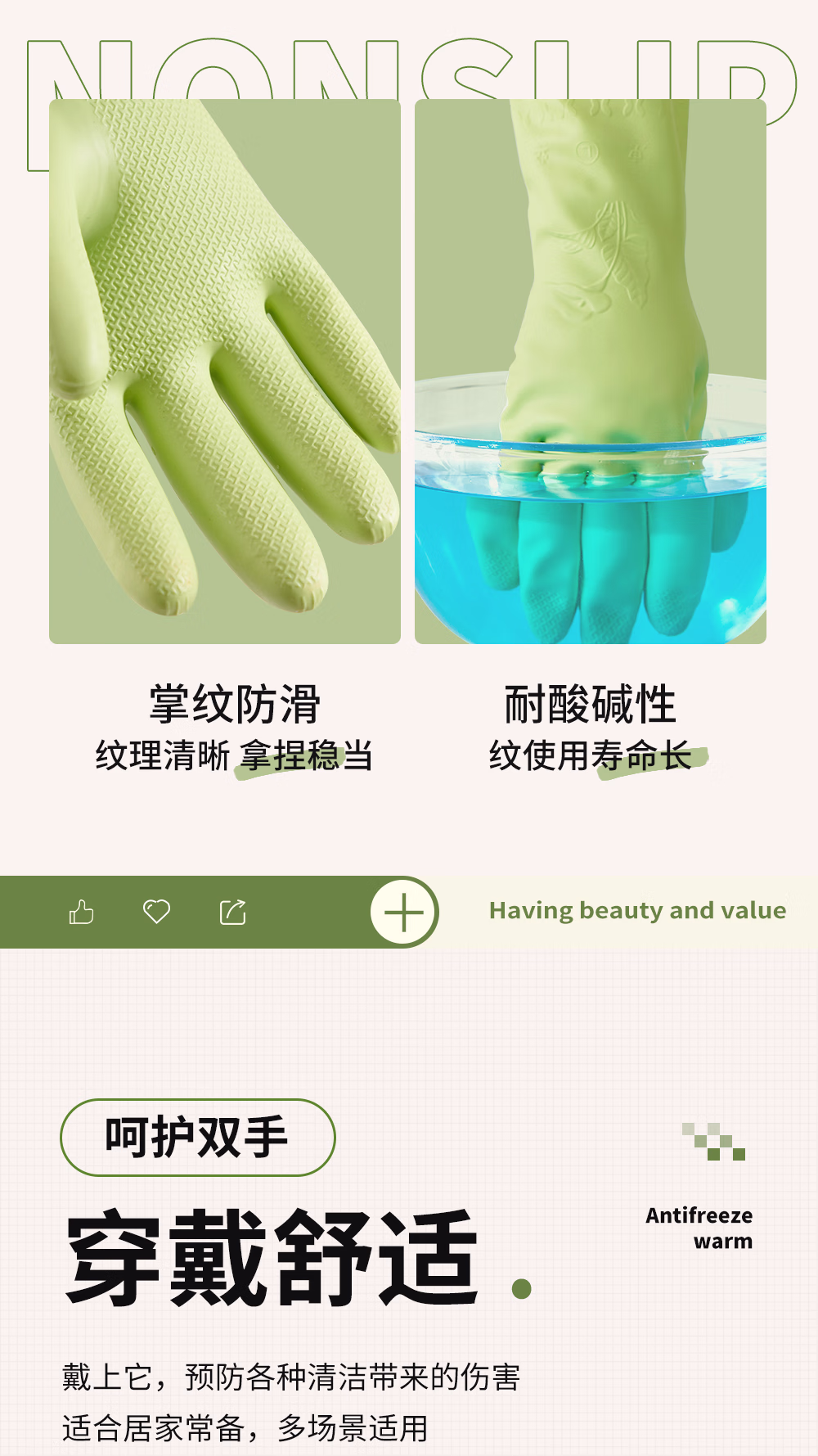 > 靓涤加绒手套家务洗碗厨房清洁防水防滑橡胶耐用型洗衣服加厚保暖冬季 1双装升级厚绒加长款-绿色 1双