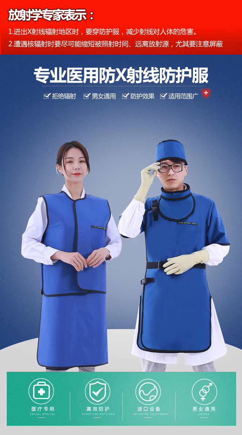 > 医用铅衣防护服放射科儿童X光放疗电离粒子x射线核辐射工作服围裙 0.35短袖双面防护服(5.2KG)