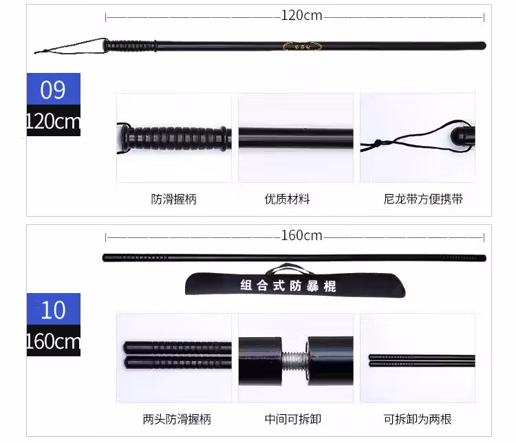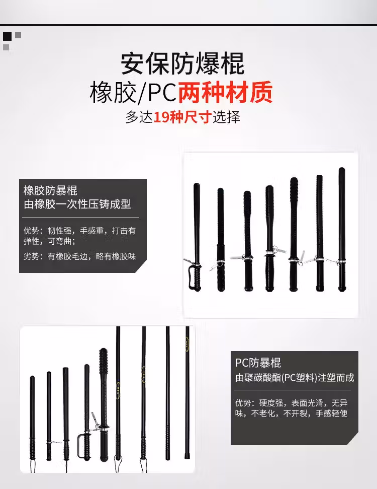 > 安达通 防暴棍 PC橡胶棍校园防暴小区安保器械 PC伸缩棍约52cm
