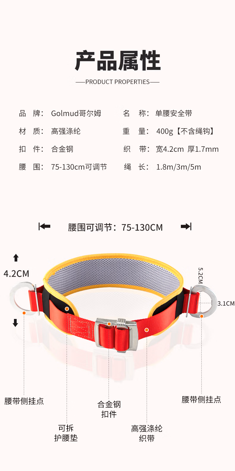 Golmud电工户外防坠落腰带单腰式安全带空调安装施工架子安全绳保险带GM838 BX-0 单独安全带