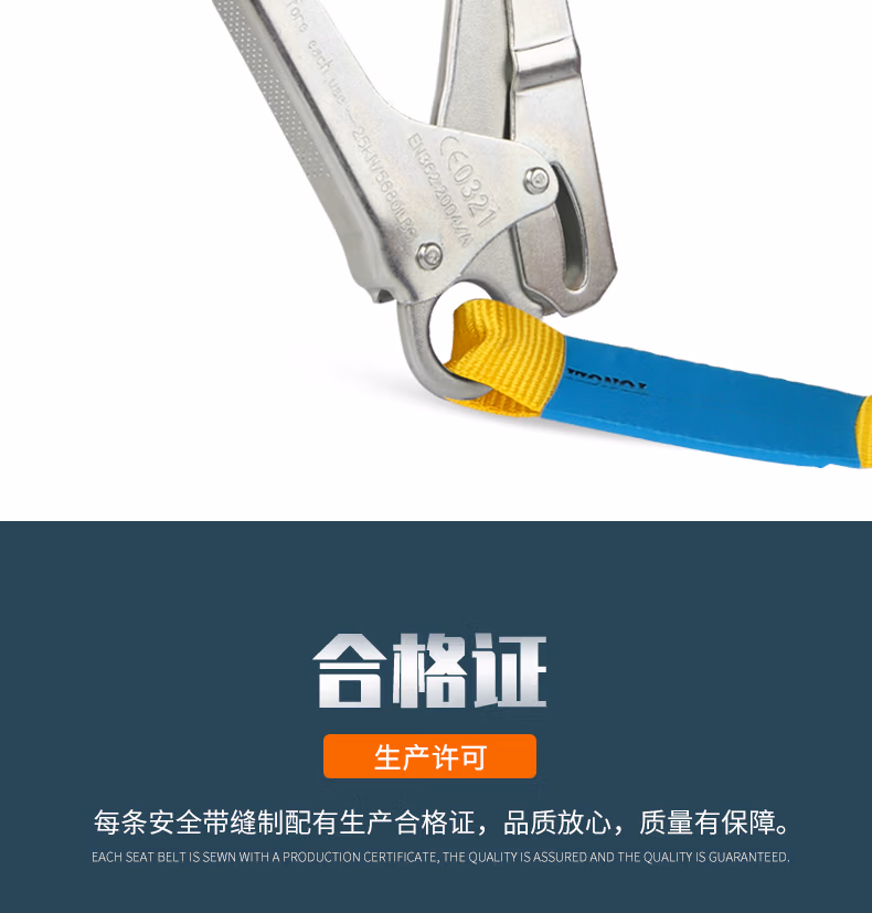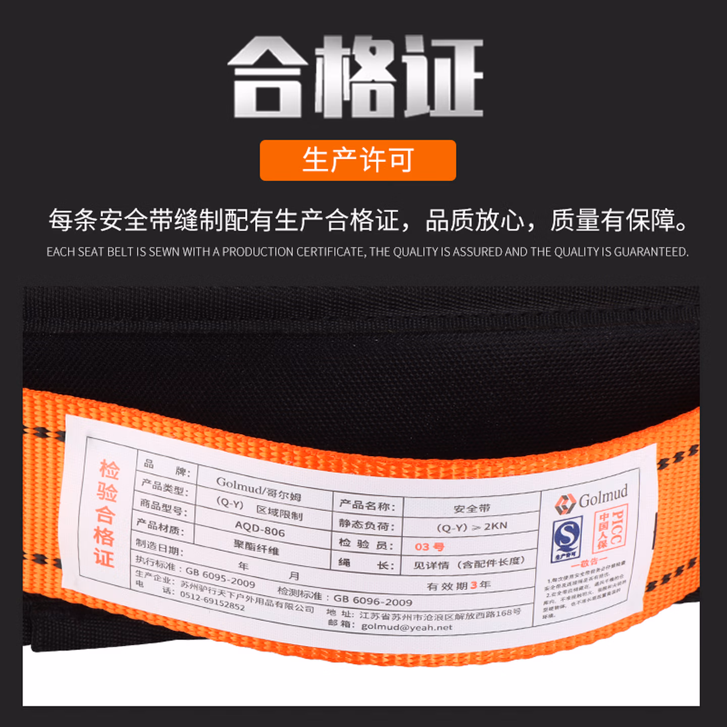 > Golmud 单腰式安全带 电工施工 安全绳保险带 806橘色单小钩1.8米