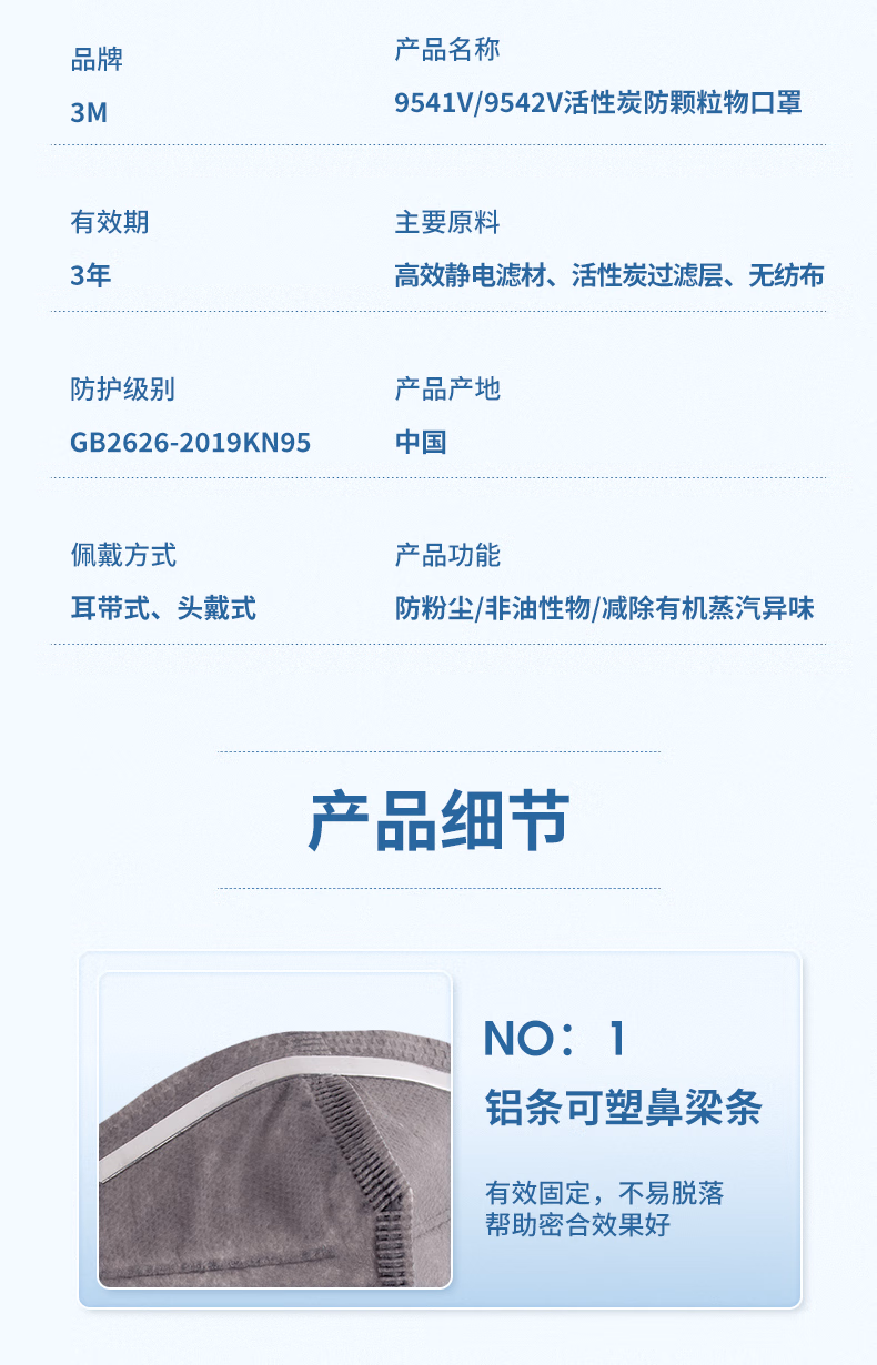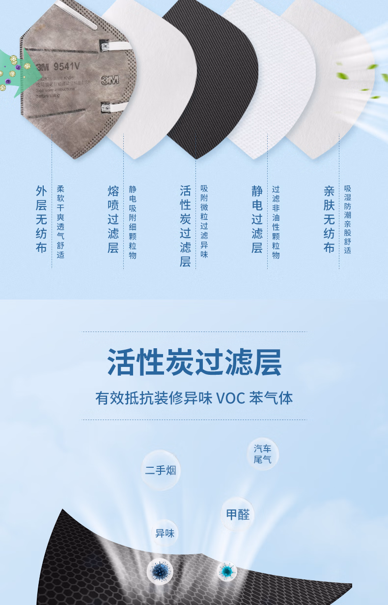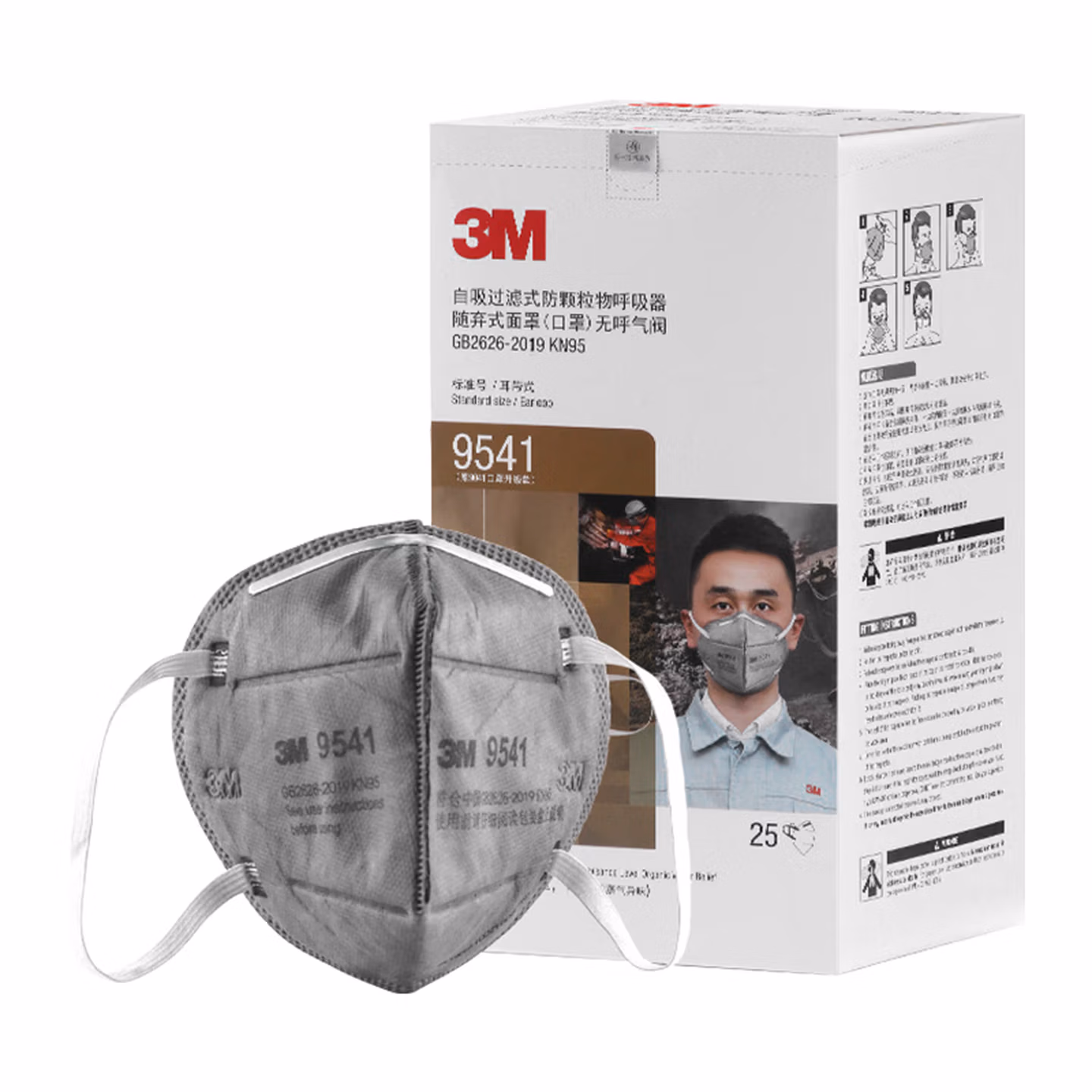 > 3M 9542活性炭口罩防尘工业粉尘飞沫雾霾PM2.5颗粒物异味KN95头戴式独立包装【25只/盒】