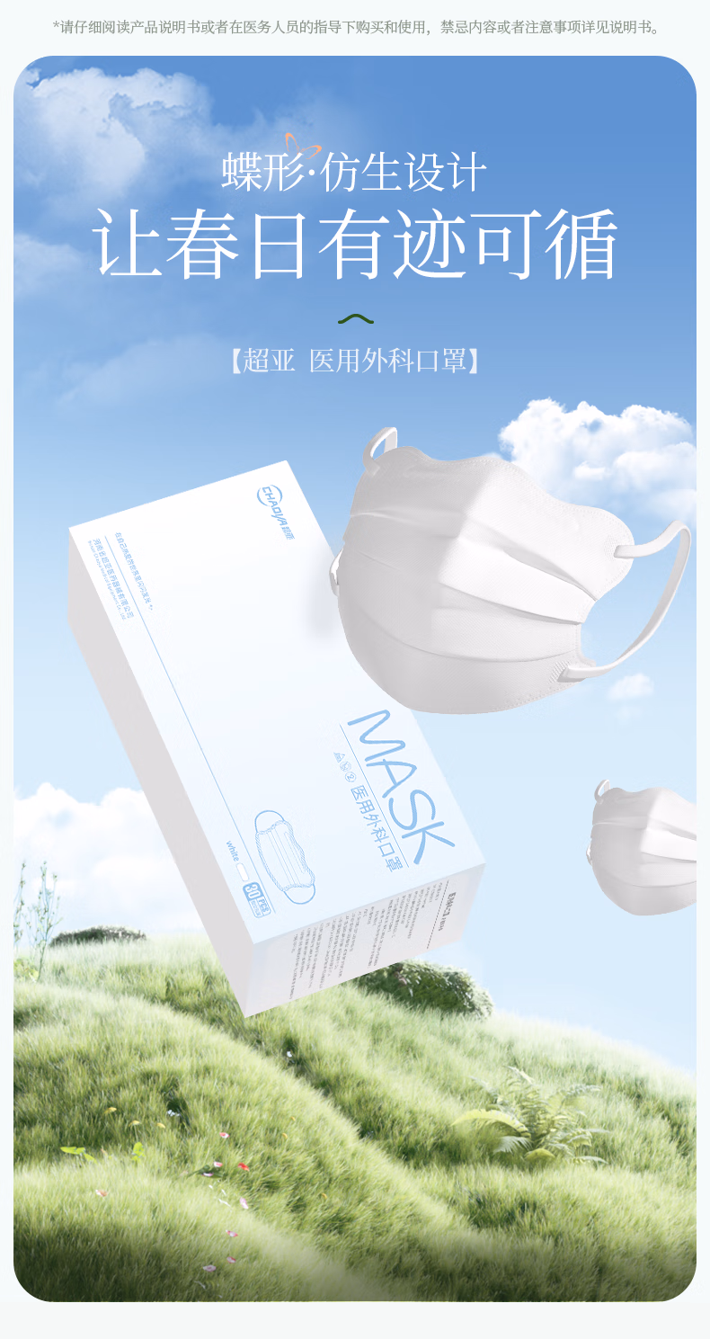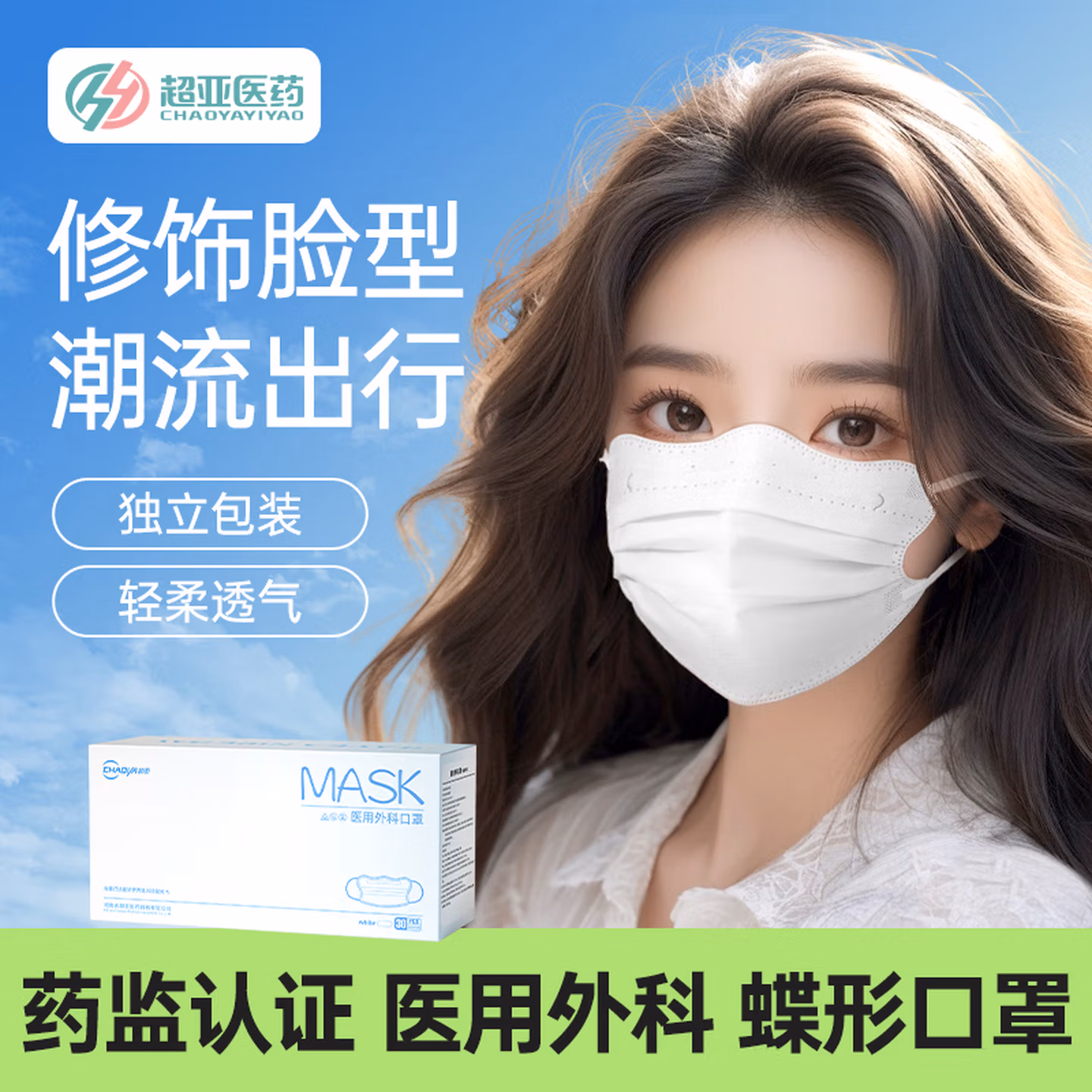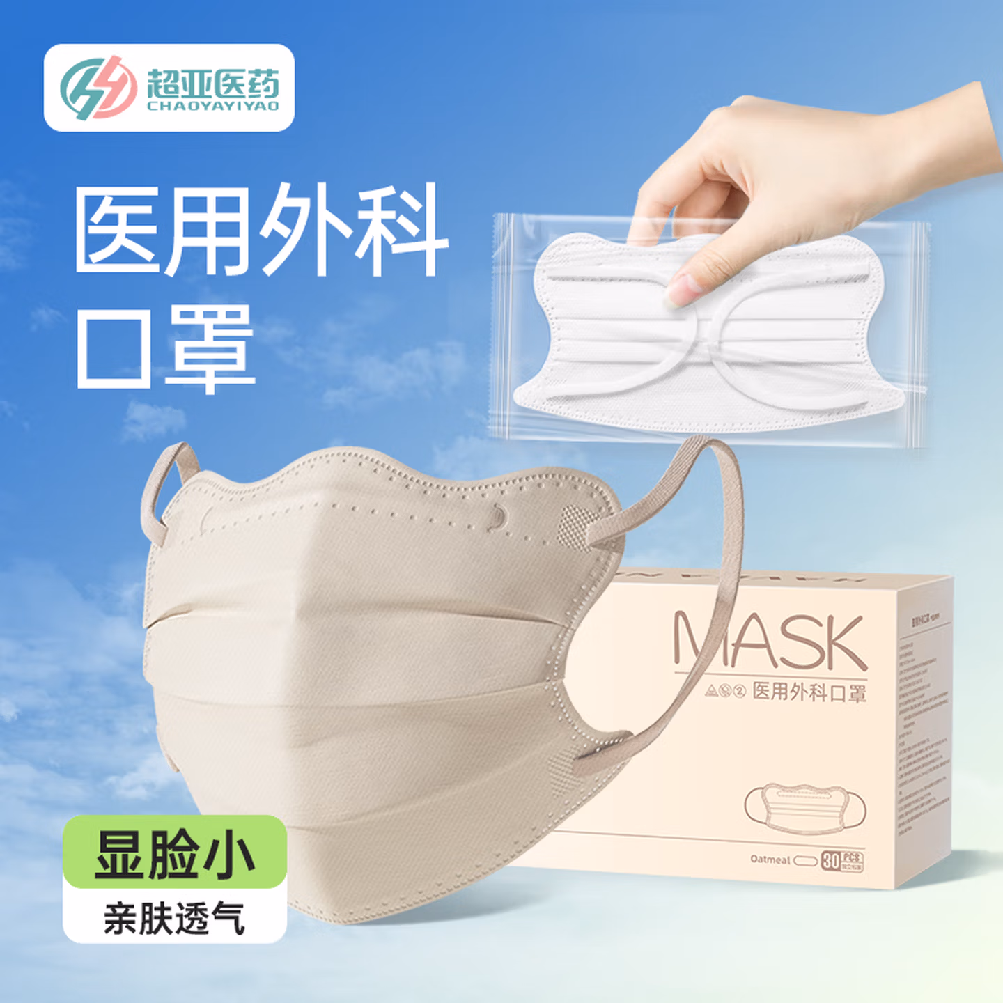 > 超亚 蝶形医用外科口罩一次性口罩平面医用口罩成人款驼色 30只/盒