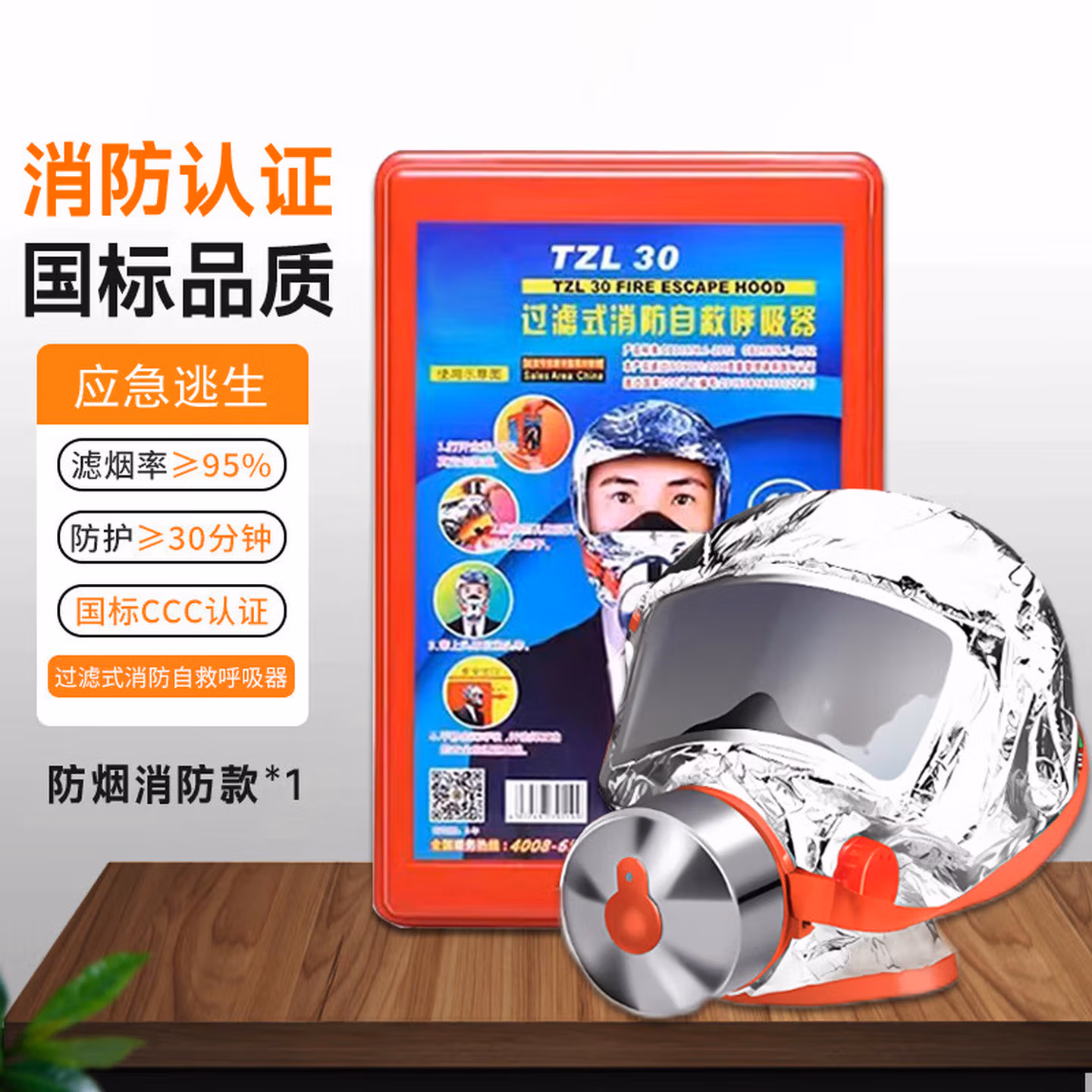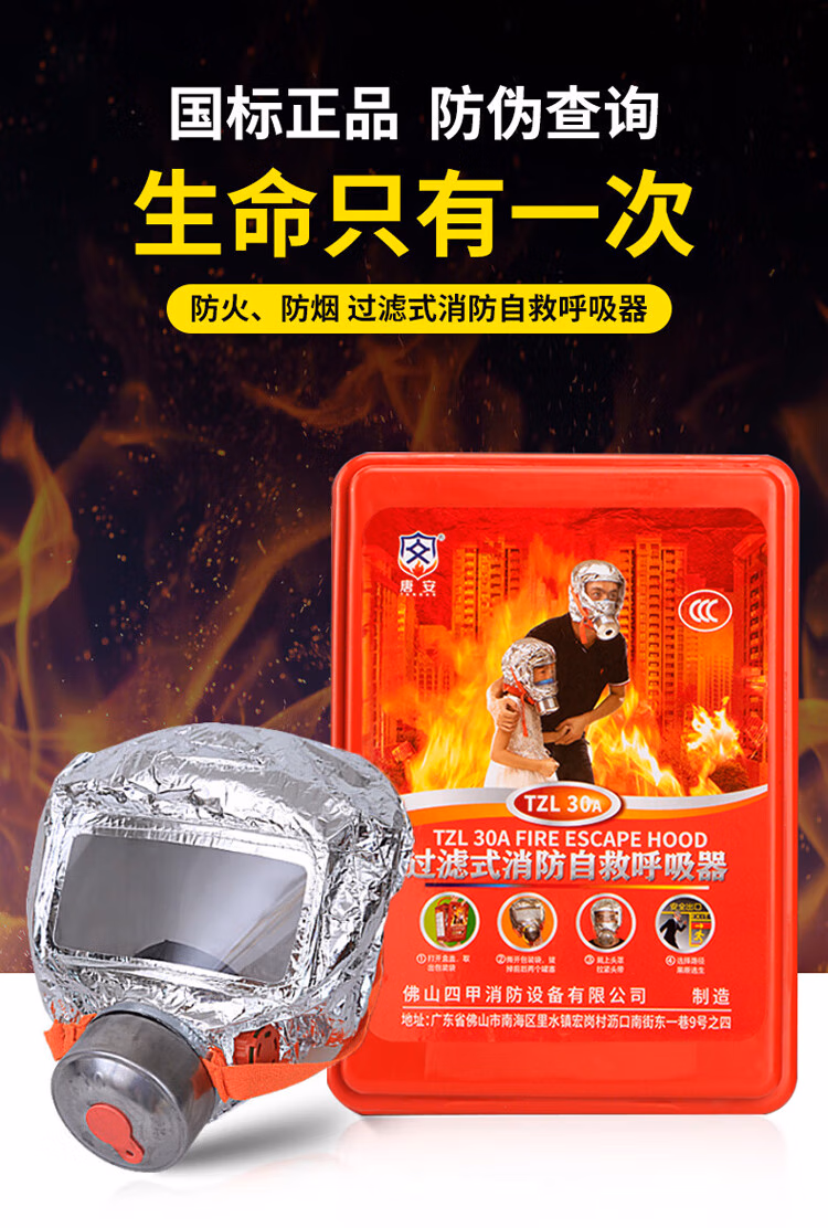 > 消防面具防烟面罩防毒酒店宾馆国标3C认证家用火灾逃生防火面具TZL30呼吸器 家庭B套装