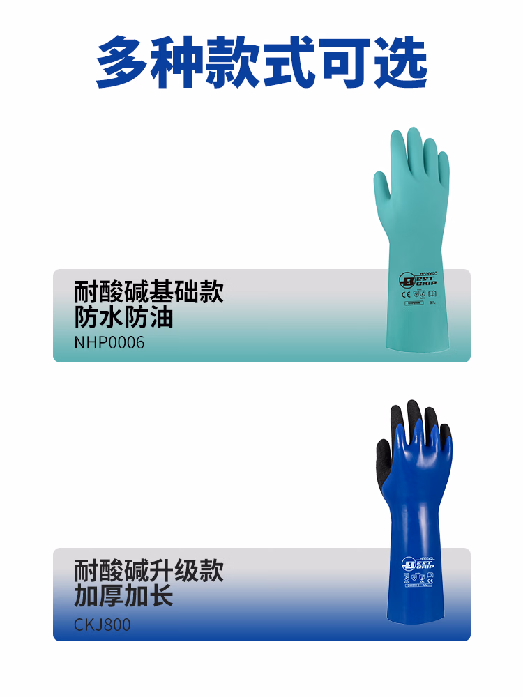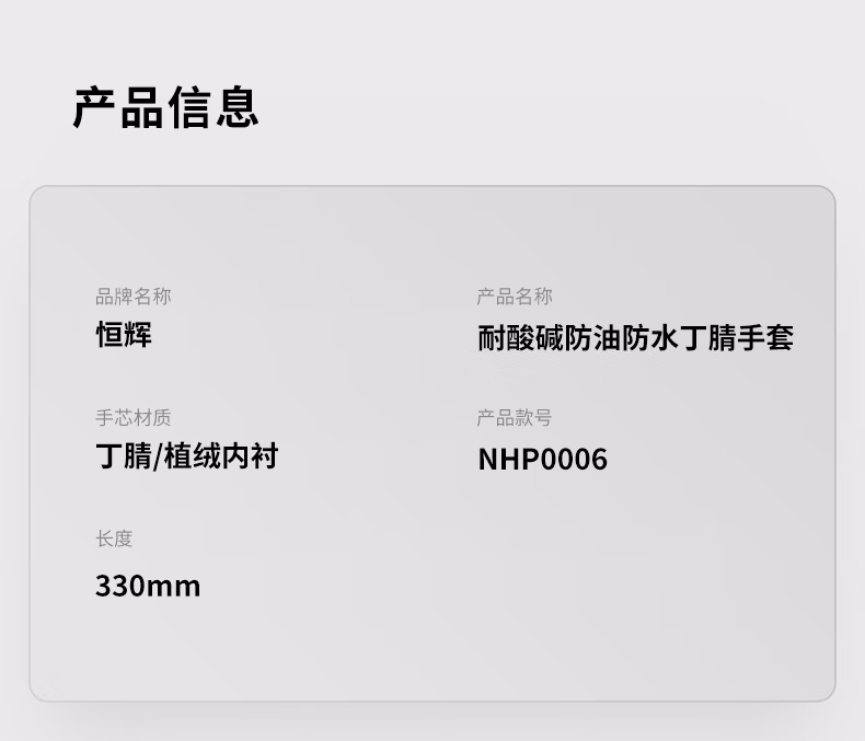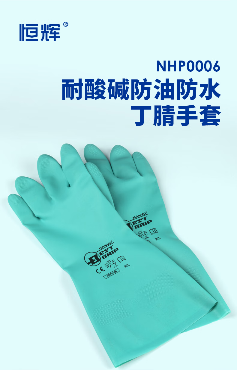 > 恒辉 丁腈耐酸碱手套 加厚加长防水防油 实验室男女防化抗腐蚀【正品行货】