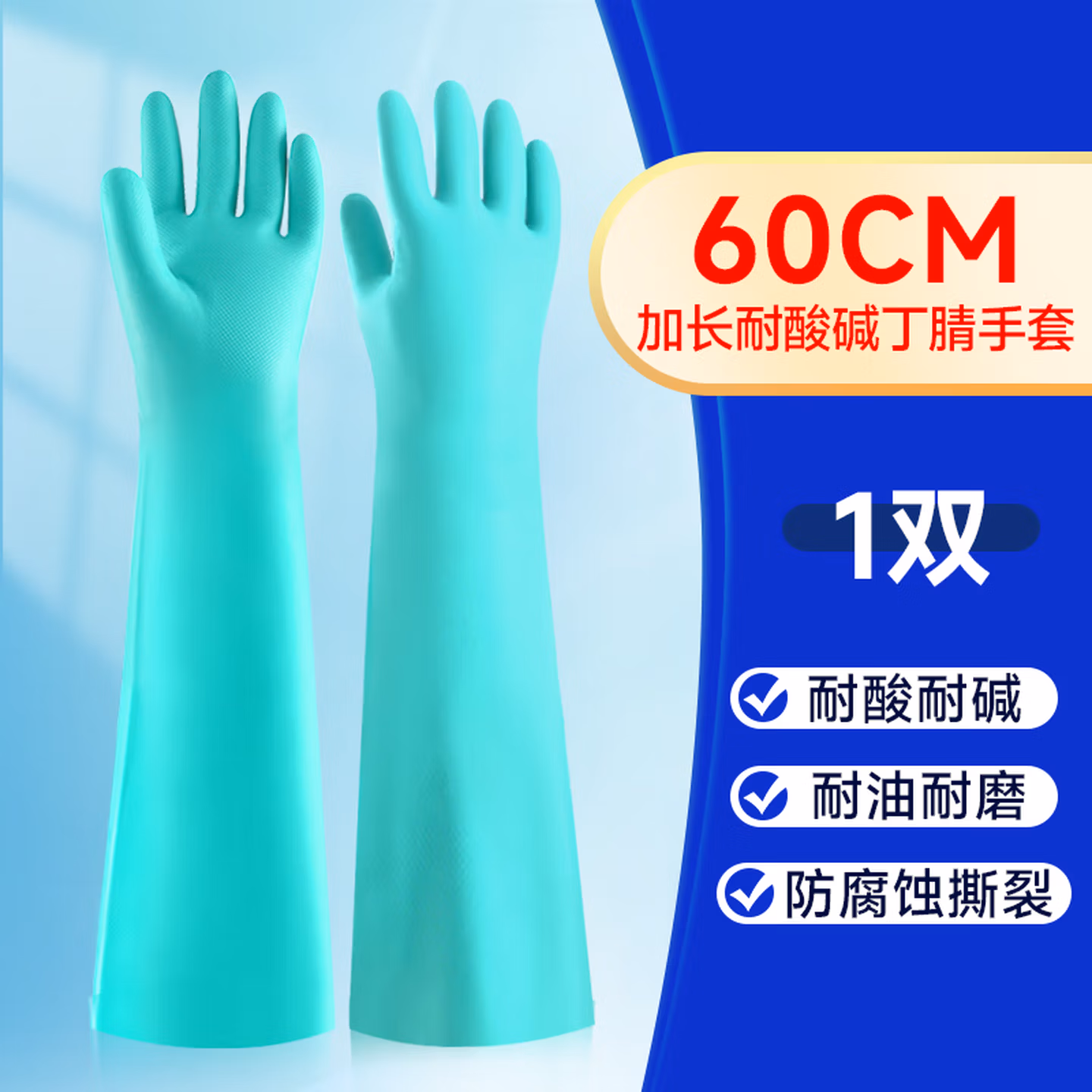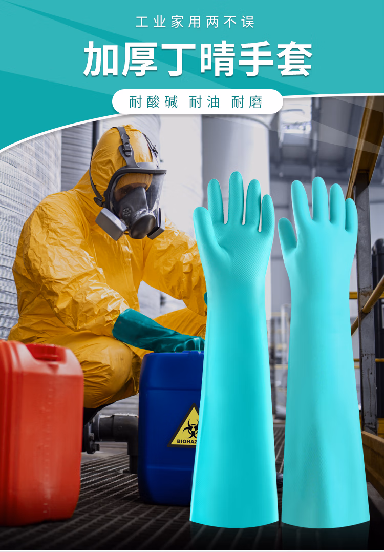 > 安美尚丁腈防化手套加长60cm加厚耐酸碱耐油防化化学实验室工业防护使用1双
