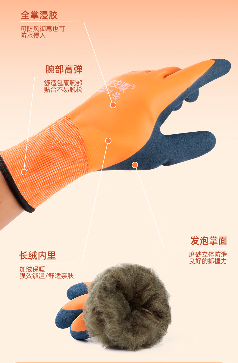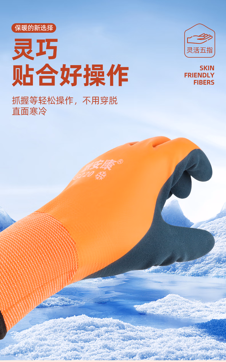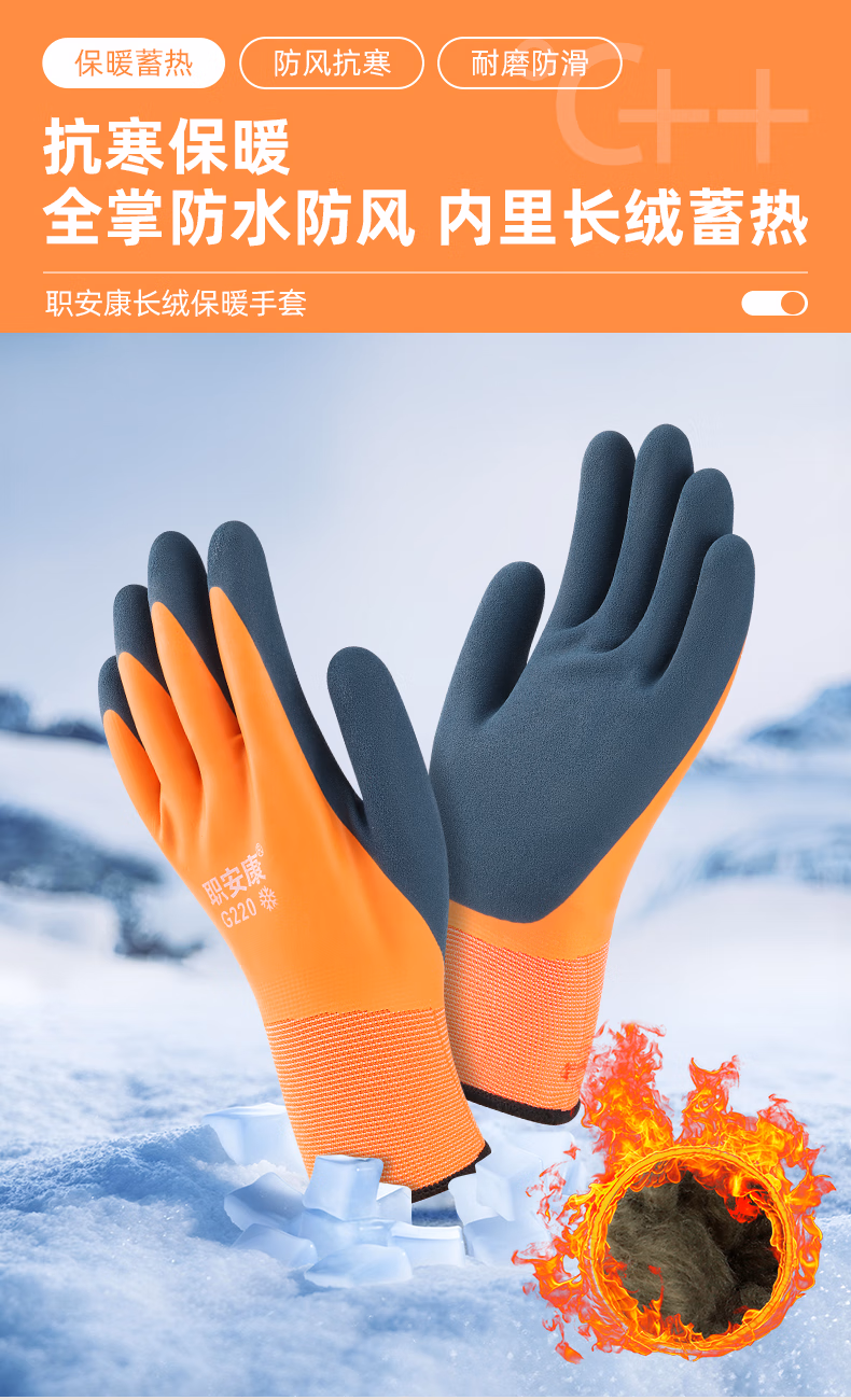 > 职安康冬季劳保手套加绒保暖防寒防冻防水防滑工作耐磨冷冻库赶海 G300 经济款(1双)加绒保暖