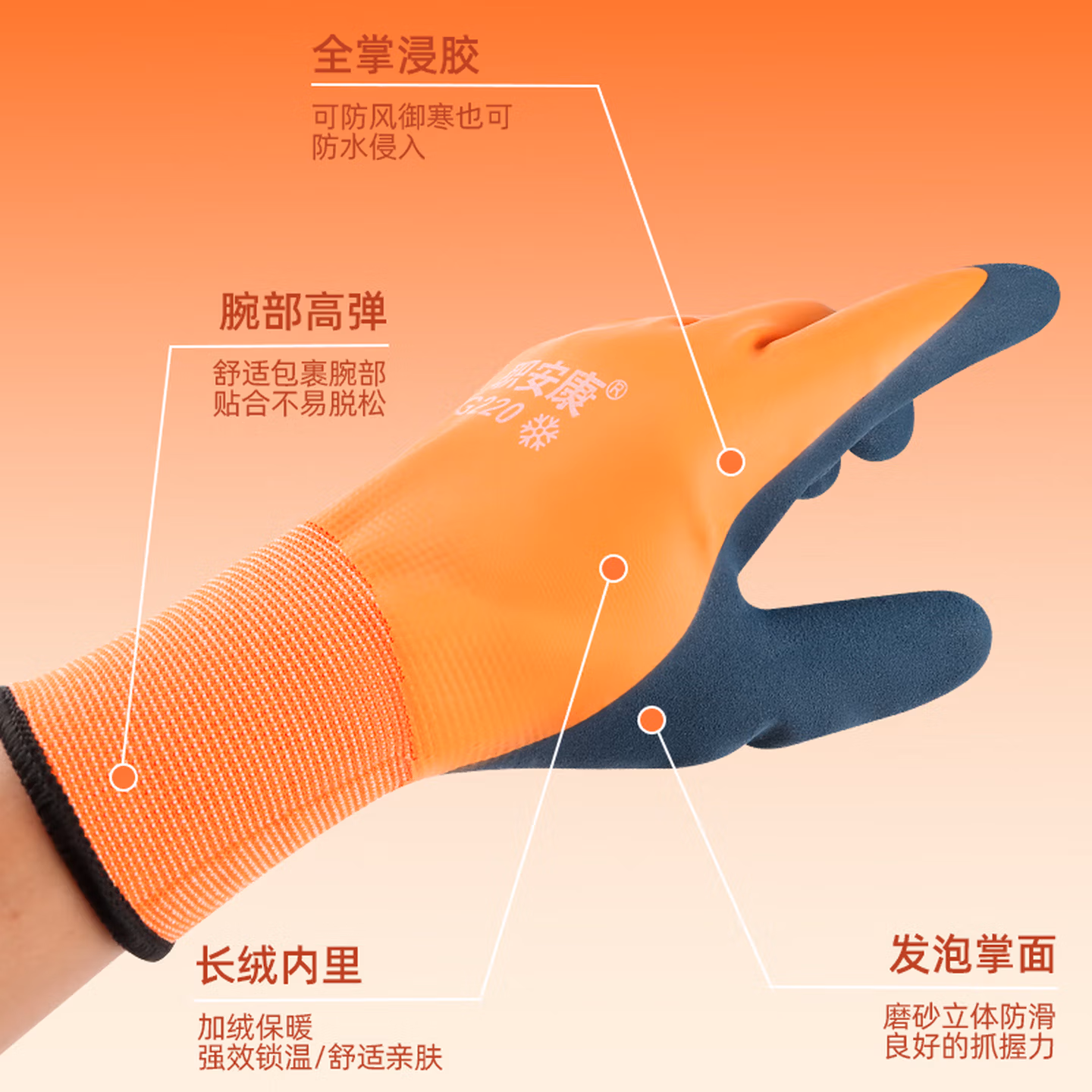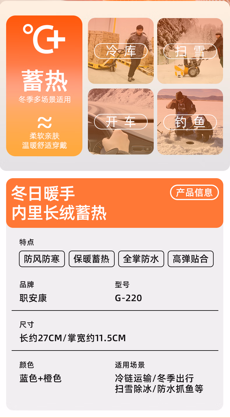 G220橙色(5双)加绒防水保暖
