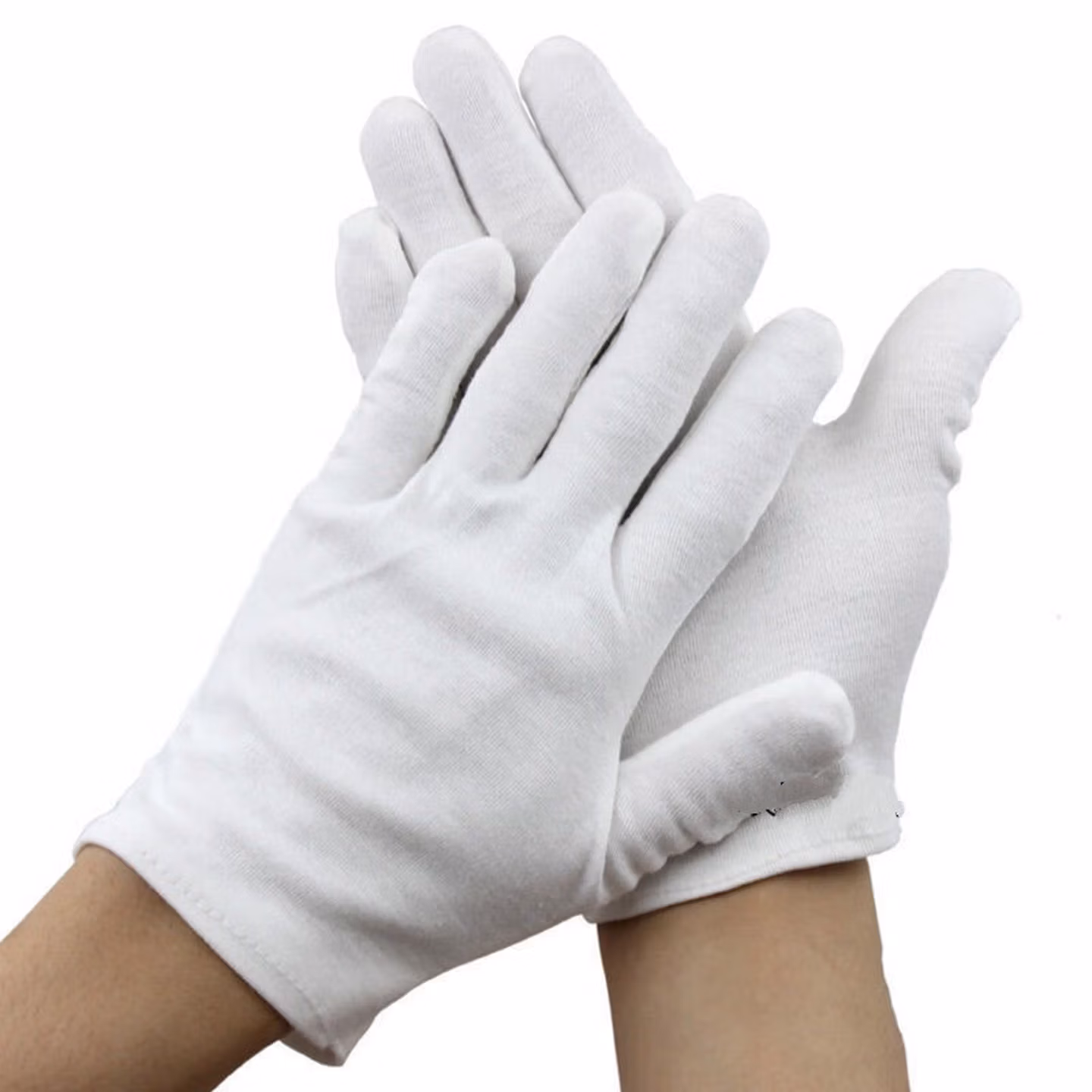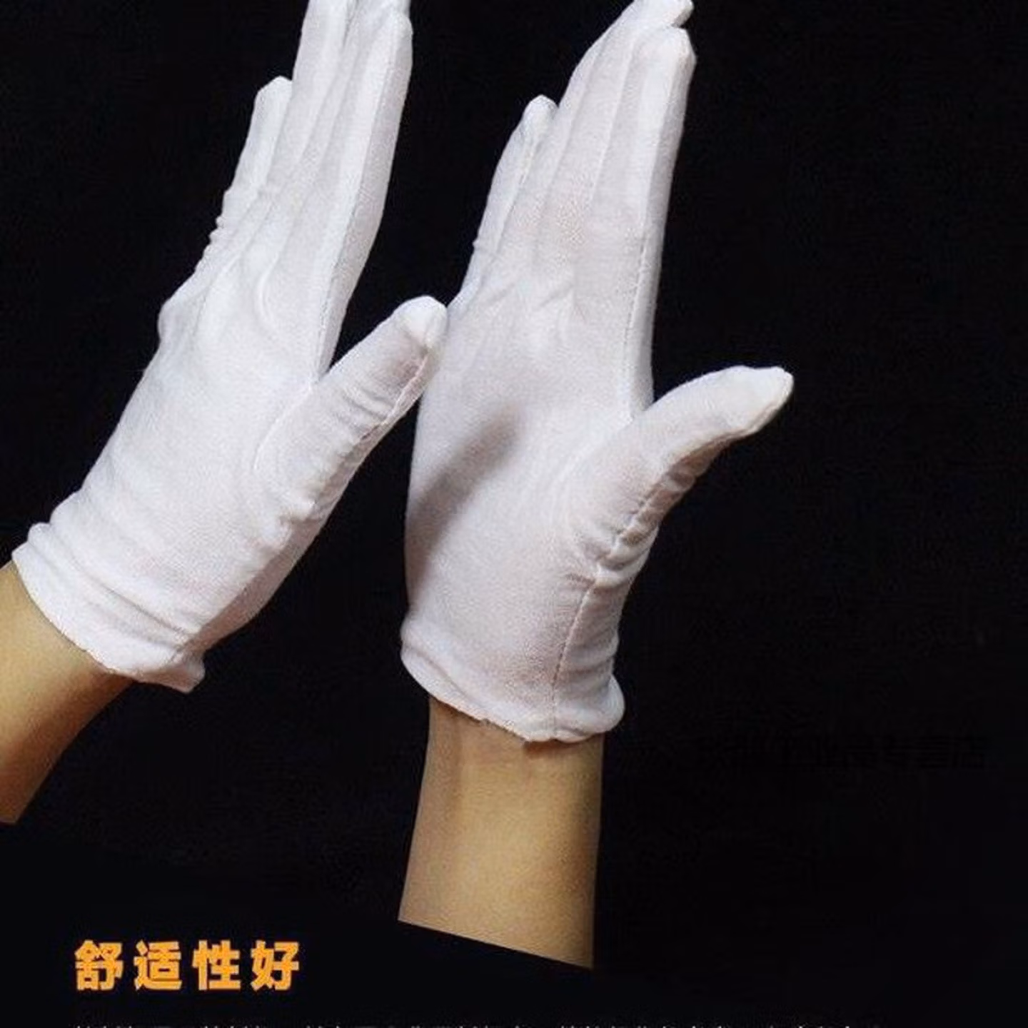 > 白色棉手套劳保工业耐磨作业文玩礼仪盘珠表演一次性薄款布手套 超薄款棉手套12双/包
