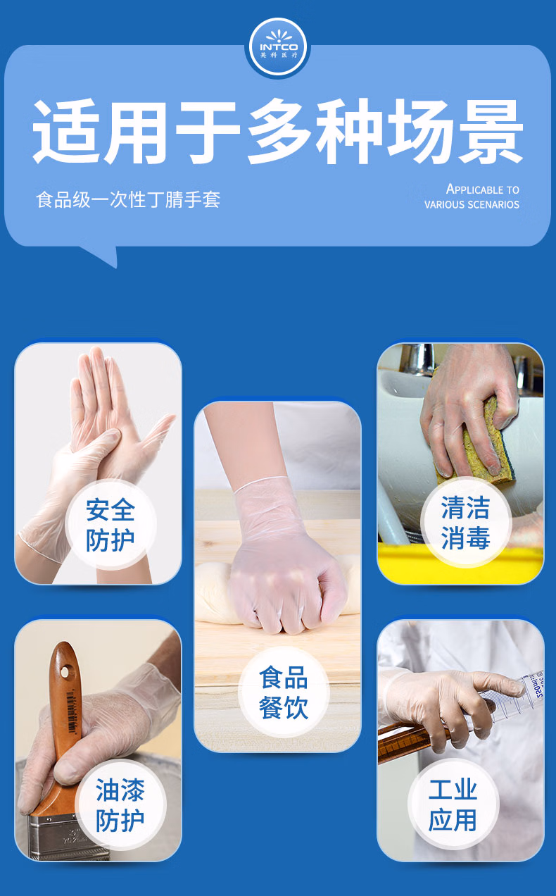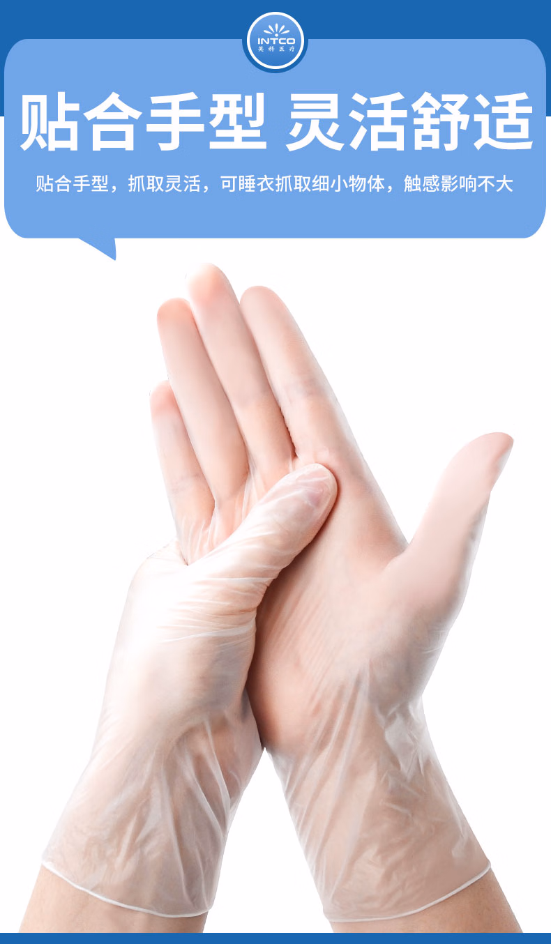 > 英科医疗(INTCO)一次性PVC手套100只S码食品级手套餐饮厨房清洁防水家务洗碗手套