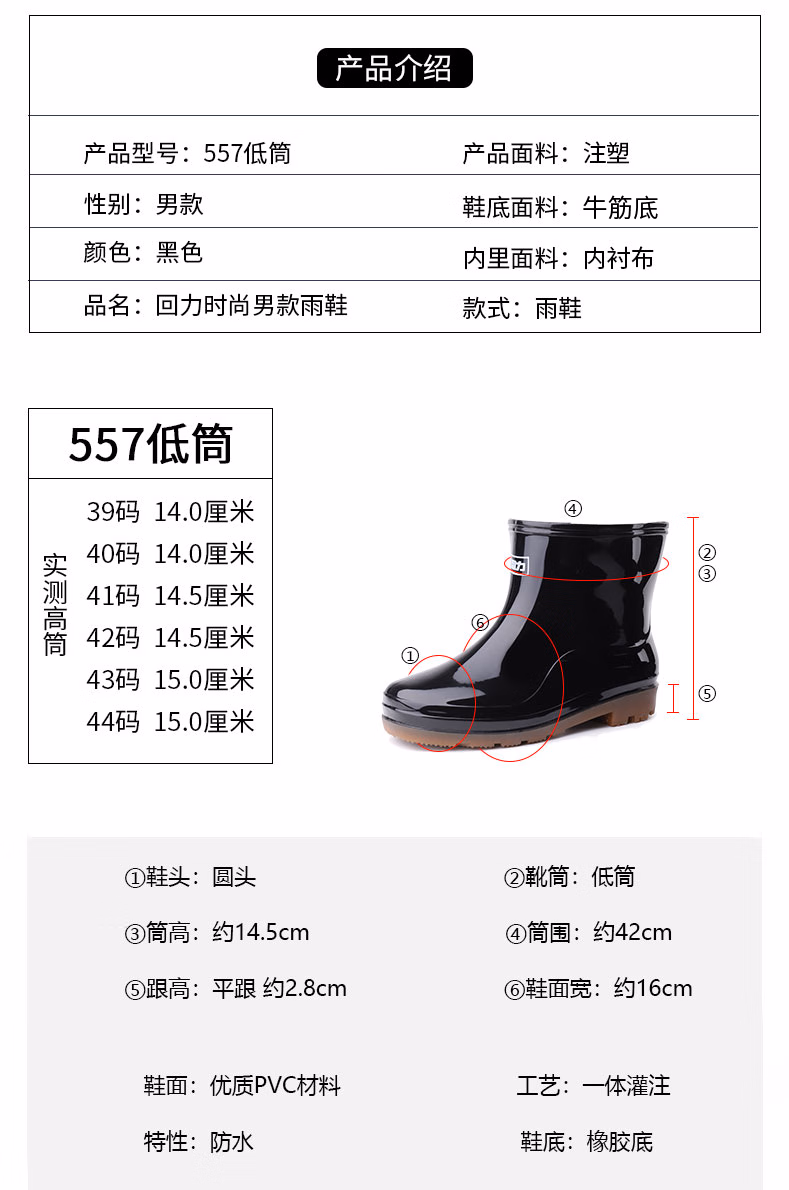 回力(Warrior)HXL557回力雨鞋男士冬季中筒防水胶鞋加绒可拆卸保暖水鞋雨靴套鞋6557黑色39(黑色39)