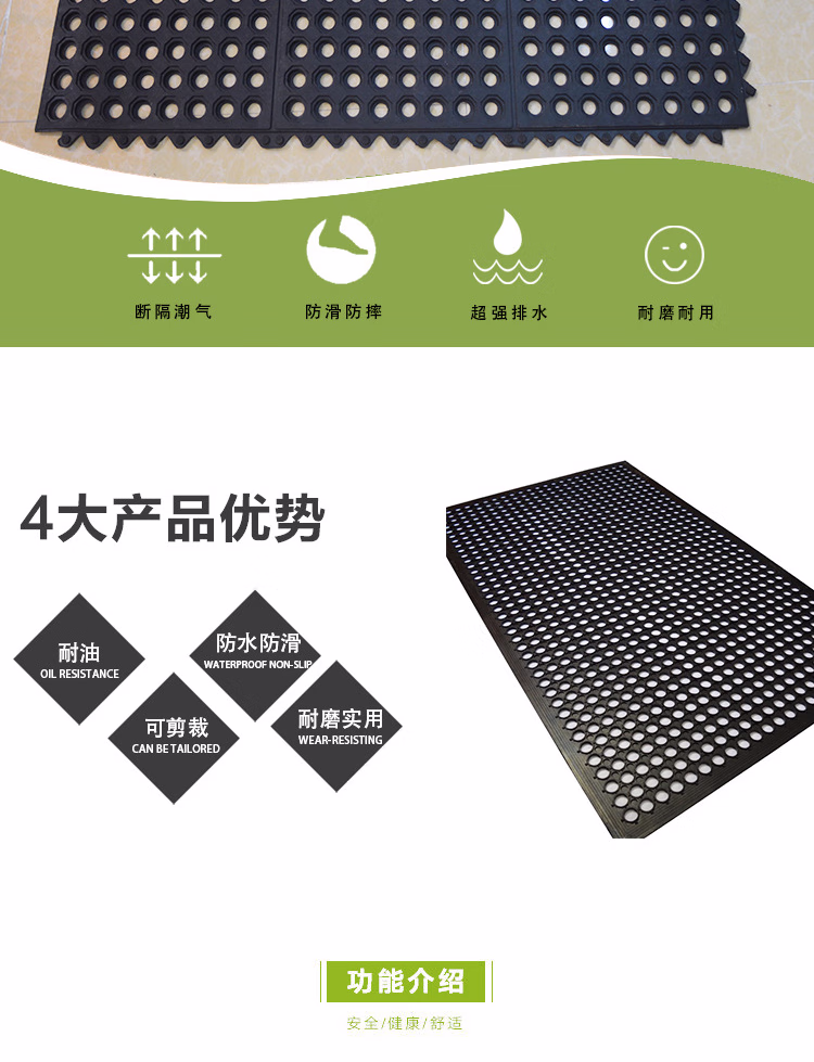 冰禹 BYlj-162 加厚厨房耐疲劳防滑垫 防油防滑橡胶地垫 酒店工厂脚垫 90cm*210cm(一张)