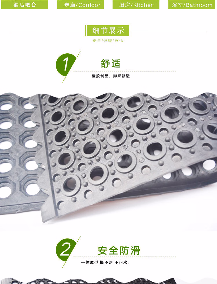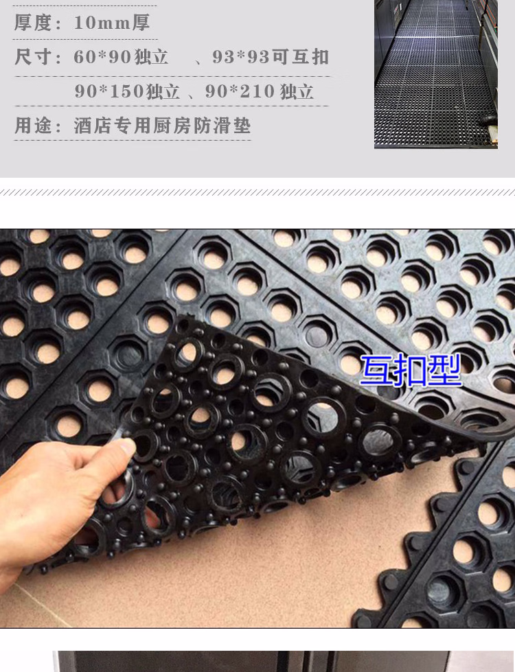 > 冰禹 BYlj-162 加厚厨房耐疲劳防滑垫 防油防滑橡胶地垫 酒店工厂脚垫 90cm*210cm(一张)
