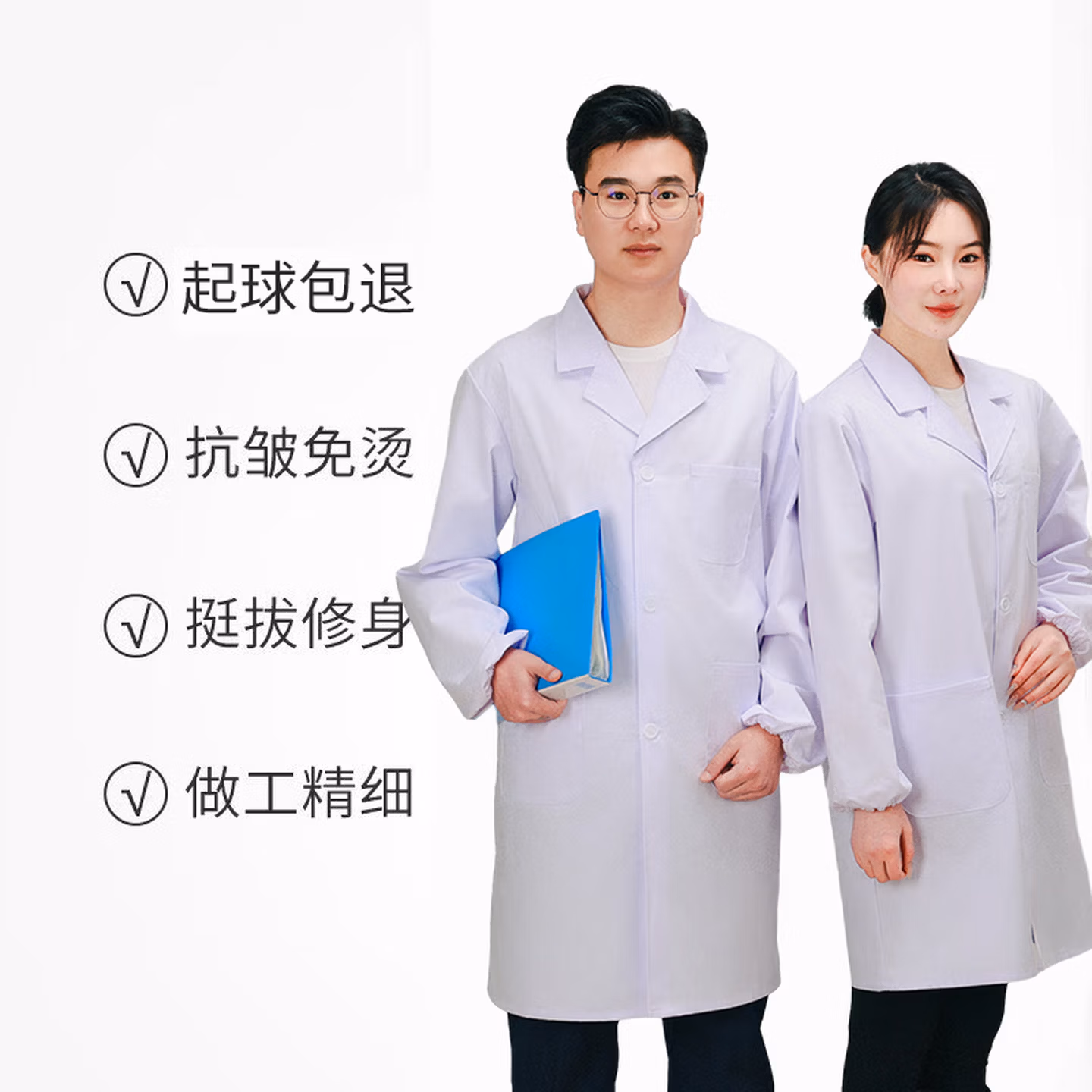 > 元棉长袖白大褂 松紧袖口四季标准款 男女学生实验室工作服可定制 XL码