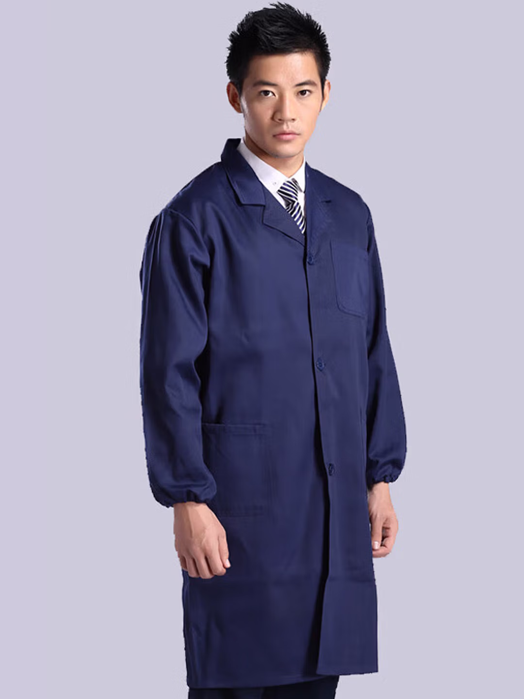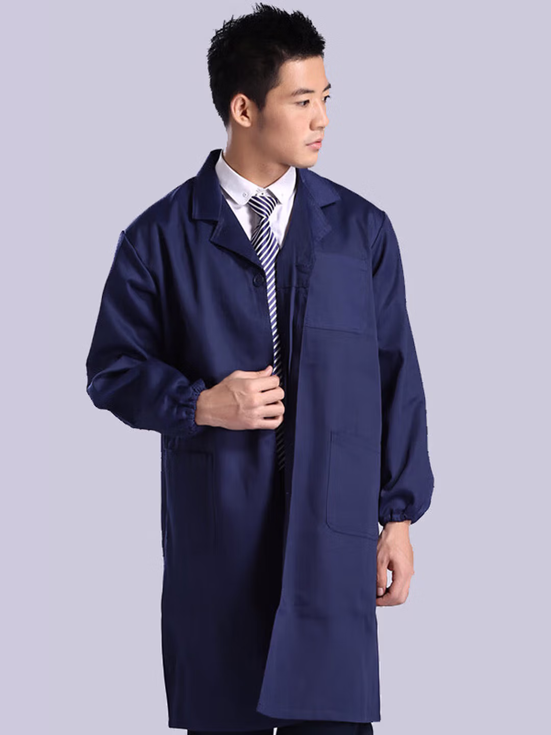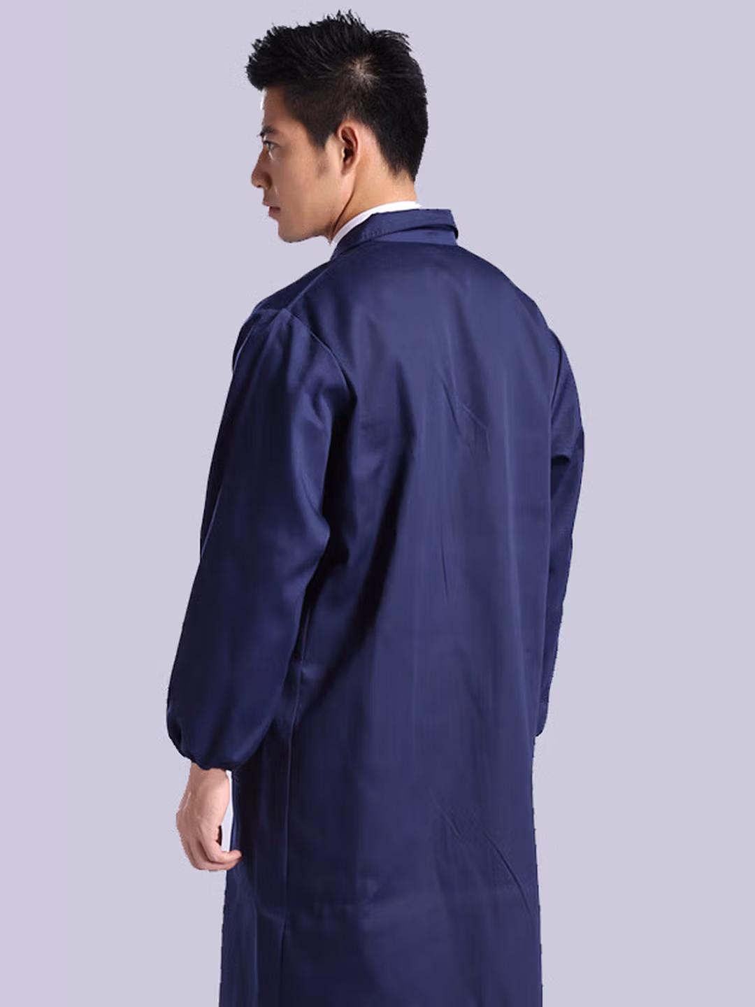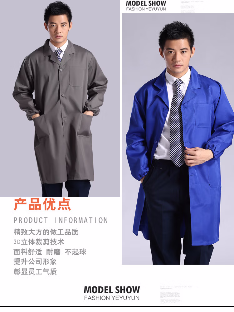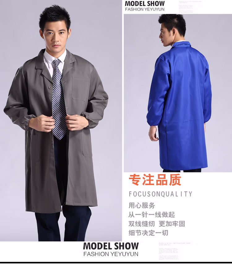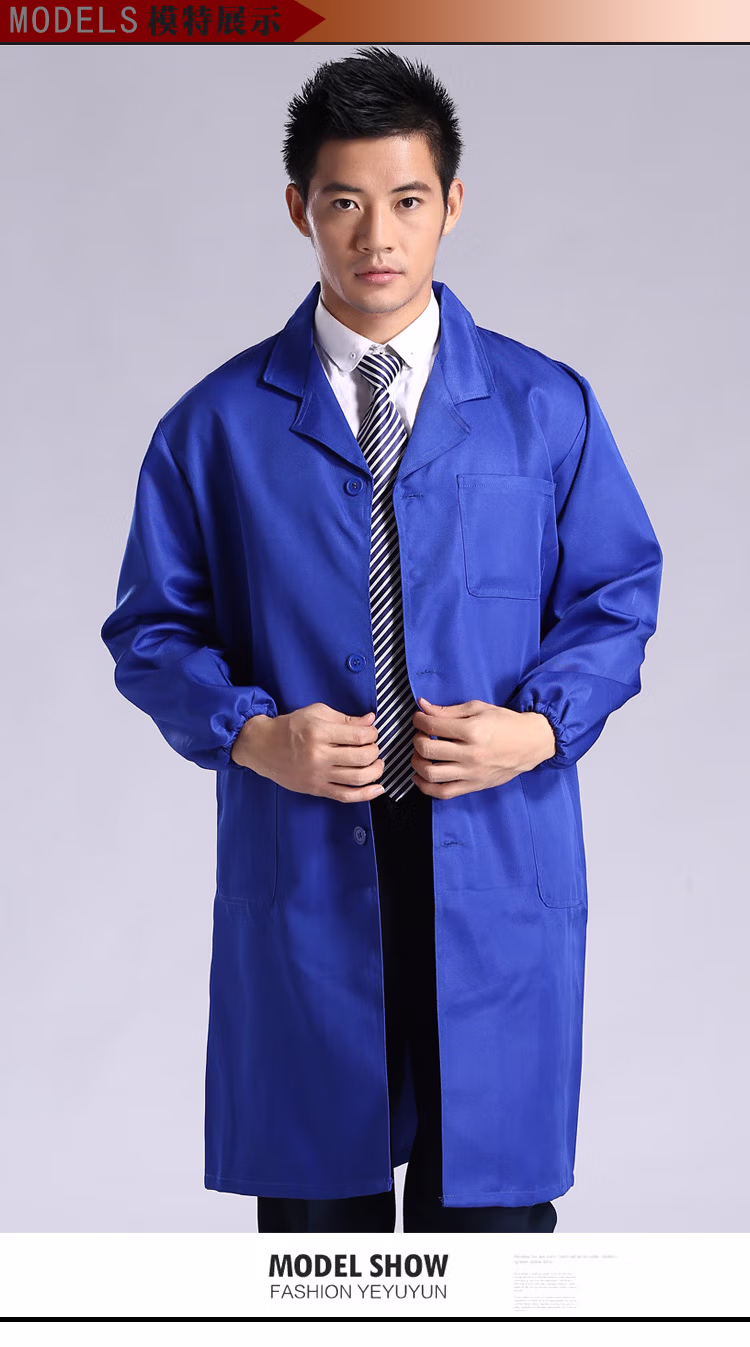 > 岗通蓝大褂男女长袖实验室白大褂防尘罩衣搬运工作服长大褂仓库防水褂 深蓝色 均码