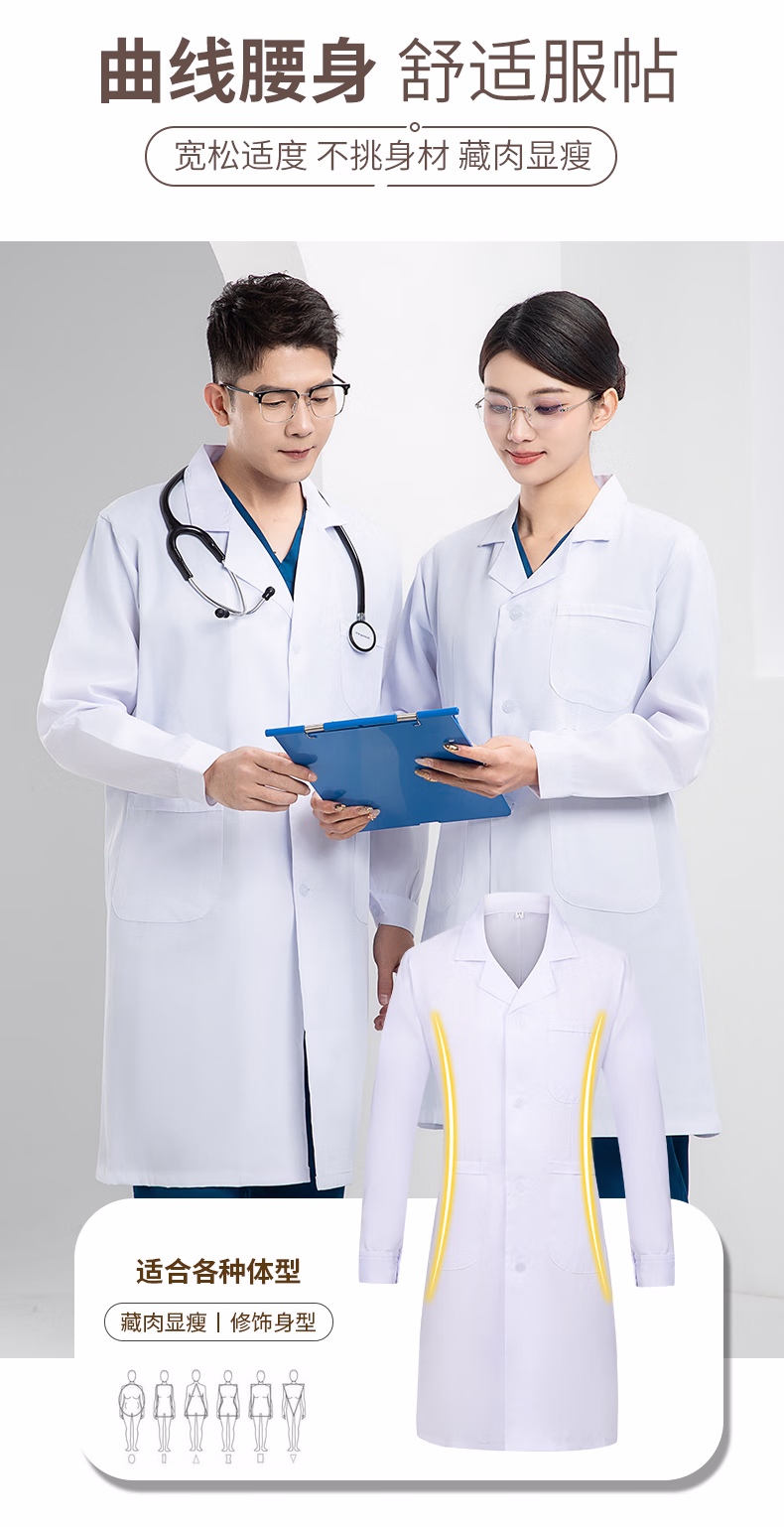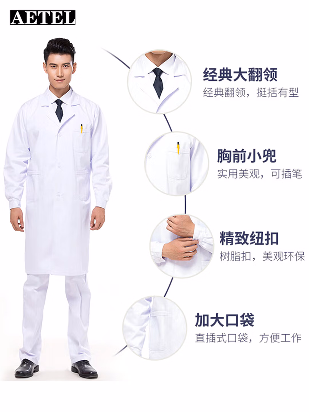 > AETEL高品质白大褂长袖男女化学生实验室医院牙医诊所医生工作服印绣