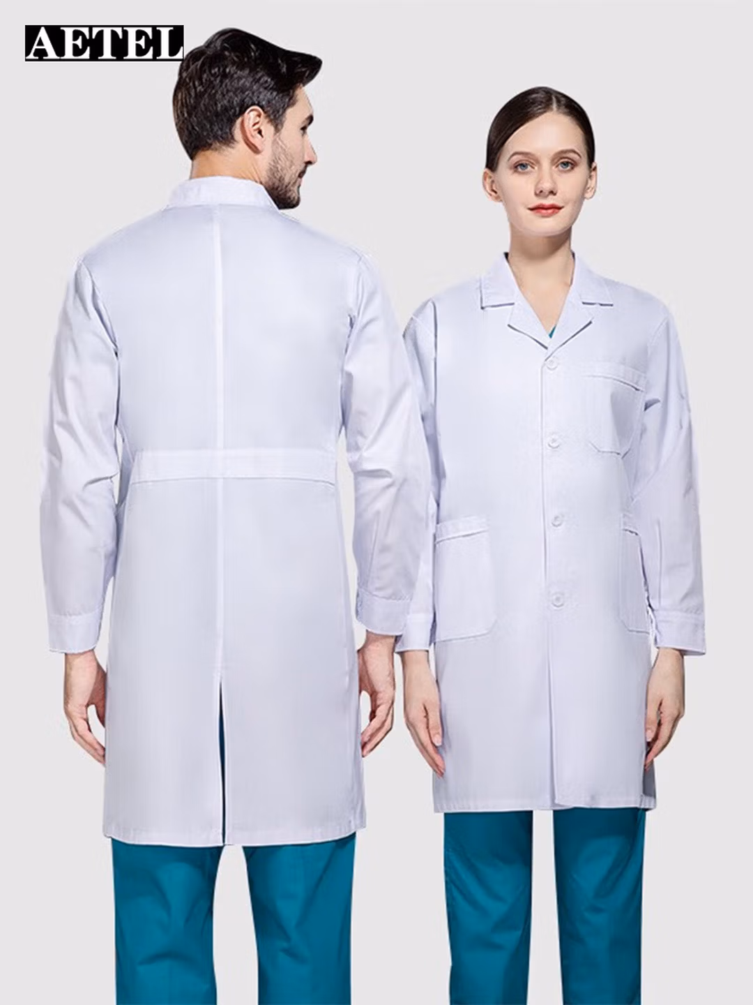 AETEL高品质白大褂长袖男女化学生实验室医院牙医诊所医生工作服印绣