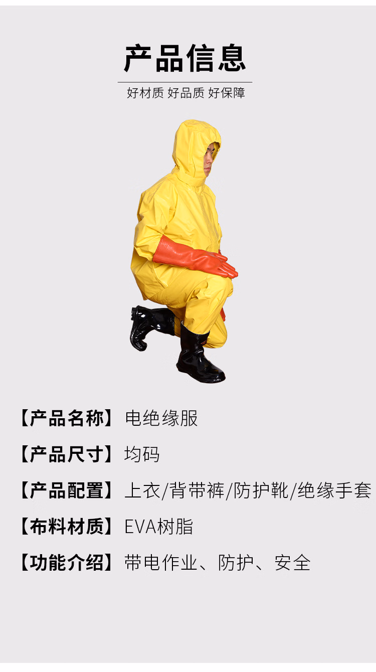 > 保罗岚芝 电力绝缘服套装10KV绝缘服+手套+鞋子 黄色