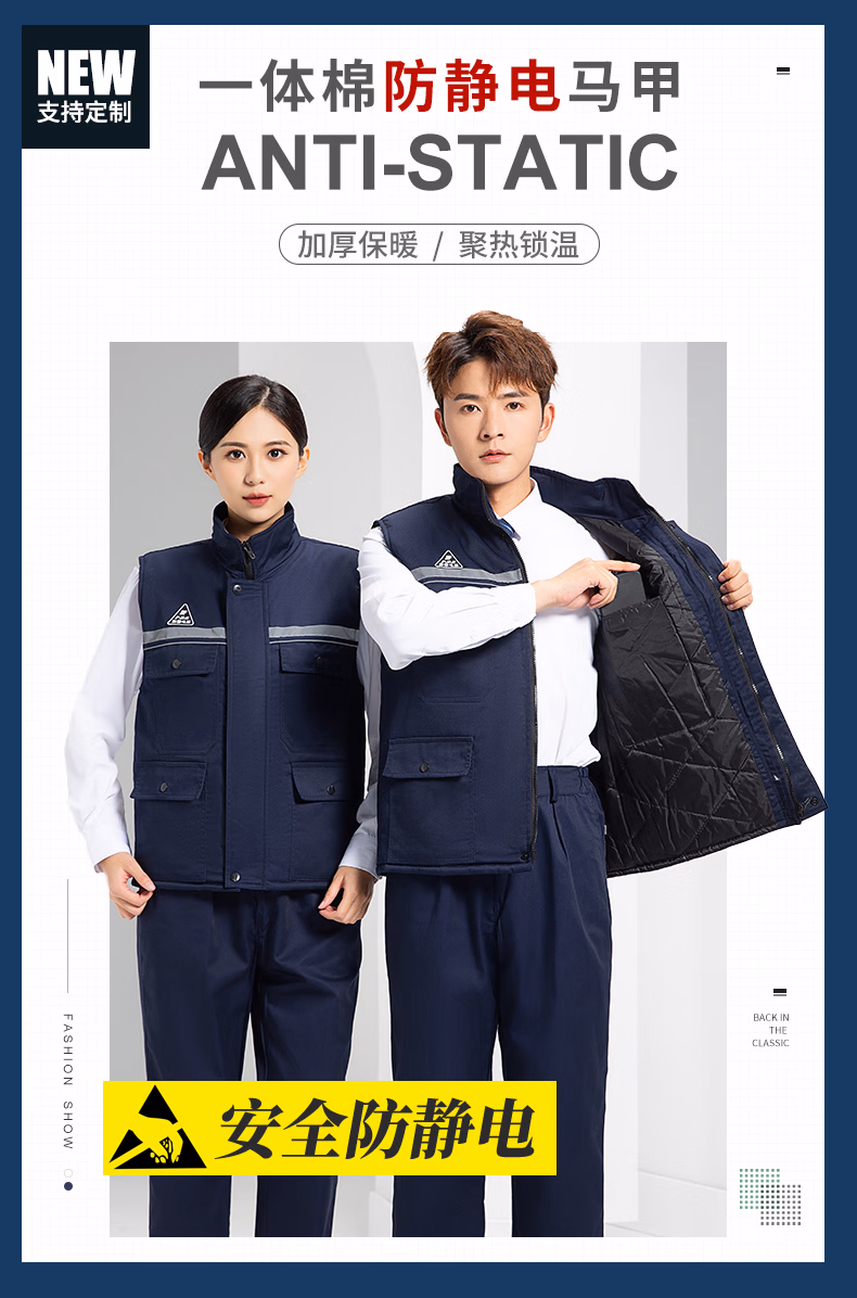 > 保罗岚芝防静电工作服男女马甲冬季带反光条保暖电工焊工加油站劳保服定制