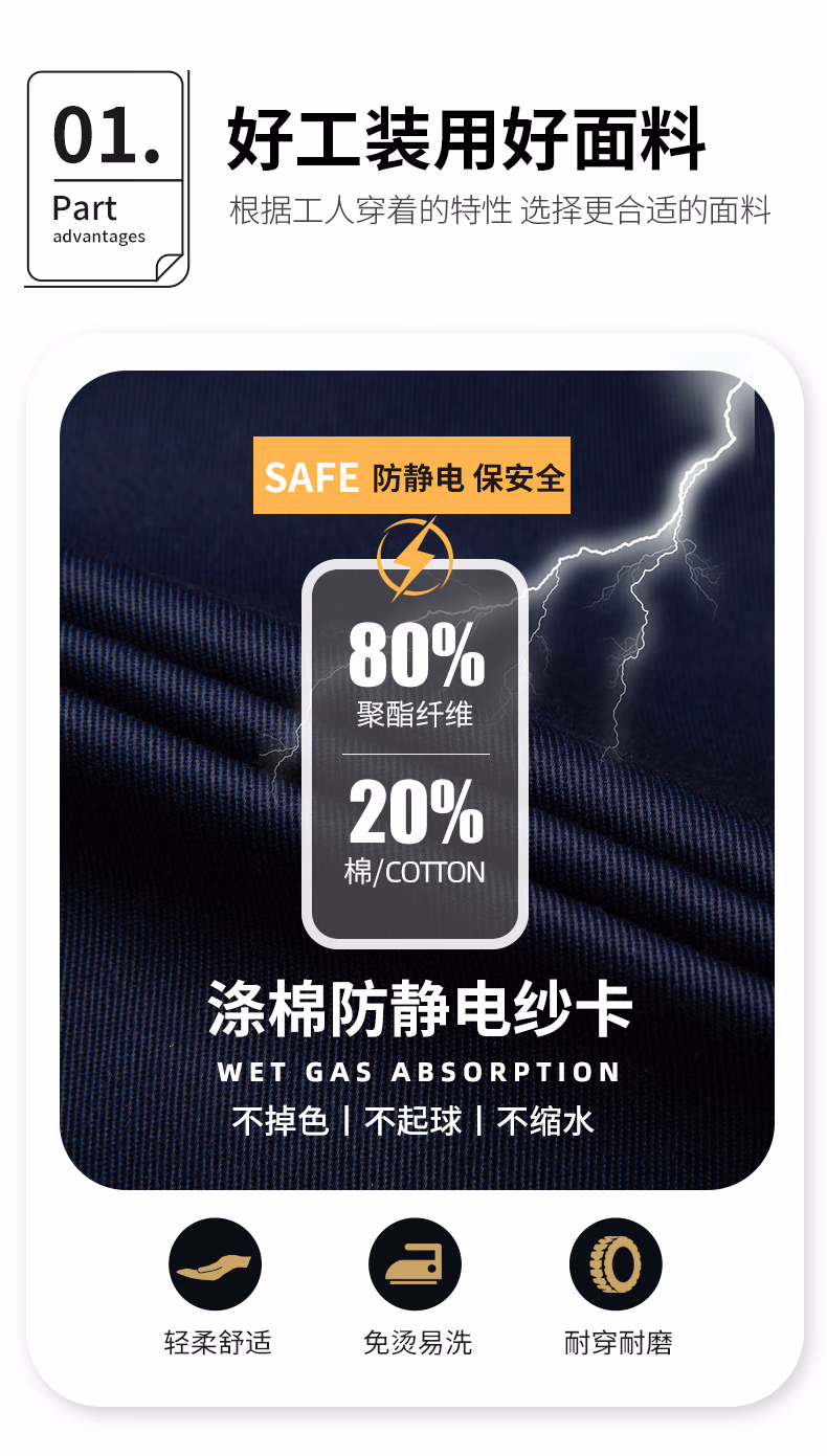 保罗岚芝防静电工作服男女马甲冬季带反光条保暖电工焊工加油站劳保服定制
