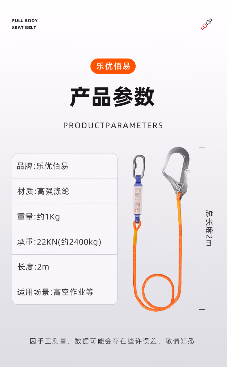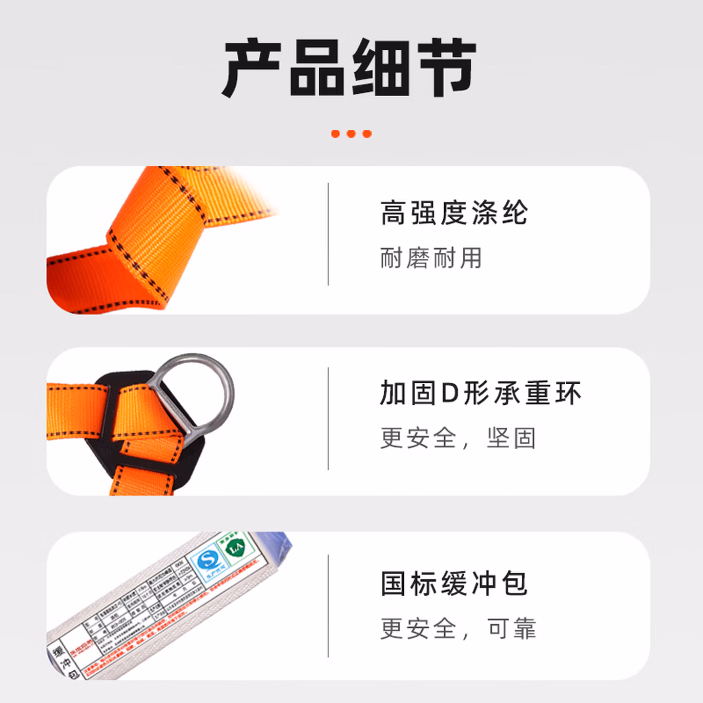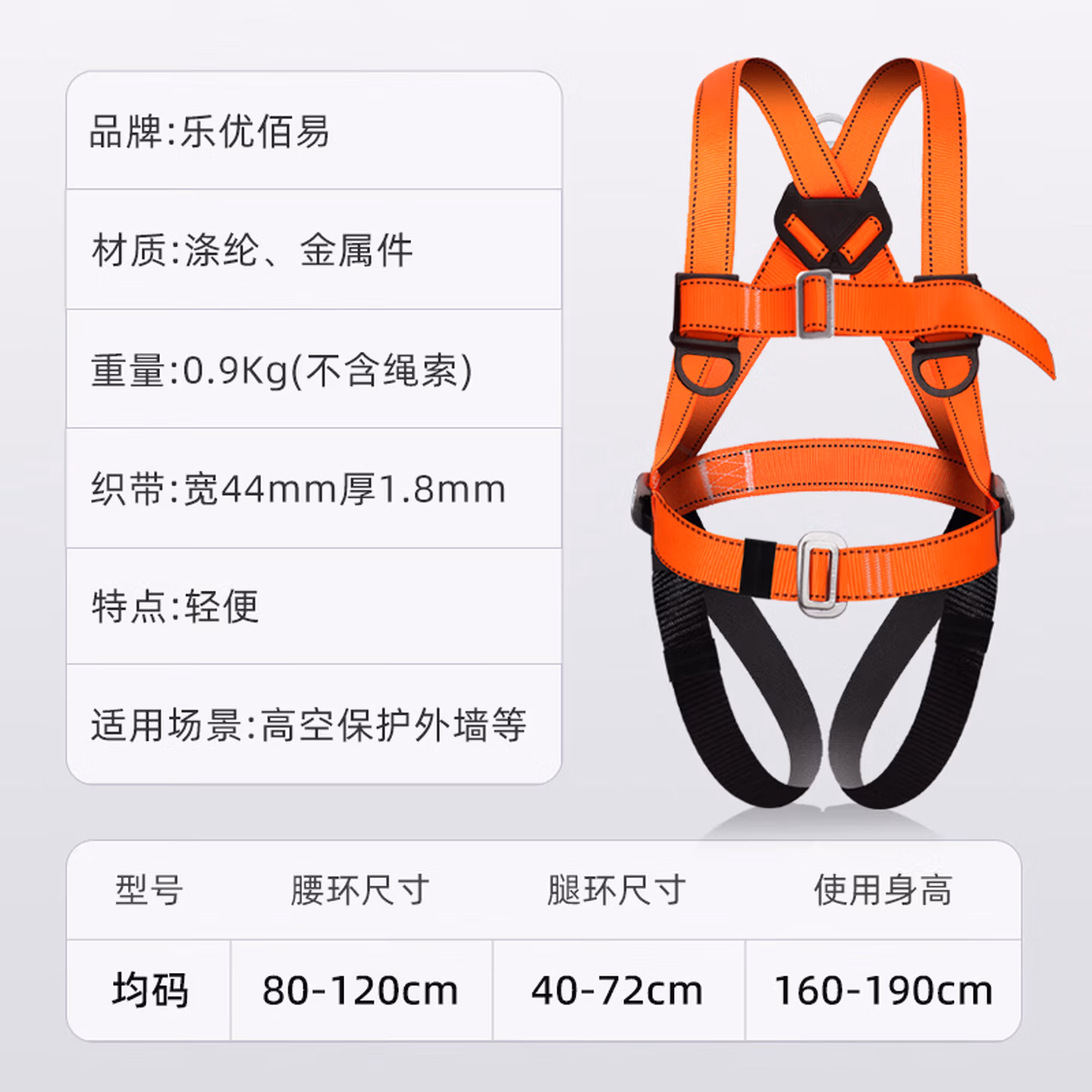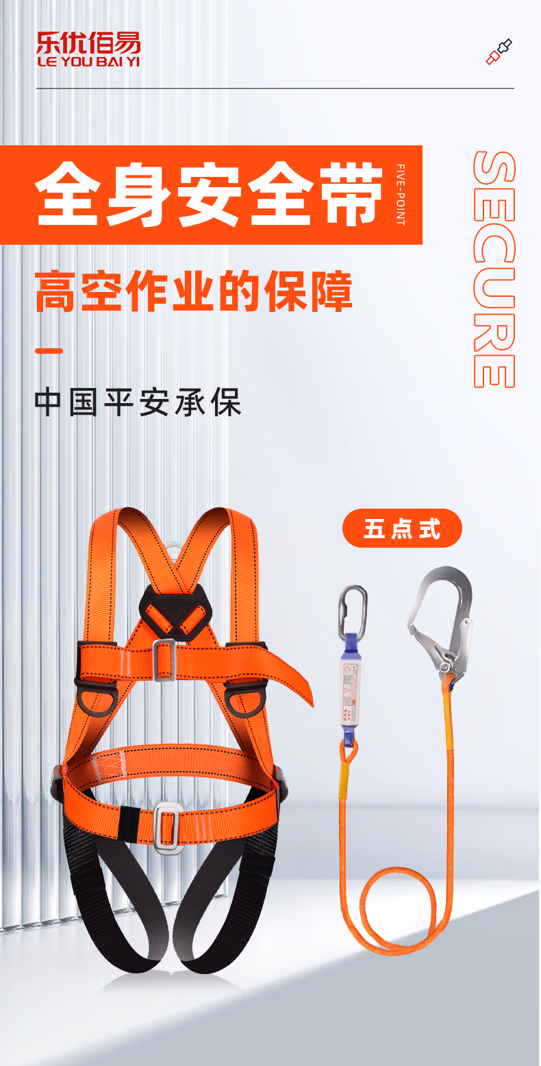 > 乐优佰易 五点式安全带双大钩2米 高空作业安全绳 全身式防坠落国标GB6095-2021