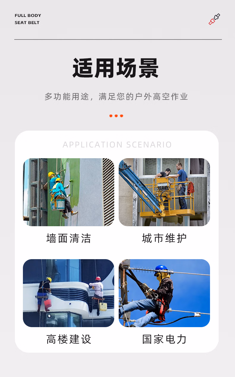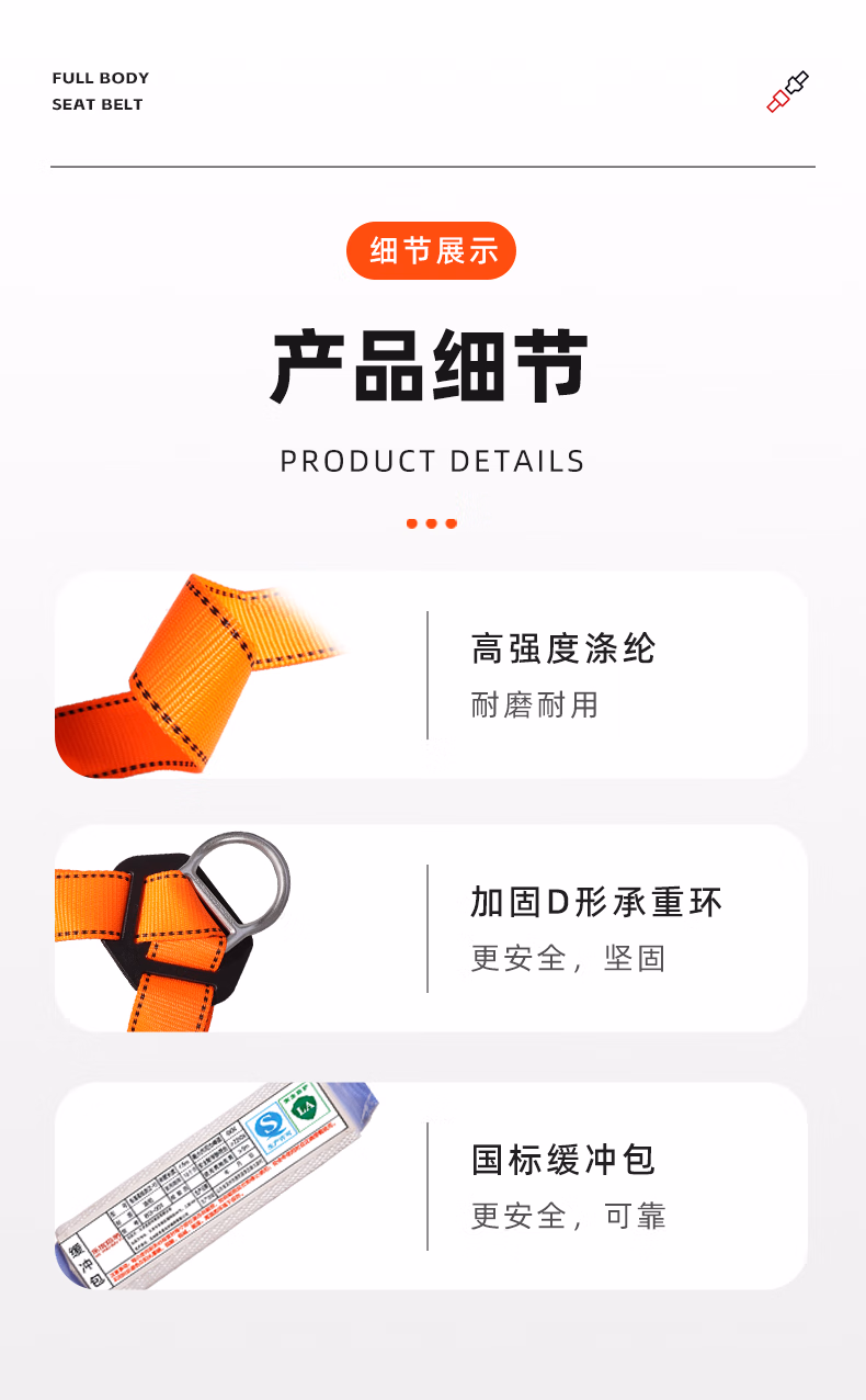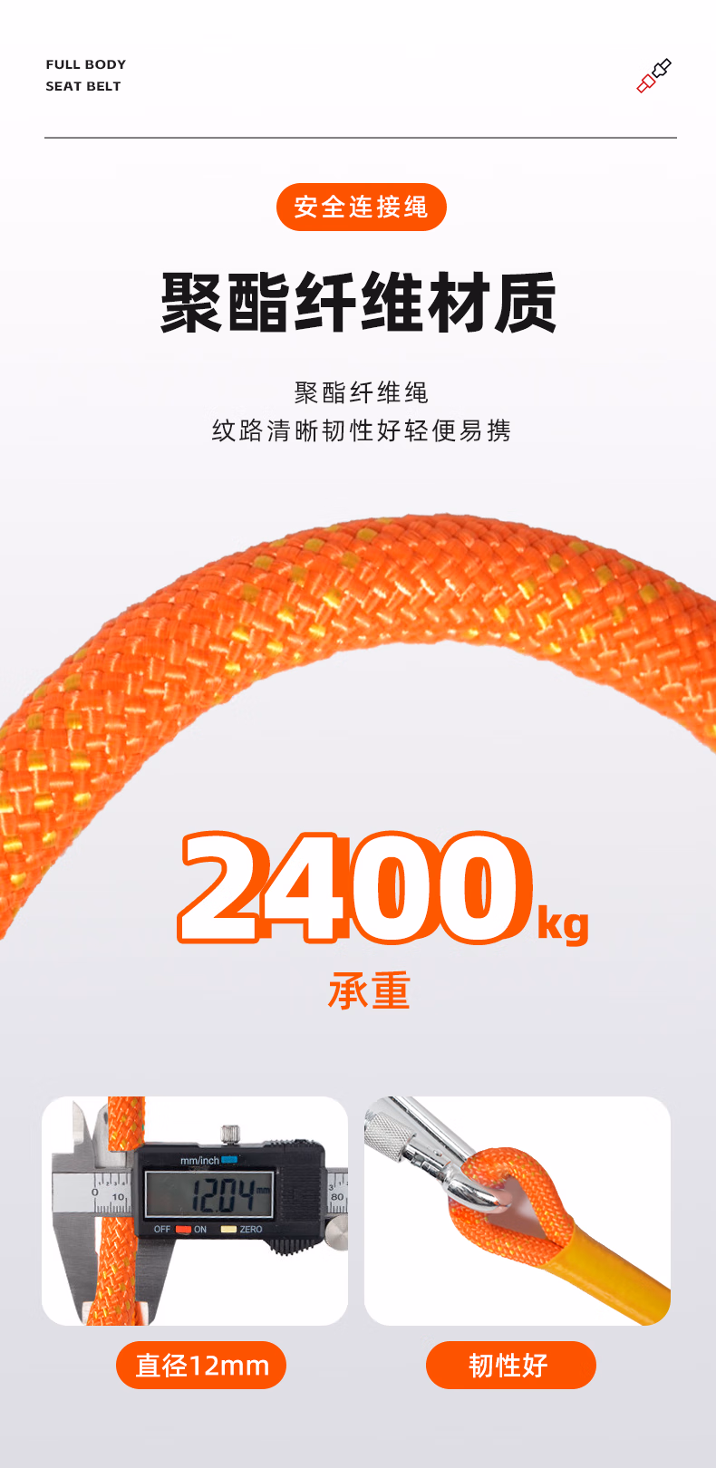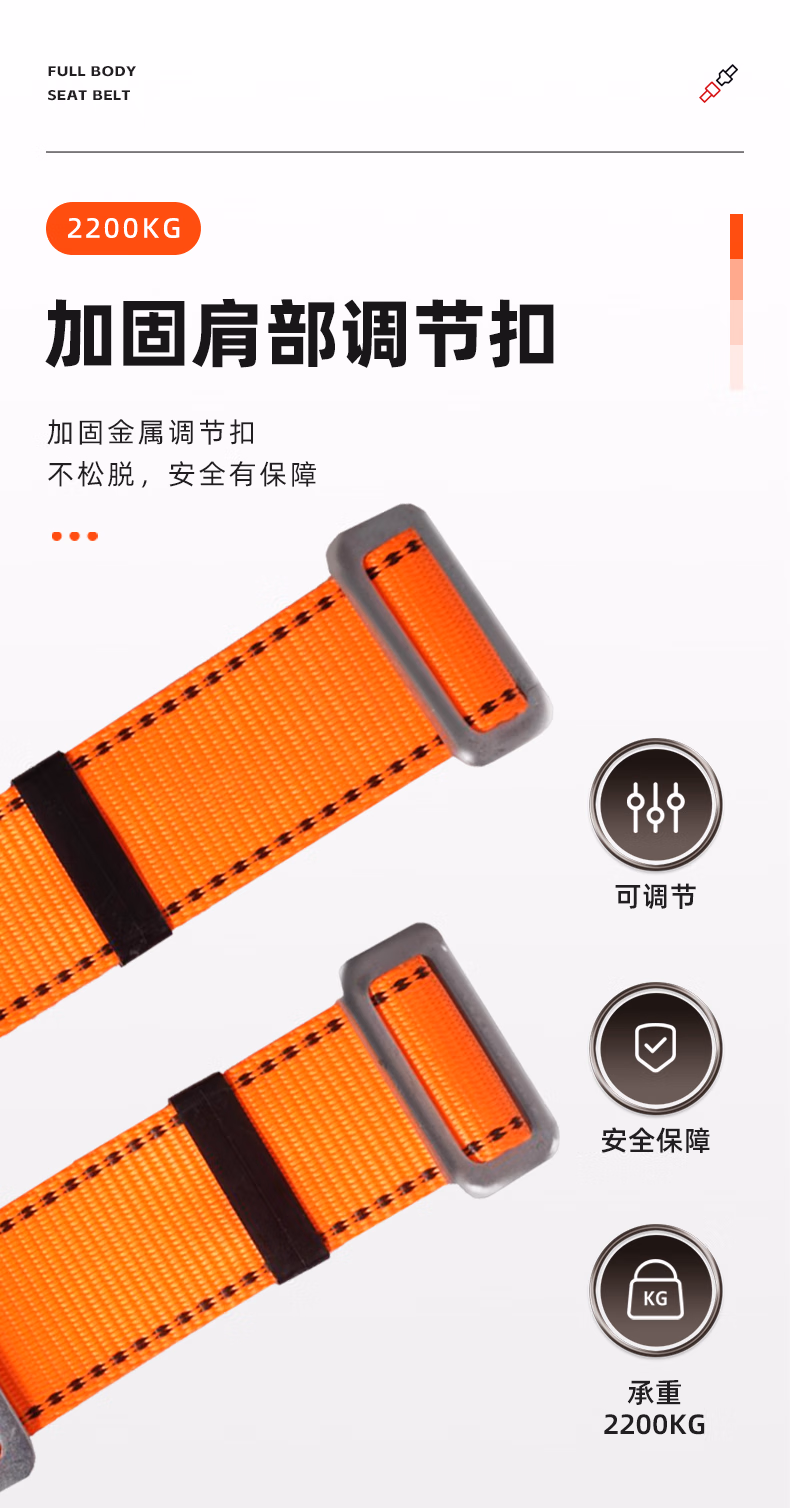 > 乐优佰易 五点式安全带双大钩2米 高空作业安全绳 全身式防坠落国标GB6095-2021