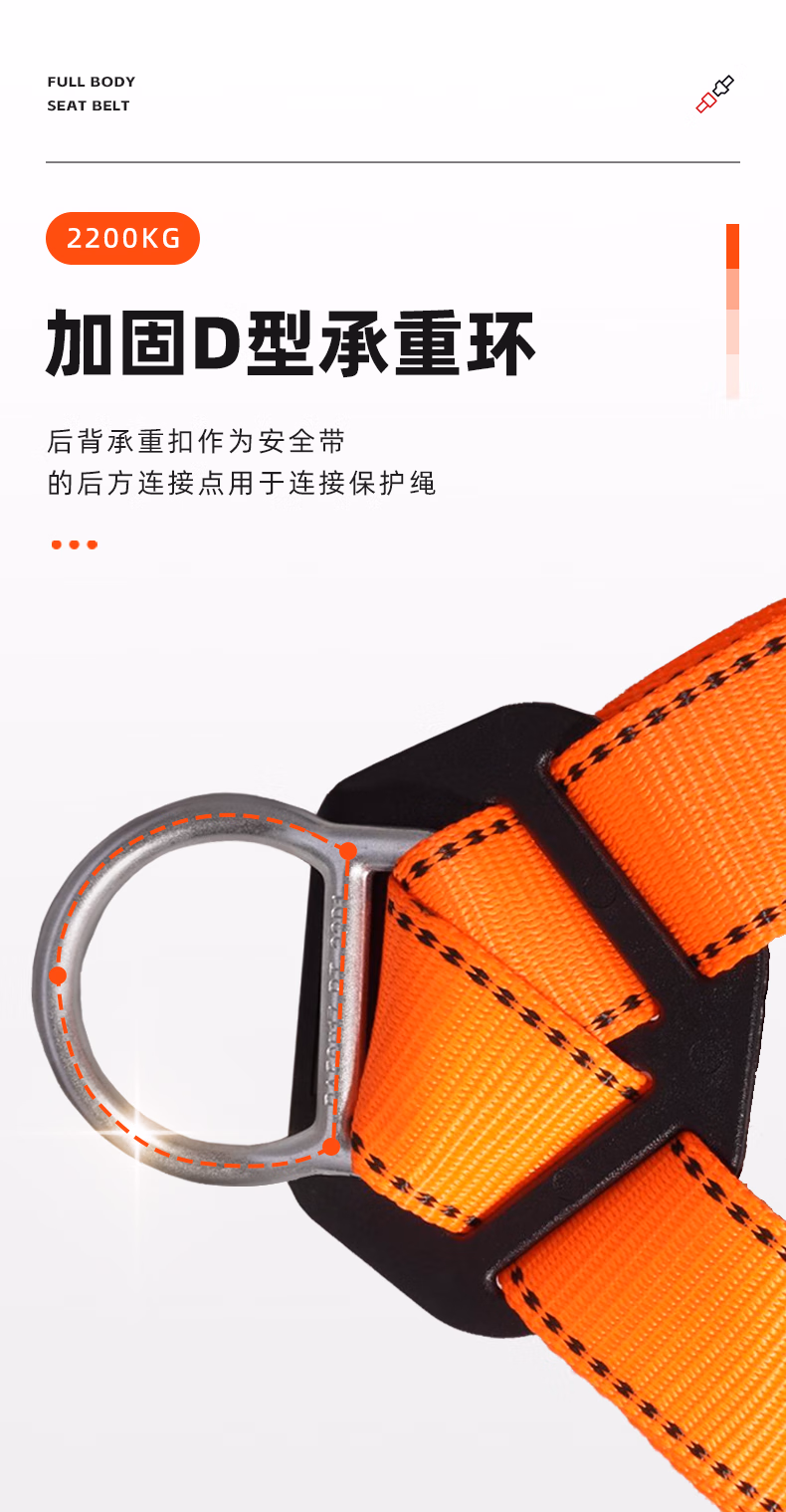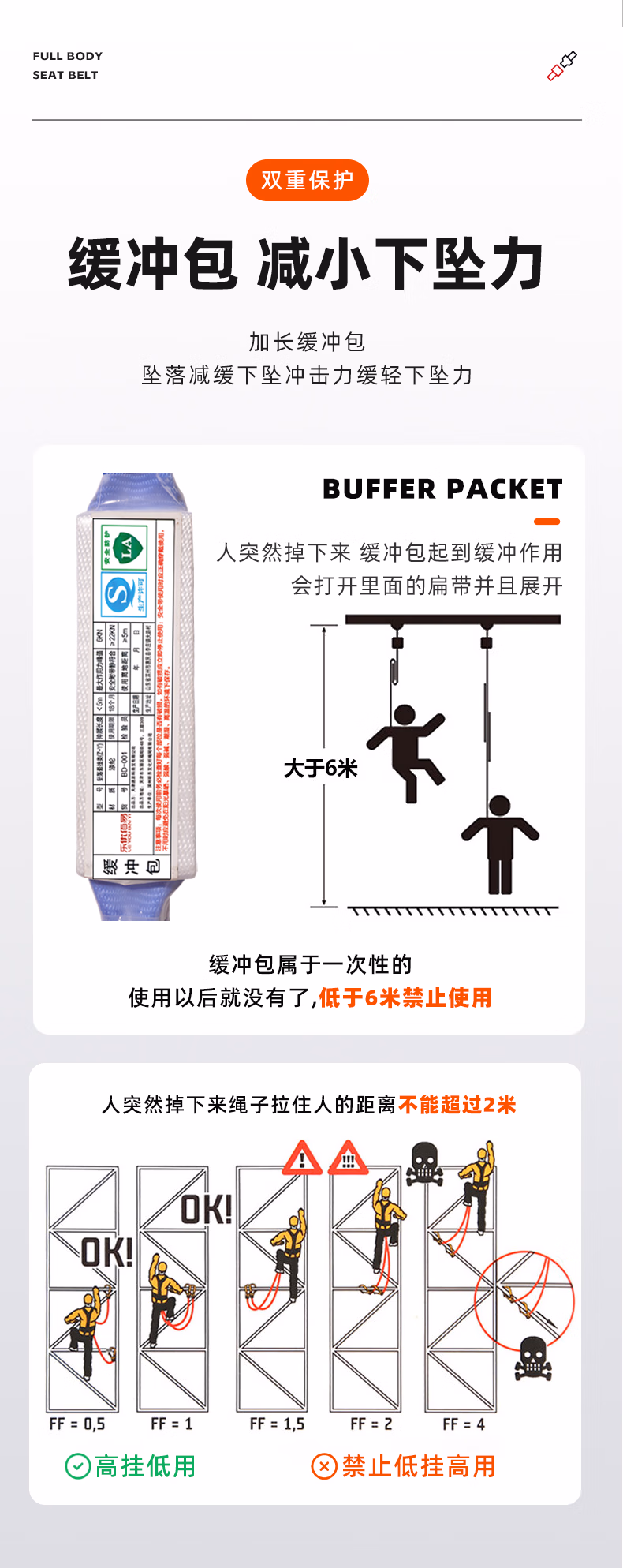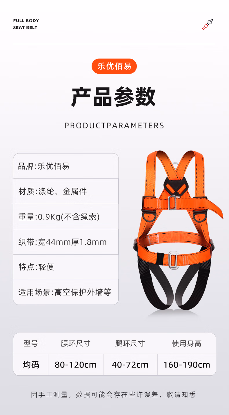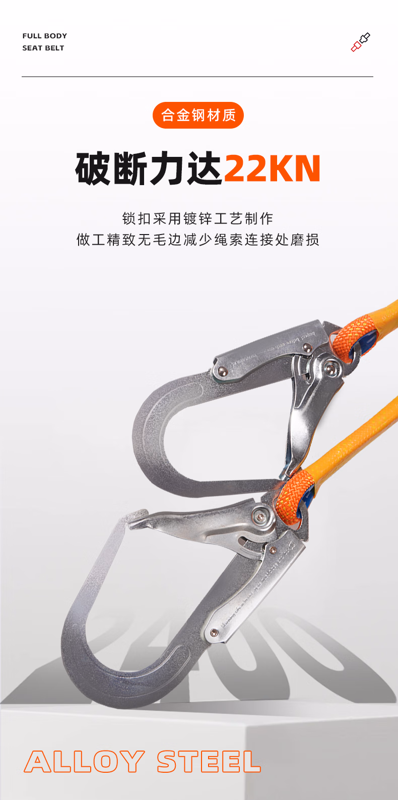 乐优佰易 五点式安全带双大钩2米 高空作业安全绳 全身式防坠落国标GB6095-2021