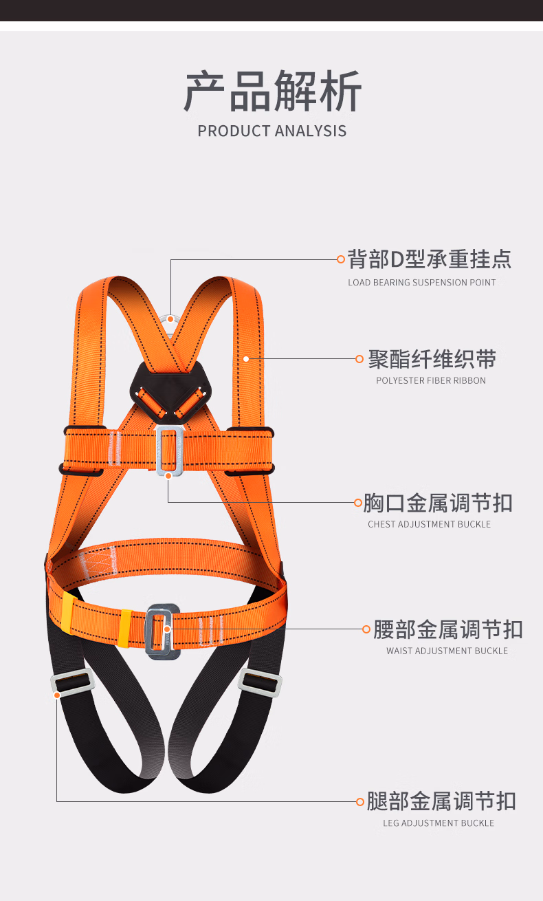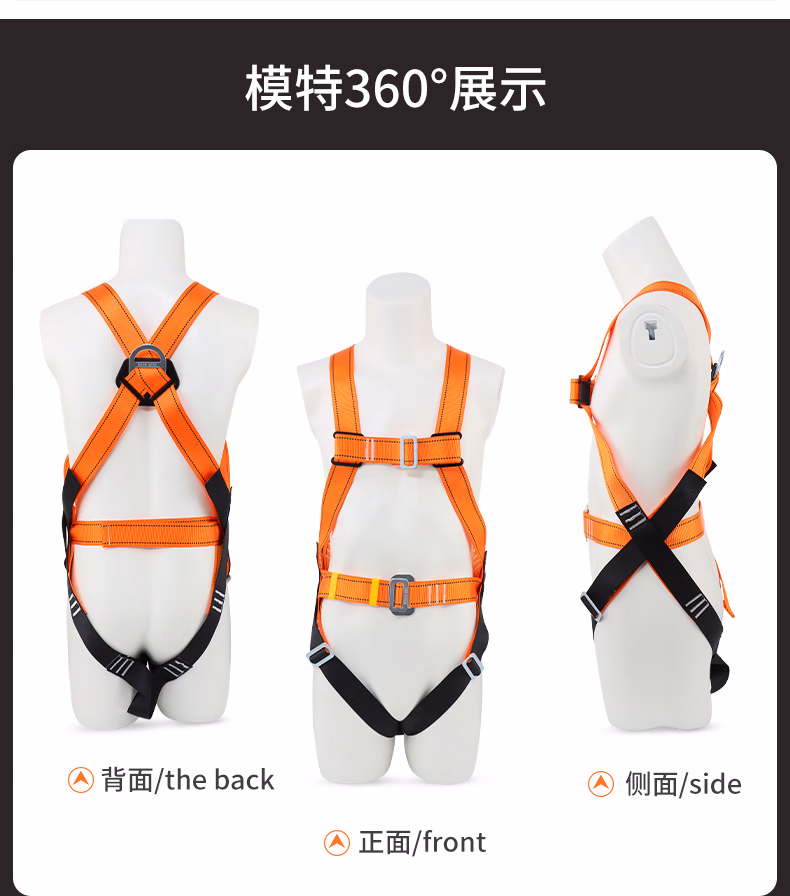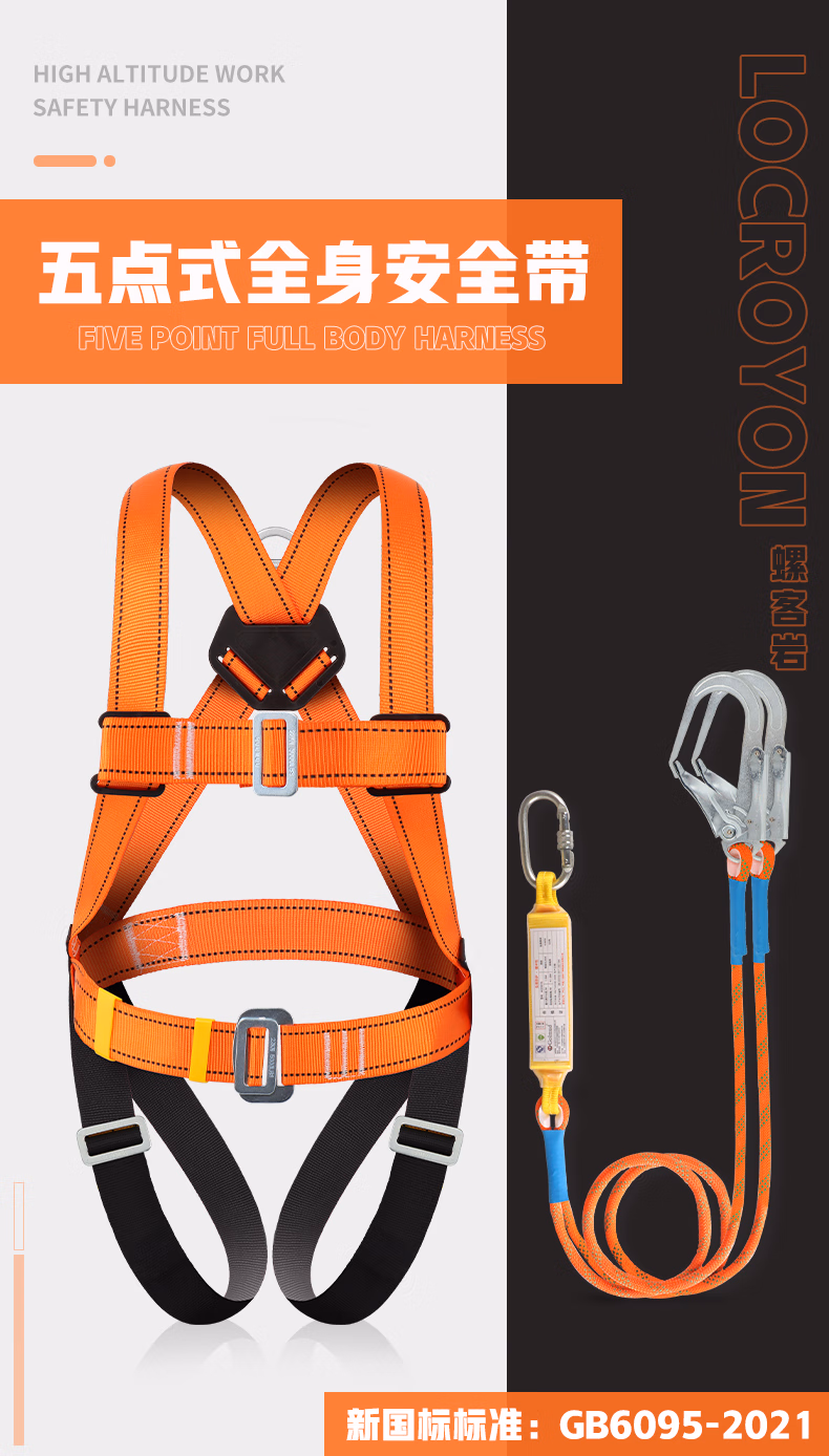 螺客岩五点式安全带 高空作业安全绳 全身式防坠落国标 双大钩缓冲包1.8米