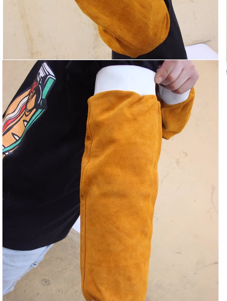 > 牛皮套袖加厚长牛皮电焊袖套耐脏防烫焊工焊接护袖劳保烧焊松紧 牛皮套袖:松紧款