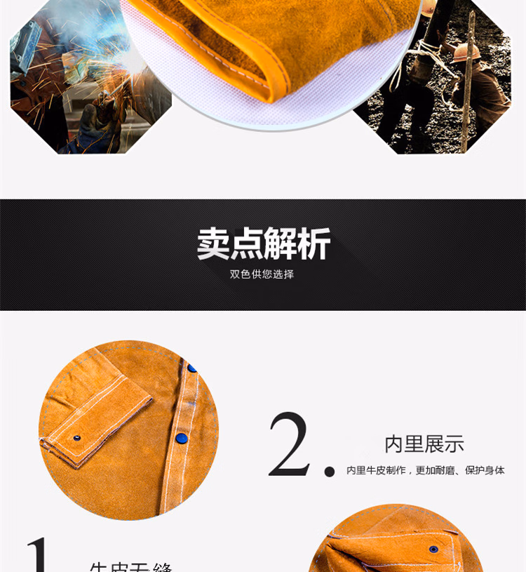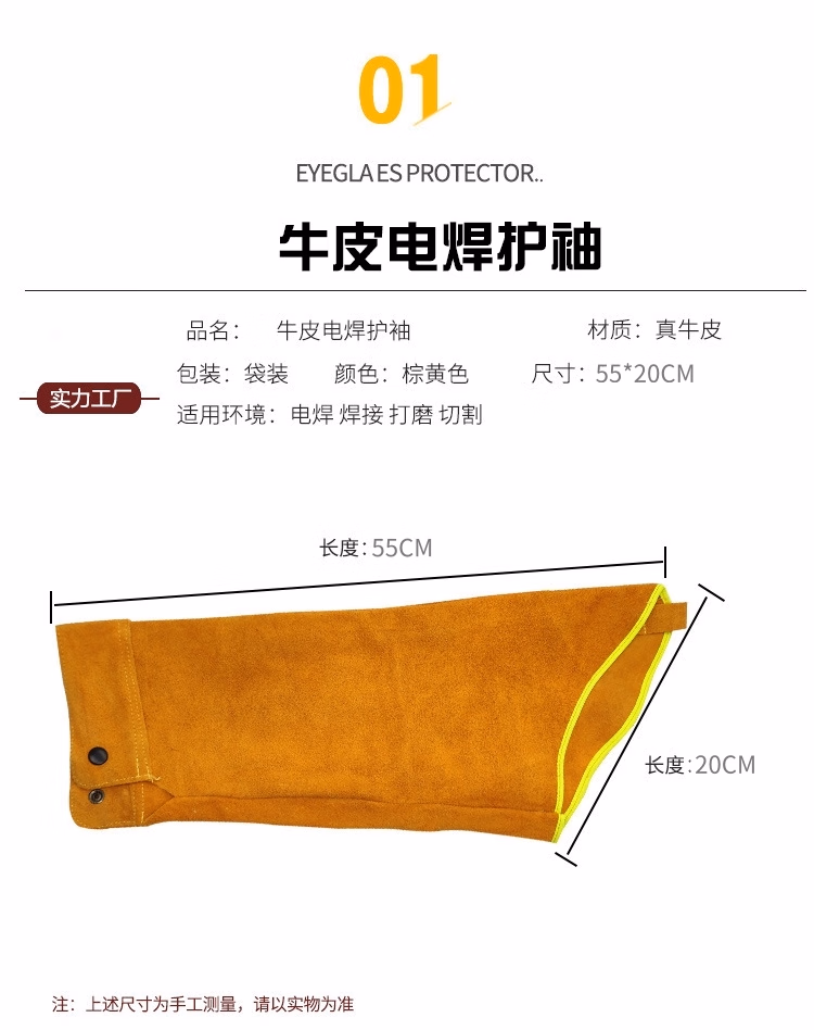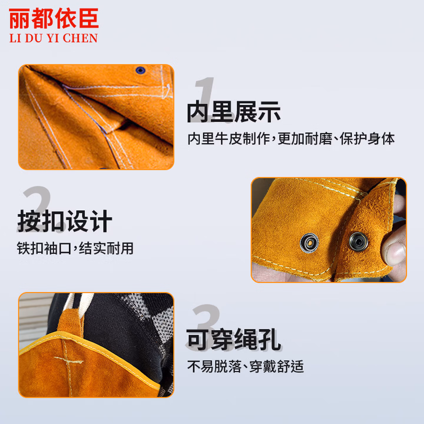 > 丽都依臣 焊工袖套 牛皮电焊套袖保护袖防火花防切割专用护袖焊接防护手臂工地机床防护劳保用具定制