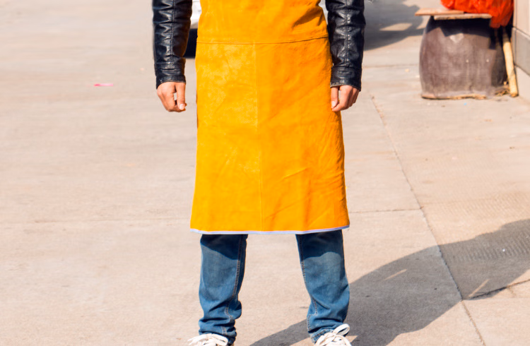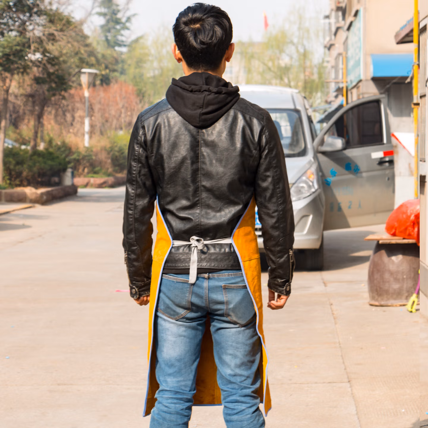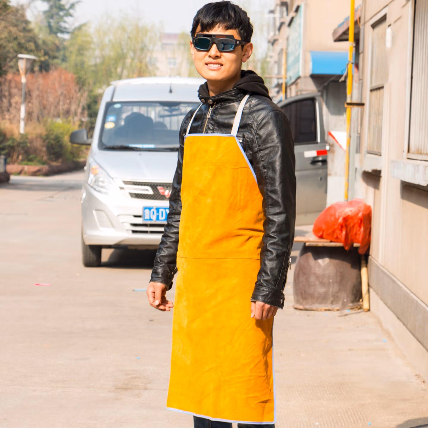 享乐美 牛皮电焊工作围裙防火花耐磨防烫电焊阻燃防护服真皮隔热服 京仓:黄色