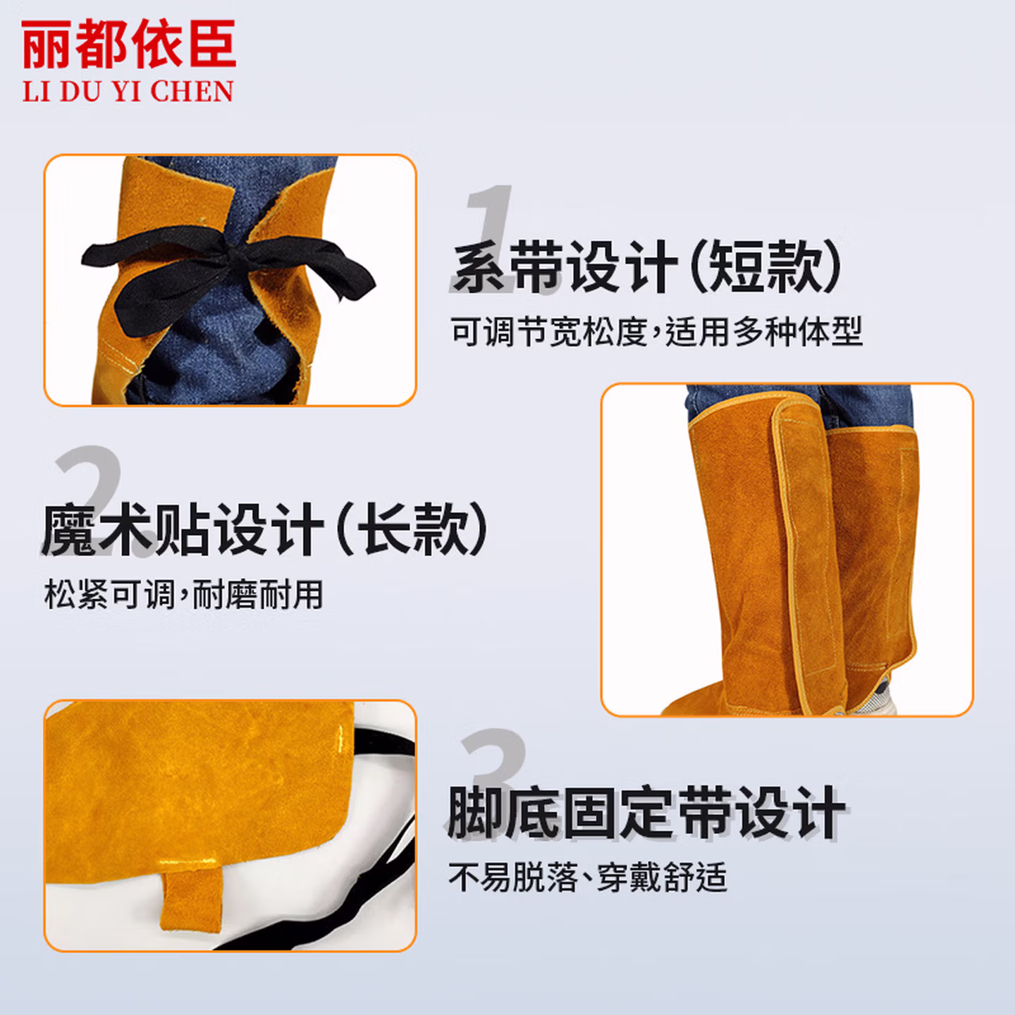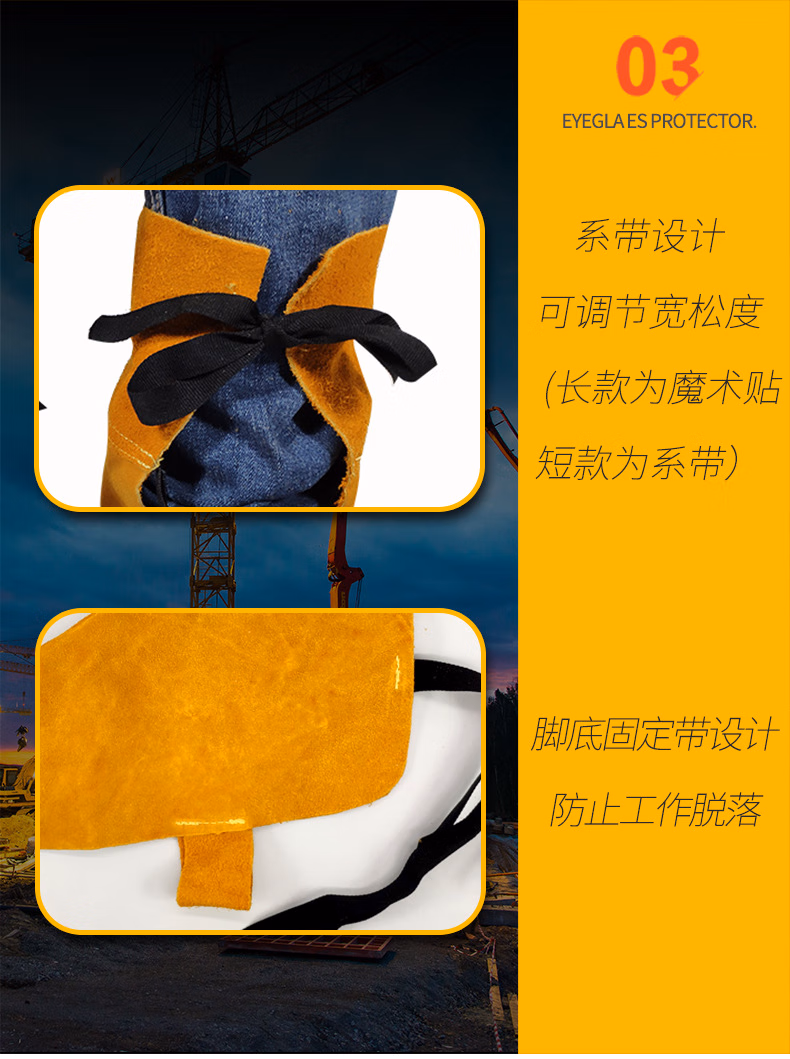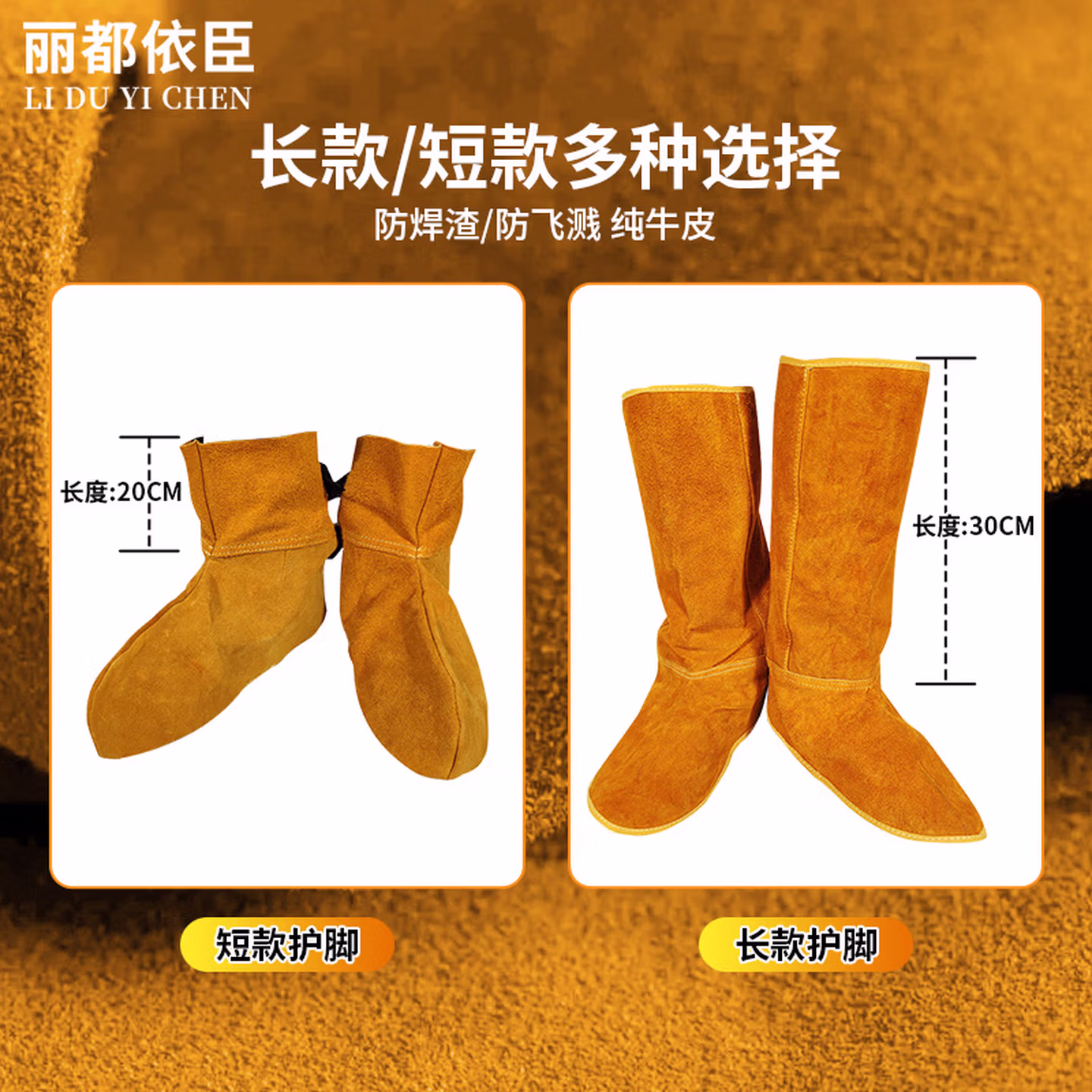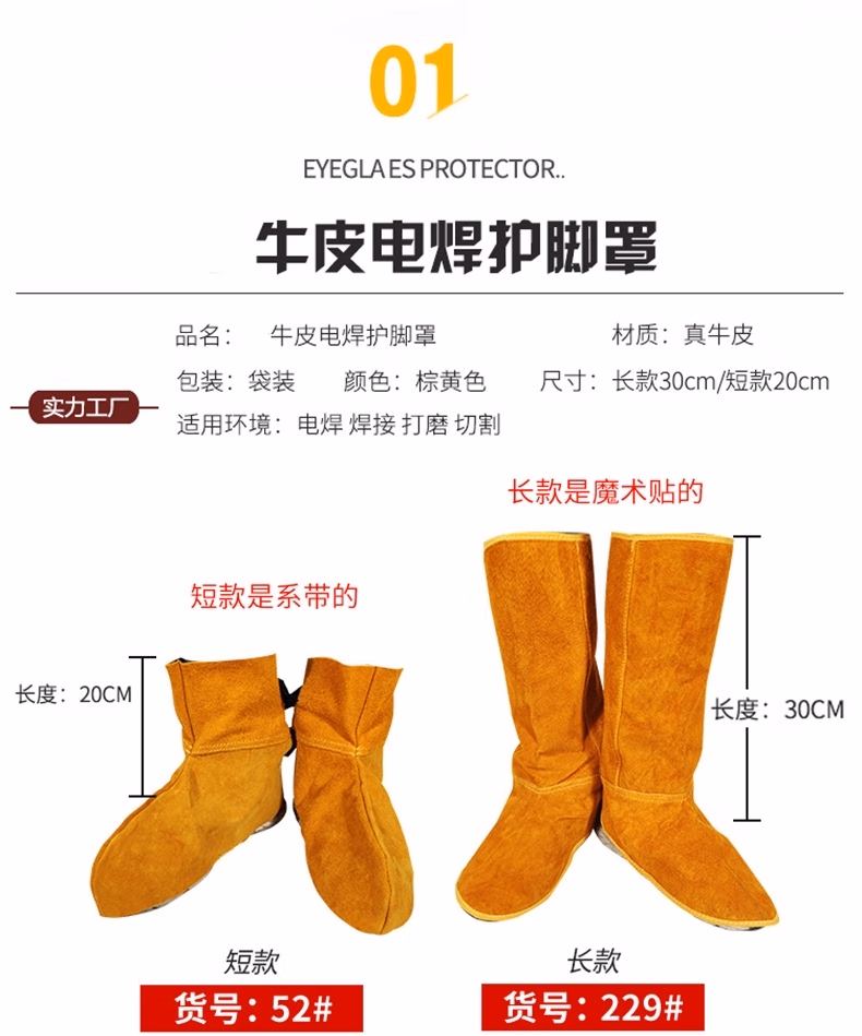 > 丽都依臣焊工电焊护脚套 牛皮防烫电焊工防护装备长短款护脚鞋套耐磨加厚防火防飞溅护腿盖脚套定制