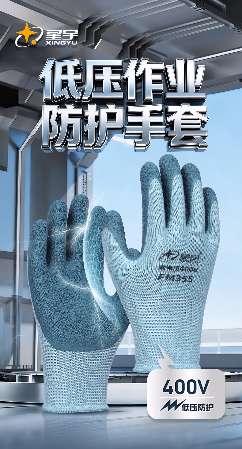 星宇400V绝缘手套1双L码电工专用橡胶防滑耐磨工作棉纱透气吸汗手套