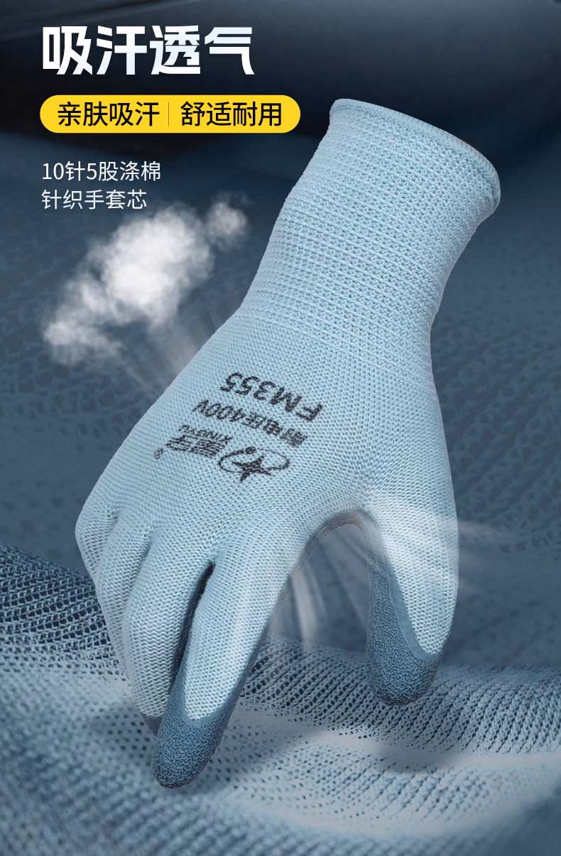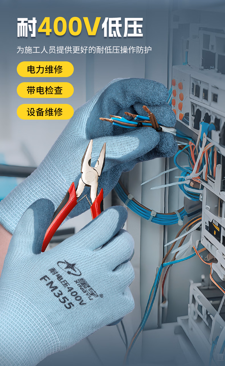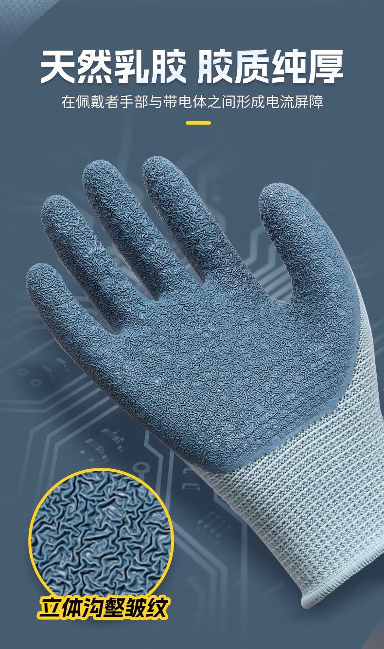 > 星宇400V绝缘手套1双L码电工专用橡胶防滑耐磨工作棉纱透气吸汗手套