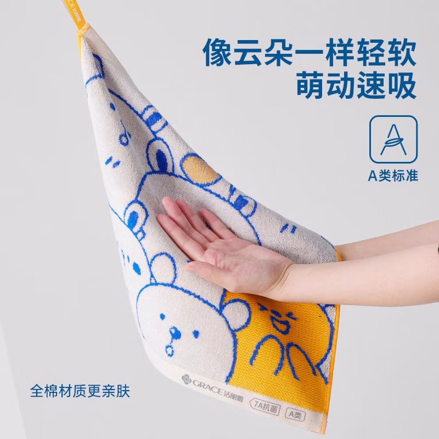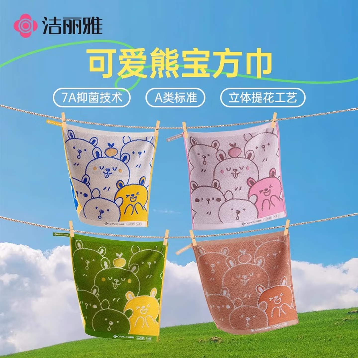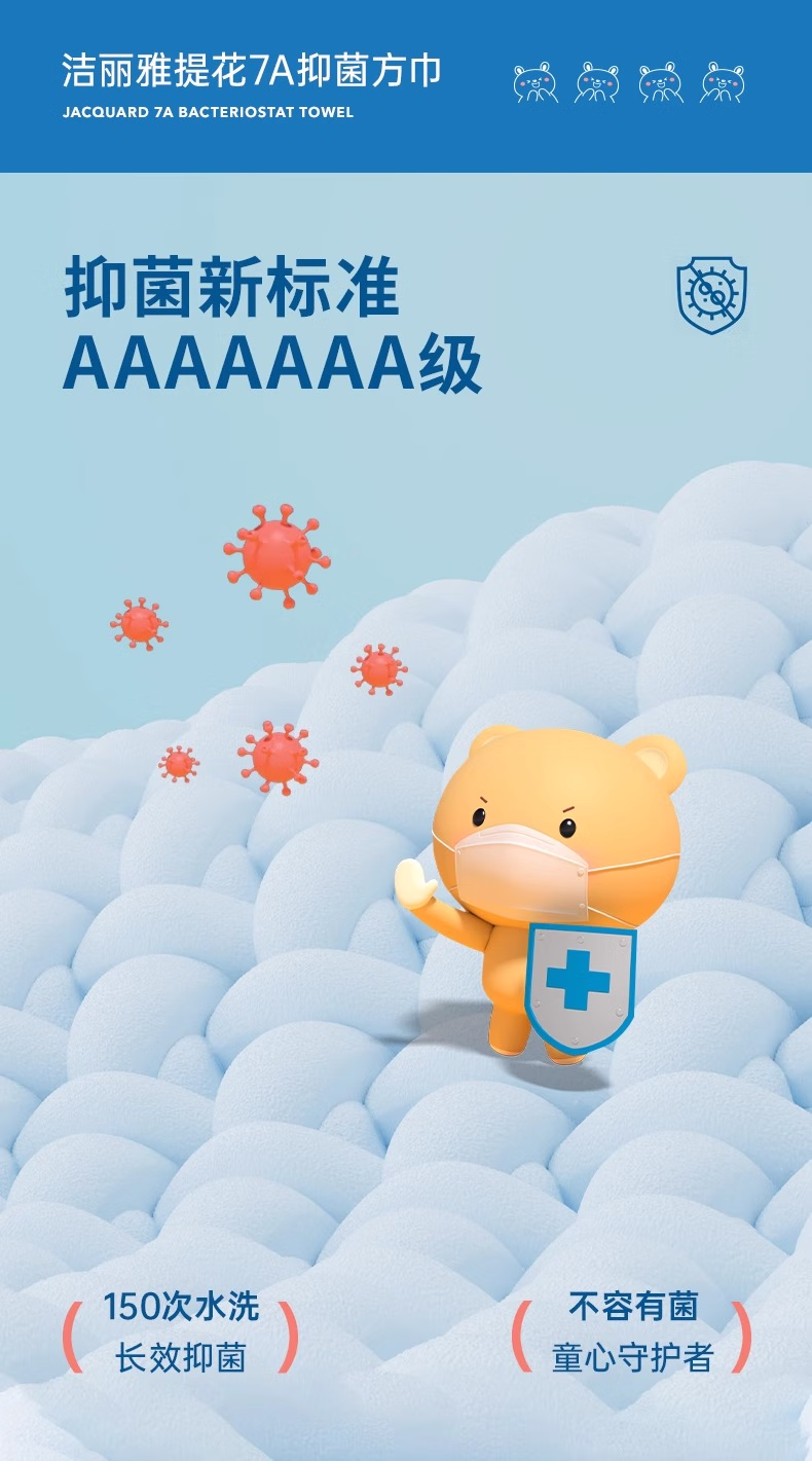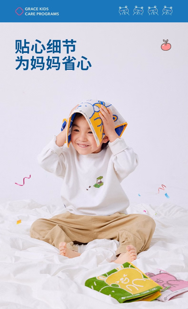 洁丽雅(grace)7A抗菌纯棉儿童毛巾A类6-12岁洗脸方巾全棉吸水速干宝宝擦脸巾 【7A抗菌新疆棉】驼咖+白棕+白兰 3条