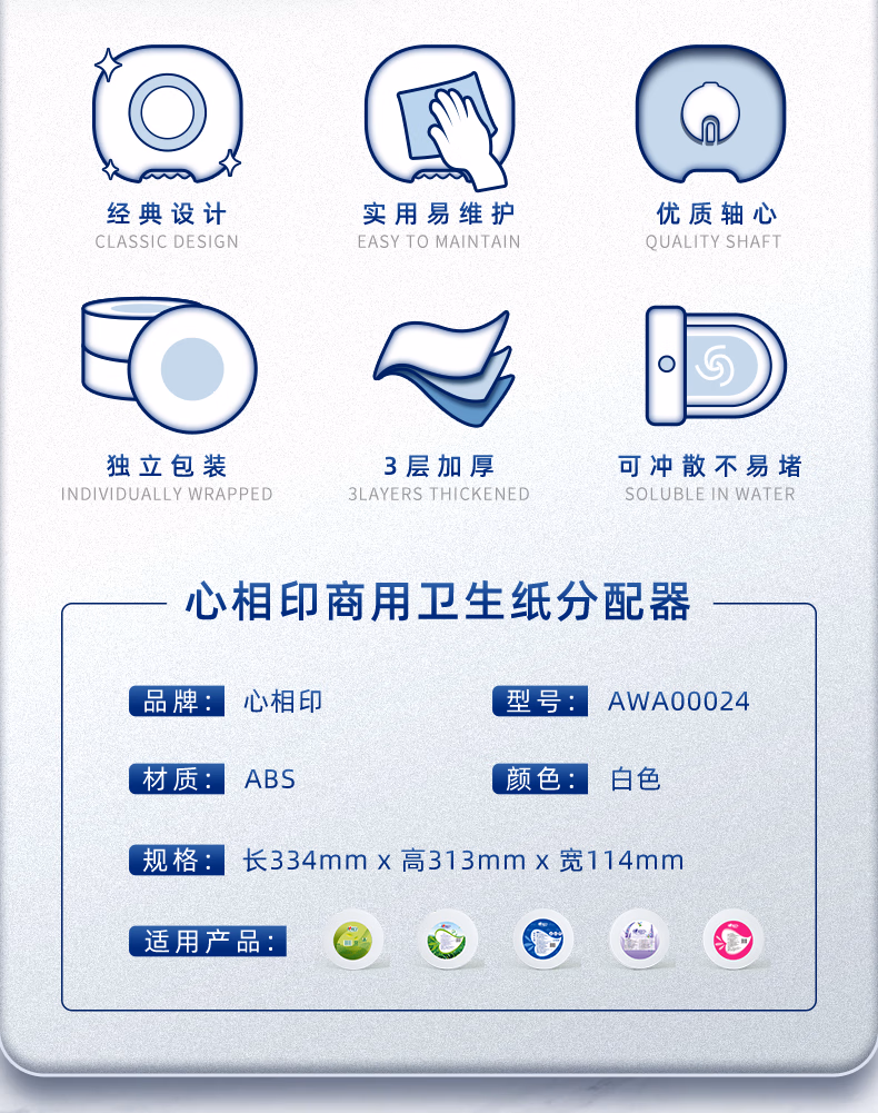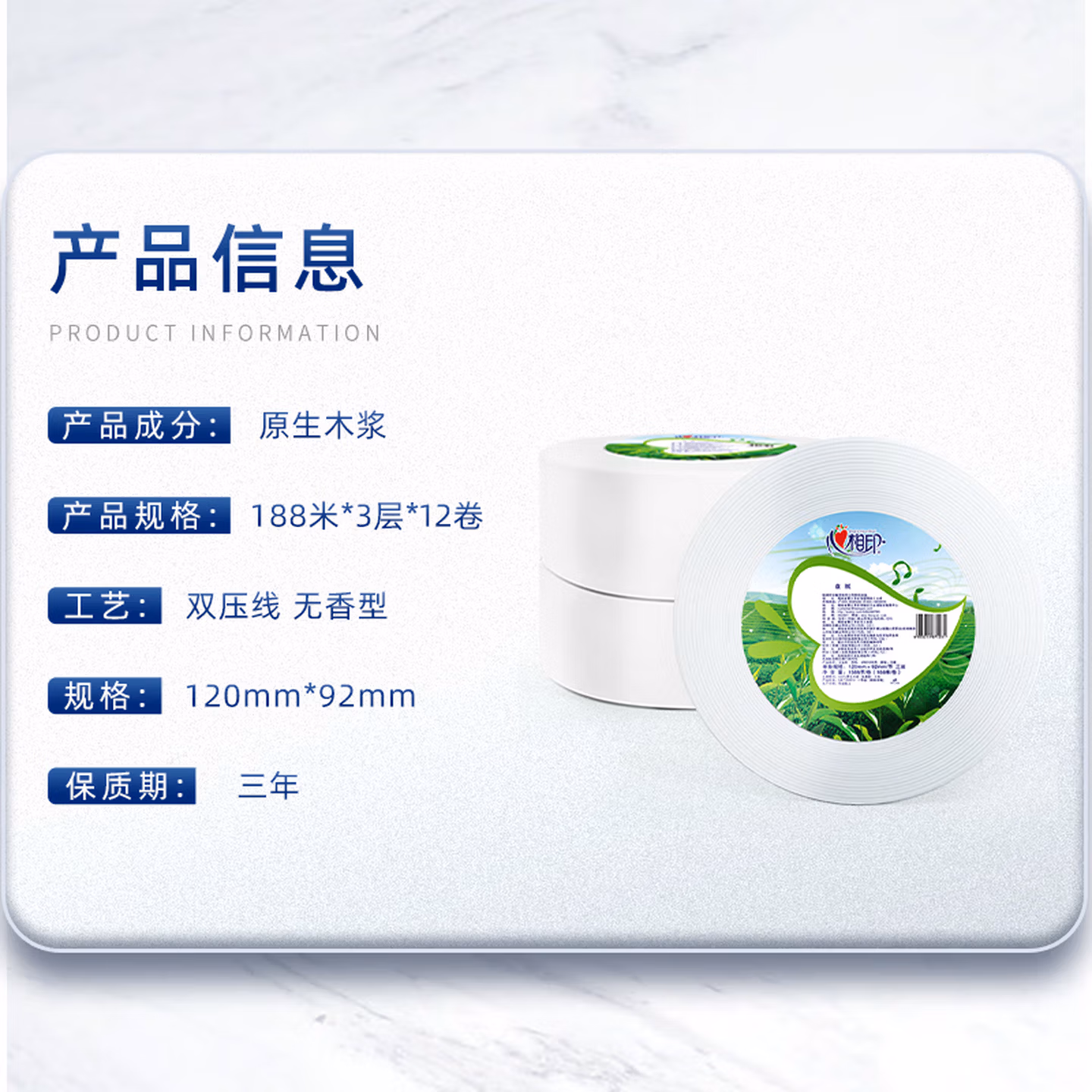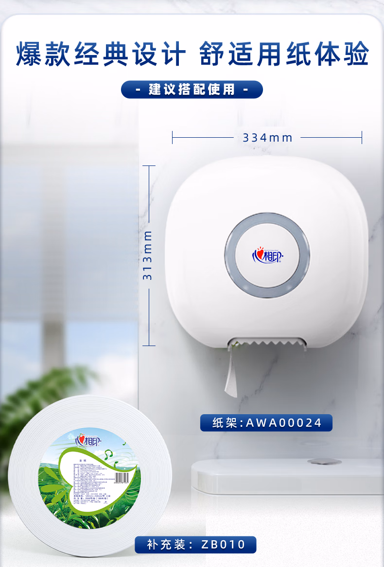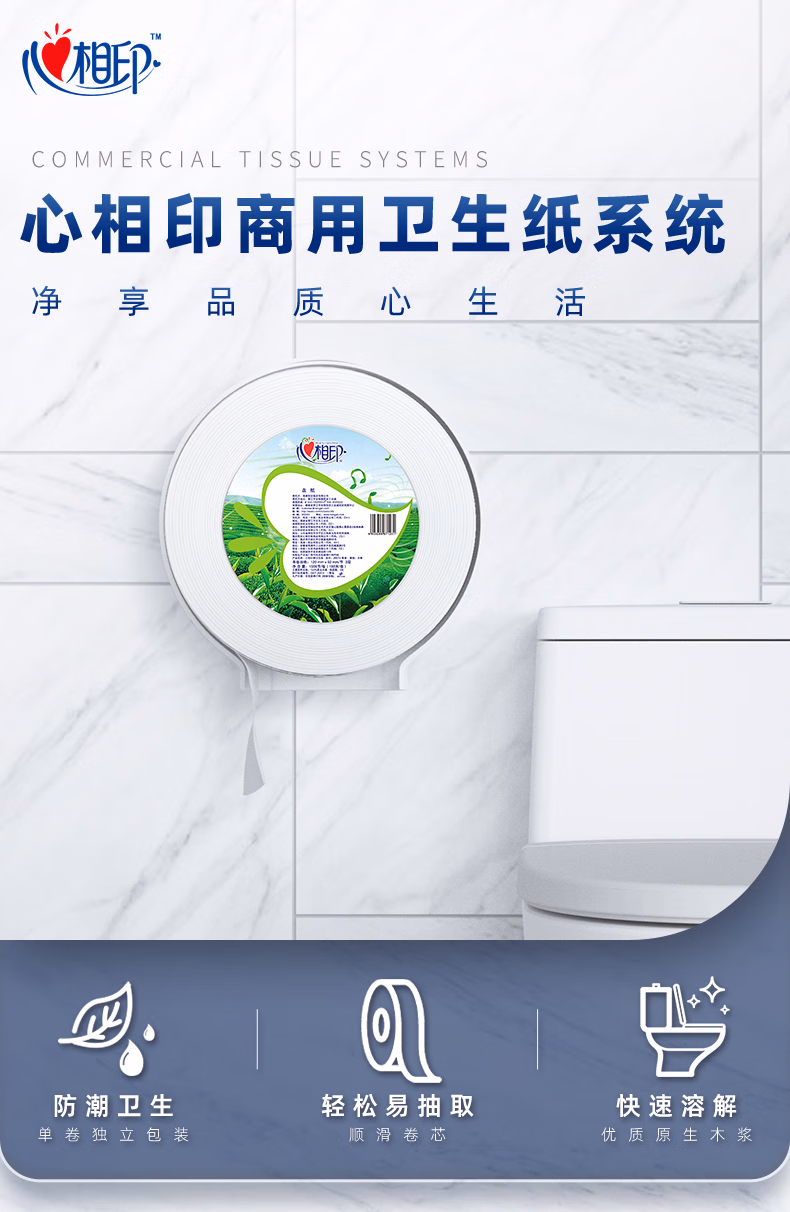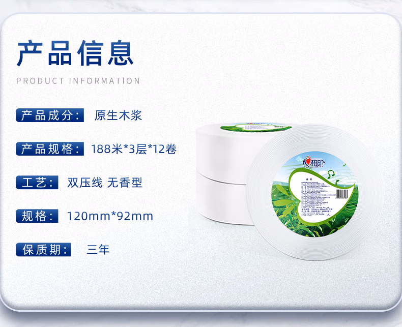 > 心相印ZB010大盘纸3层188米12卷大卷纸卫生纸手纸厕纸卷筒纸酒店企业用 3层 188m*12卷
