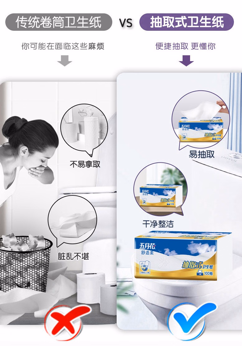 > 五月花(May Flower)抽纸纸巾卫生纸厕纸擦手纸厕所手纸18包家用整箱