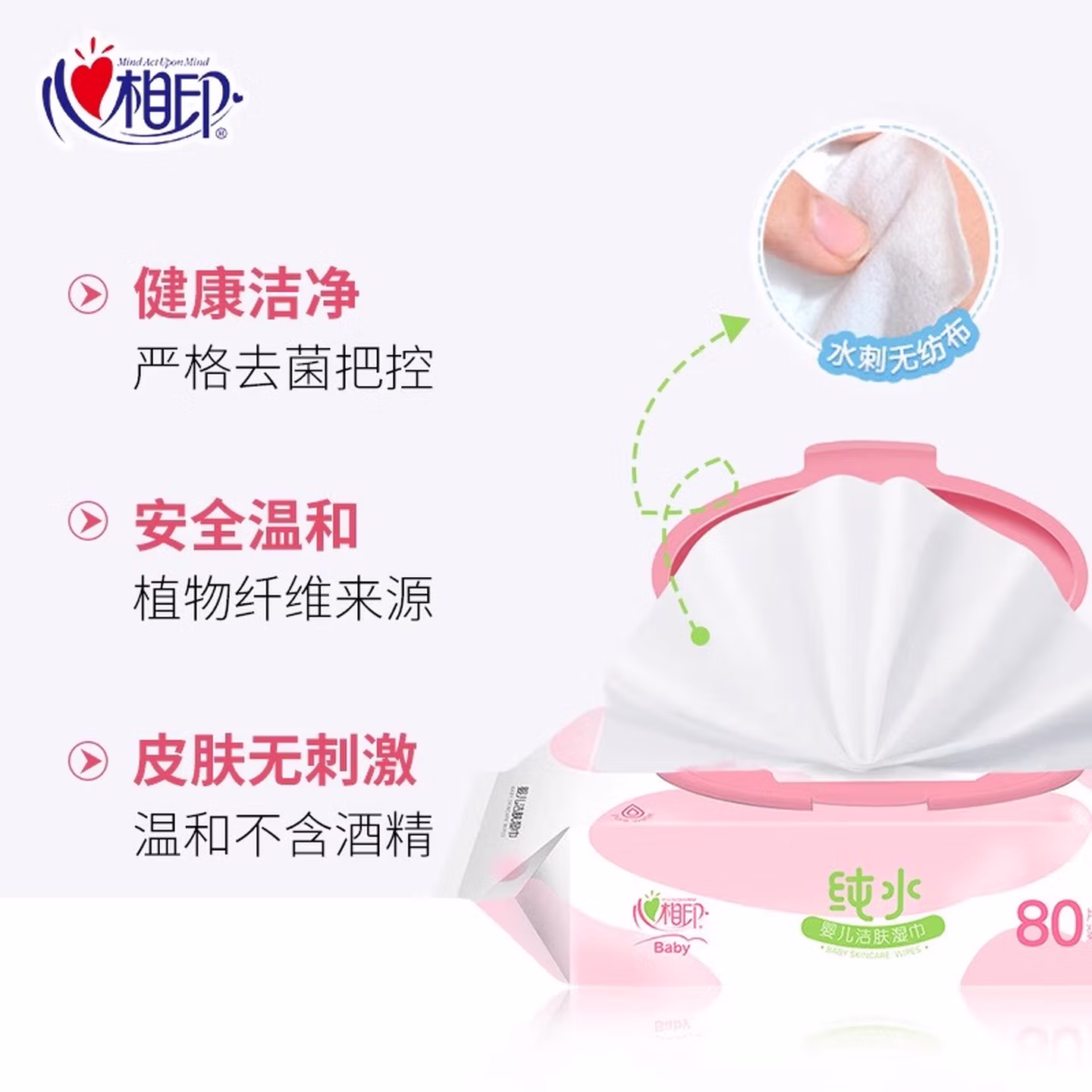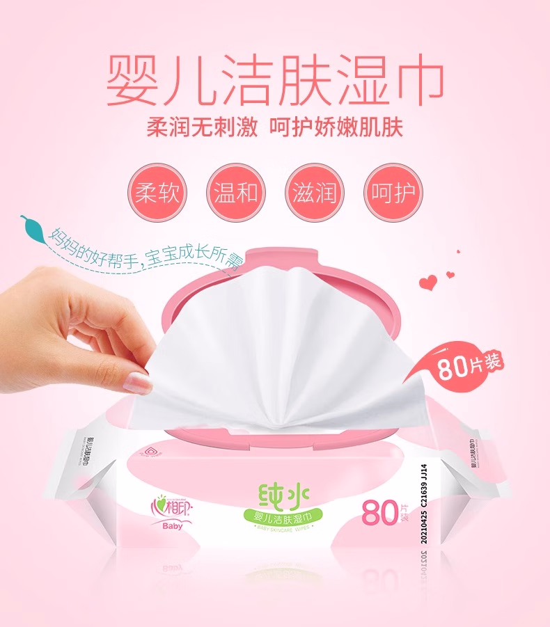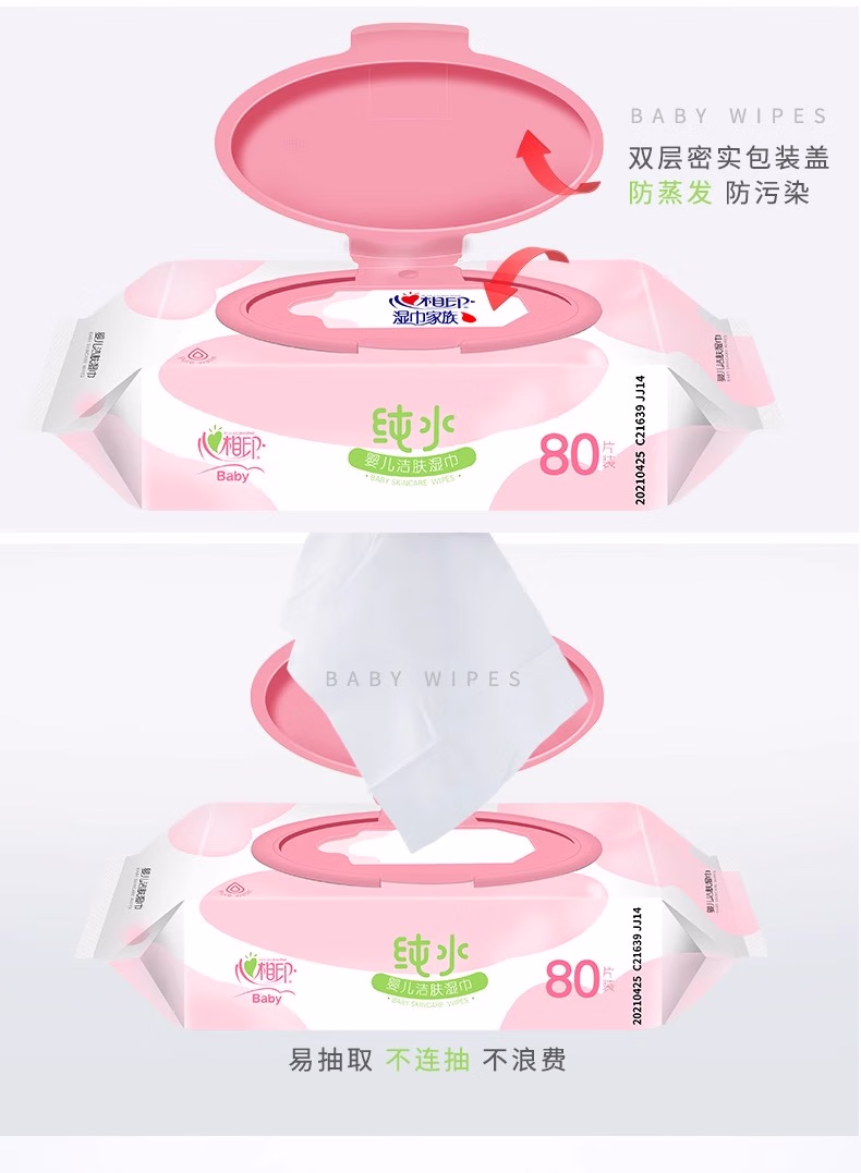 > 心相印婴儿纯水湿巾80片大包宝宝湿巾EDI洁肤湿纸巾擦手屁屁整箱 纯水80抽*3包
