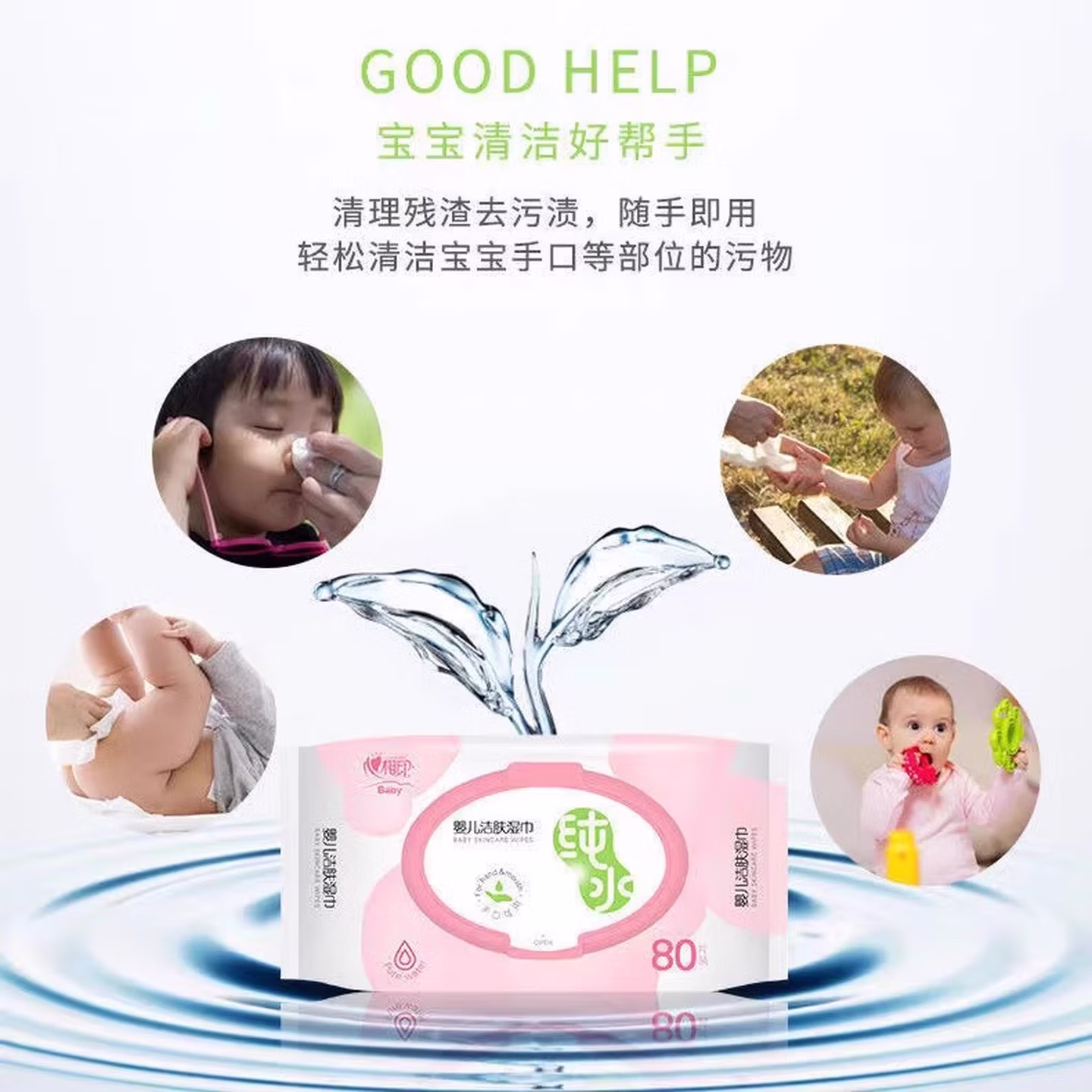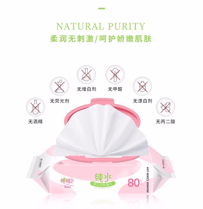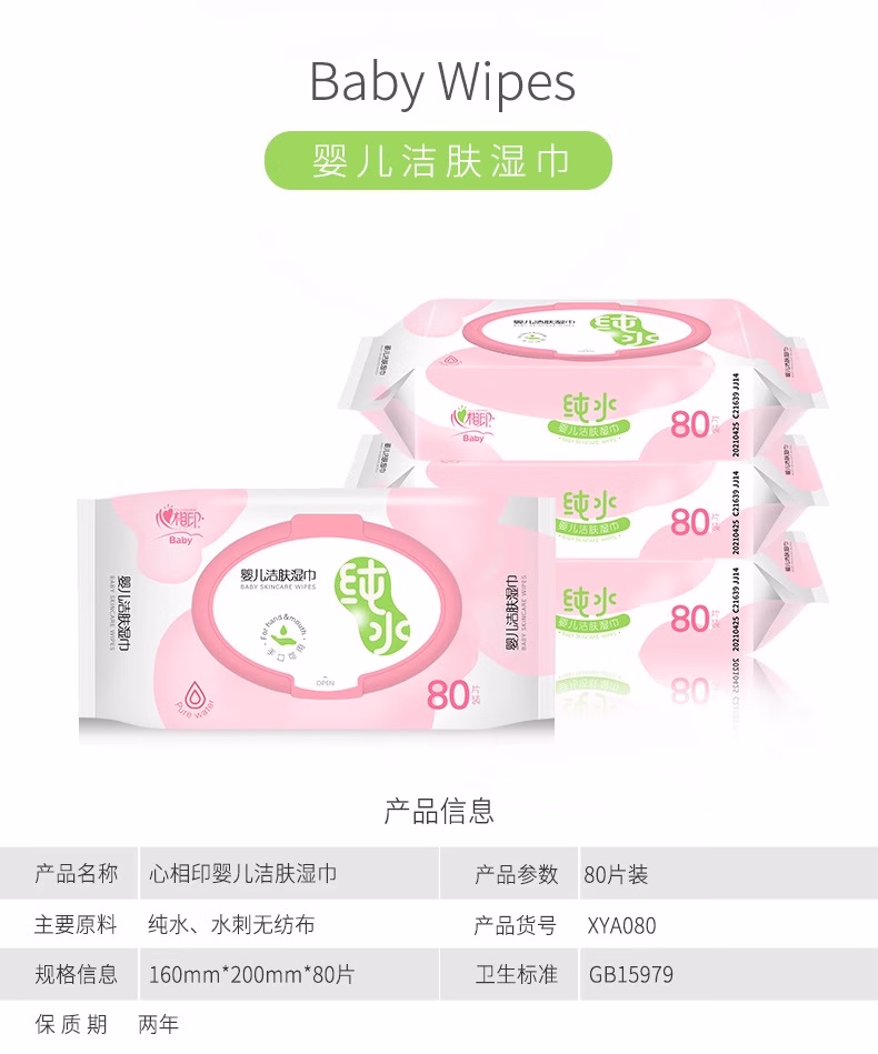 心相印婴儿纯水湿巾80片大包宝宝湿巾EDI洁肤湿纸巾擦手屁屁整箱 纯水80抽*3包