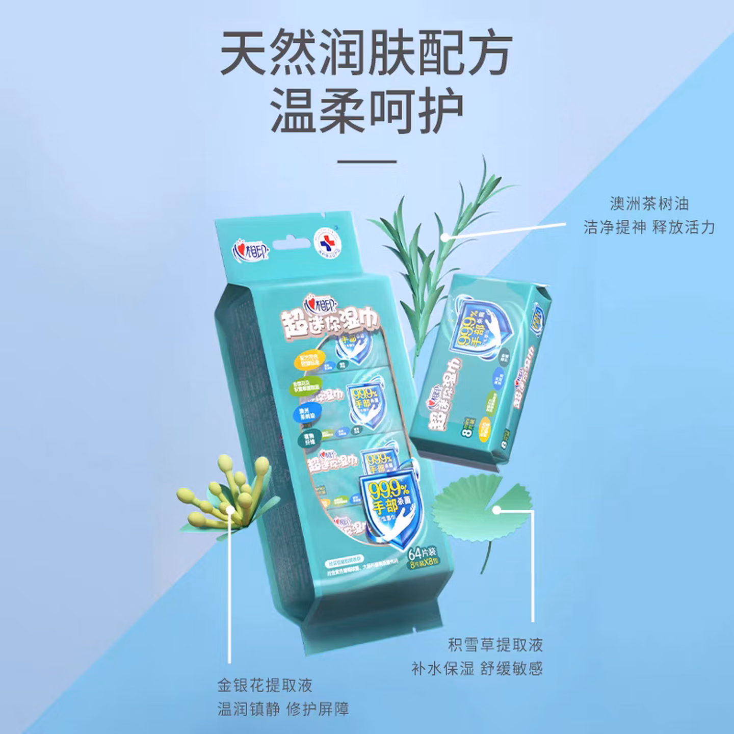 > 心相印今日特卖茶语系列淡淡茶香湿巾纸超迷你便携卫生湿巾擦手 24包