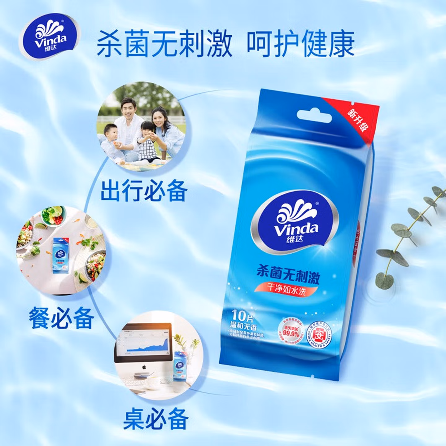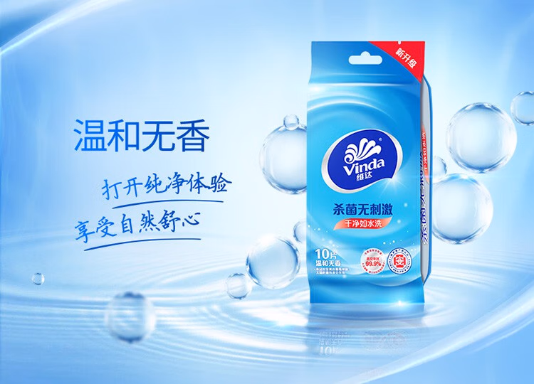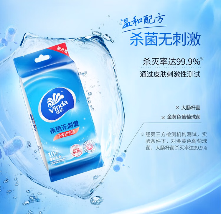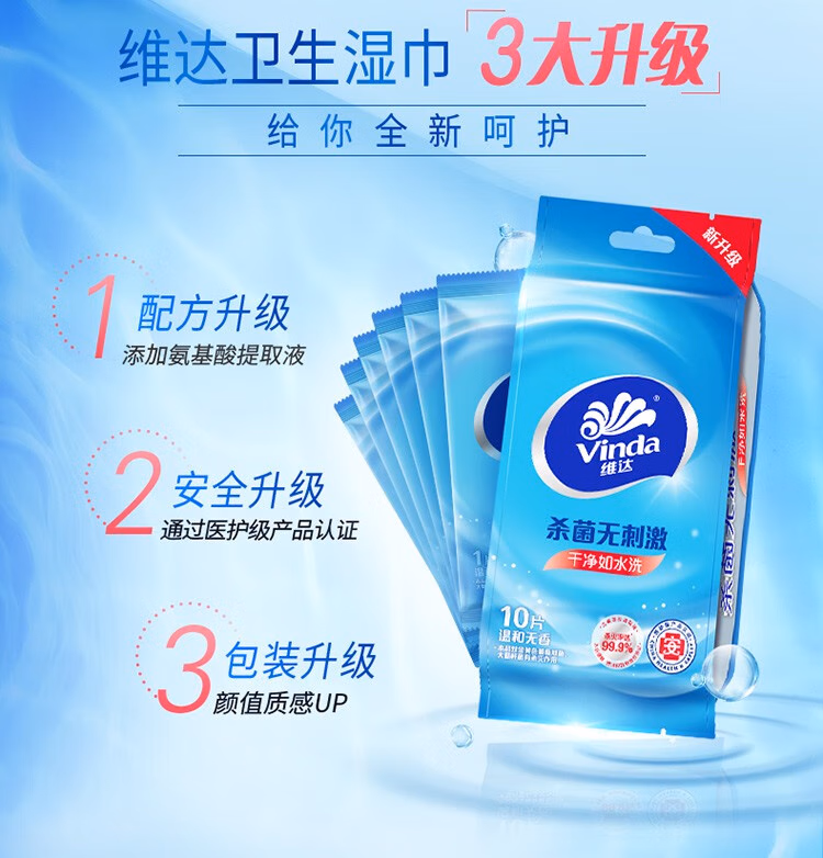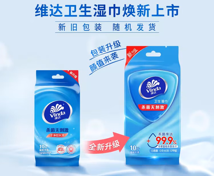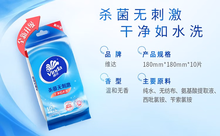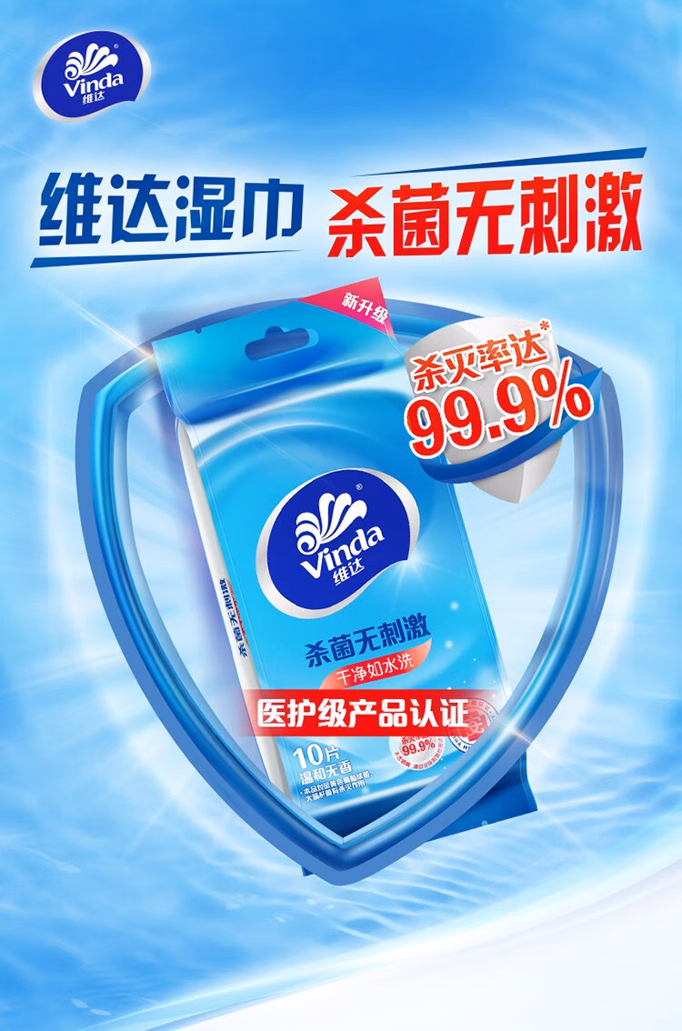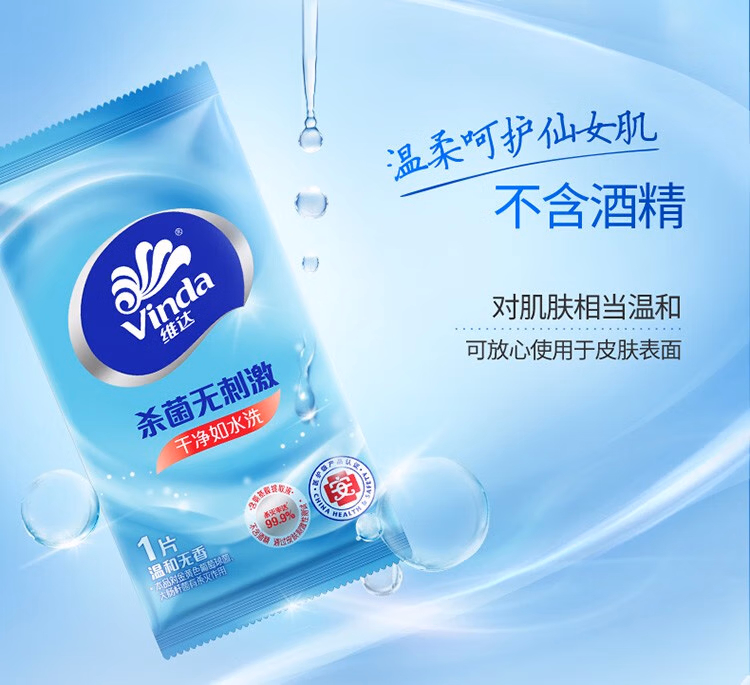 > 维达(Vinda)便携湿巾 单片独立包装湿纸巾 杀菌消毒运动出行装 便携单片独立包装10片*30包【到手300片】