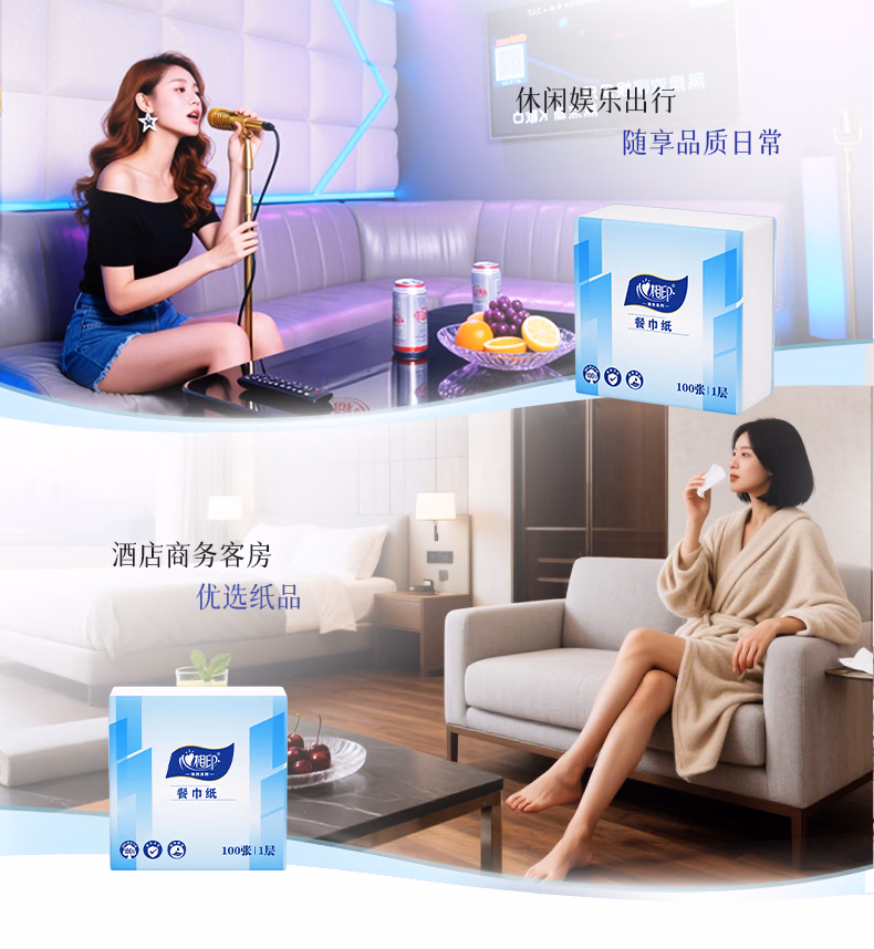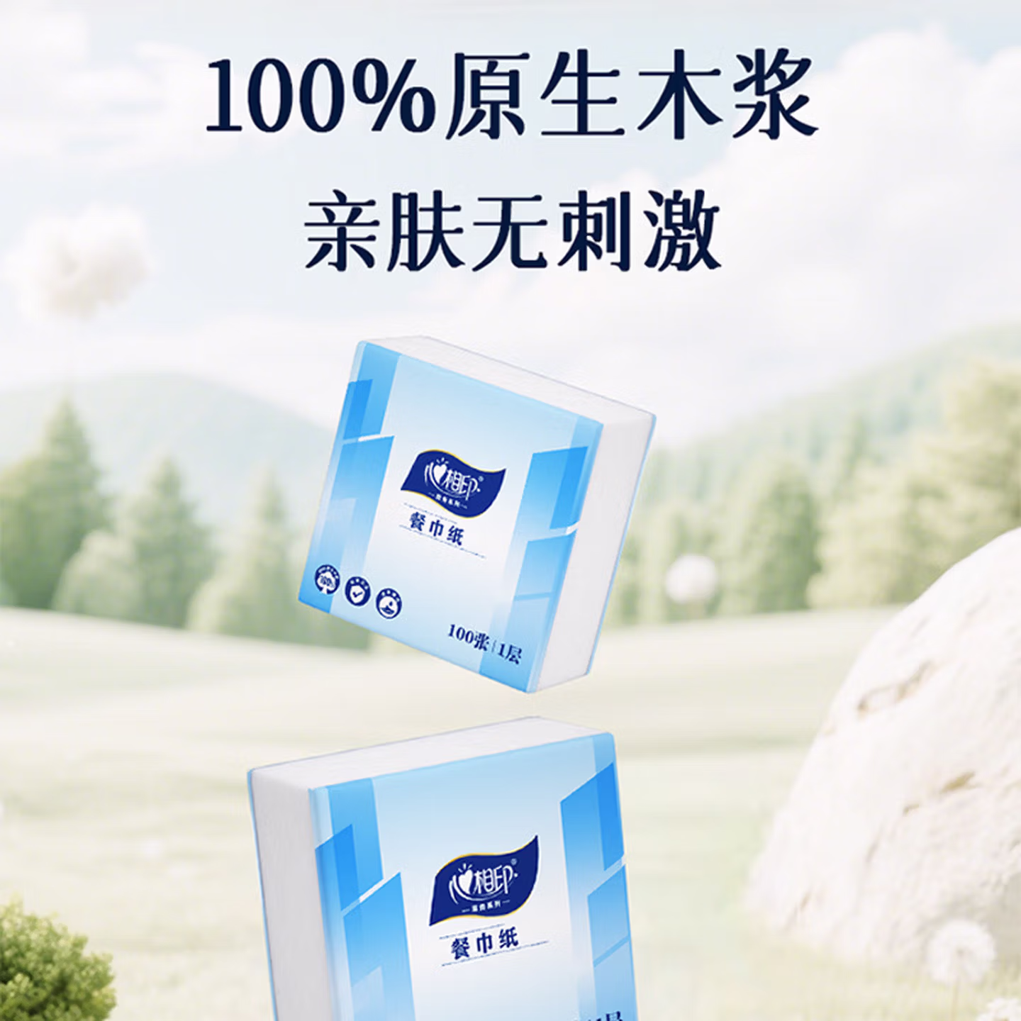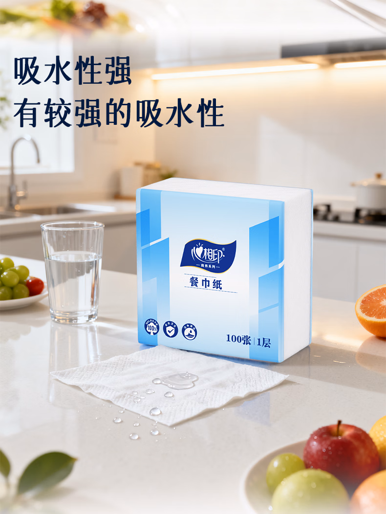 心相印抽纸面巾纸餐巾纸卫生纸宝宝可用实惠装加厚纸巾箱装 实惠箱装餐巾纸【囤货装】 1层 100张*48包