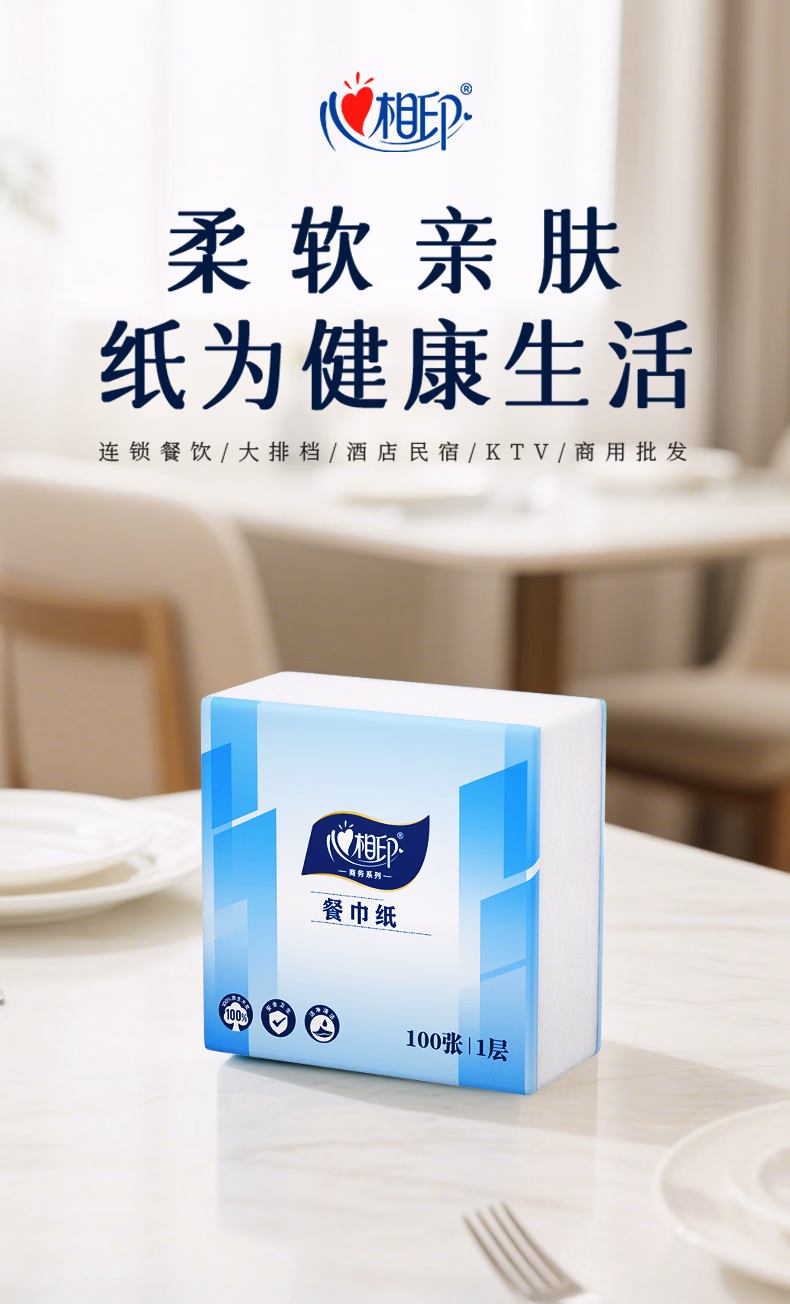 > 心相印抽纸面巾纸餐巾纸卫生纸宝宝可用实惠装加厚纸巾箱装 实惠箱装餐巾纸【囤货装】 1层 100张*48包