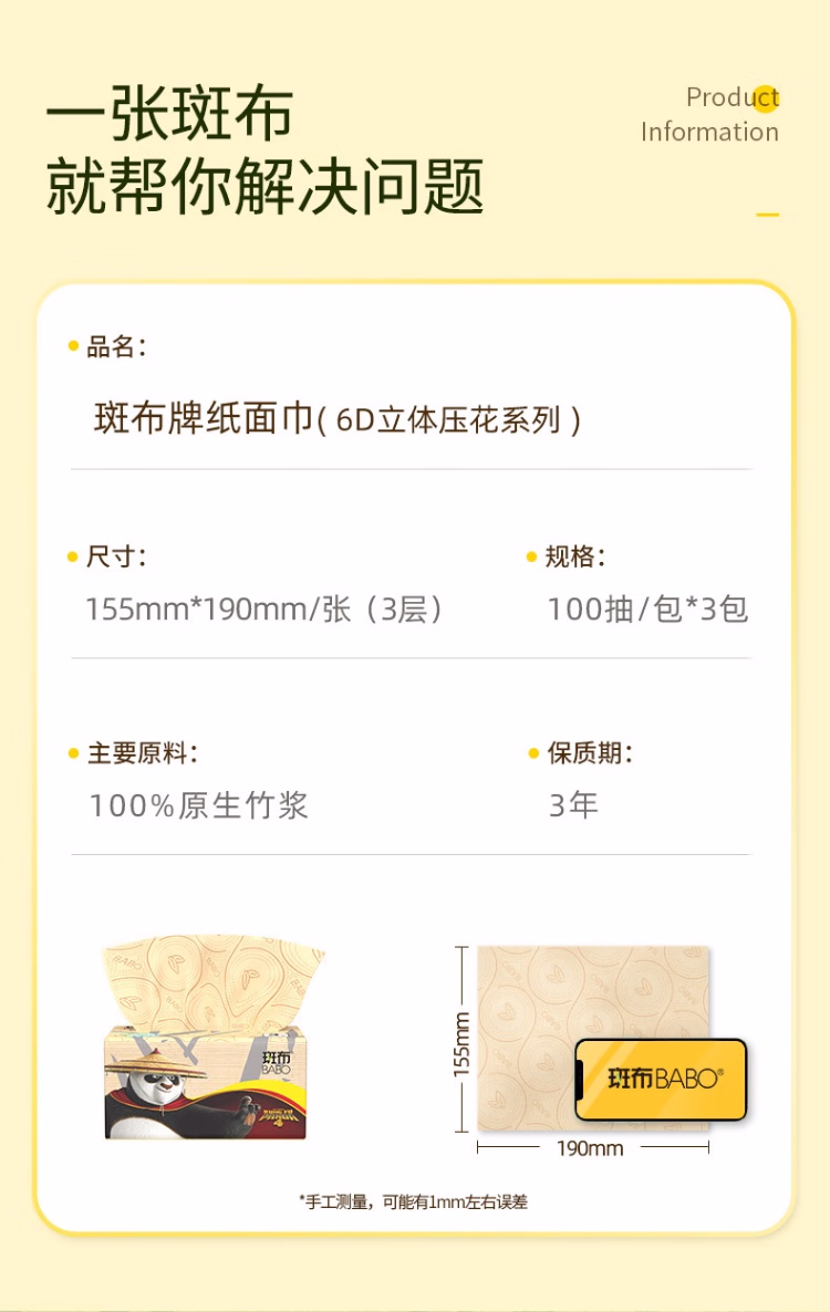 斑布斑布M码加大100抽本色卫生纸家用抽纸餐巾纸整箱批发纸巾 100抽3包