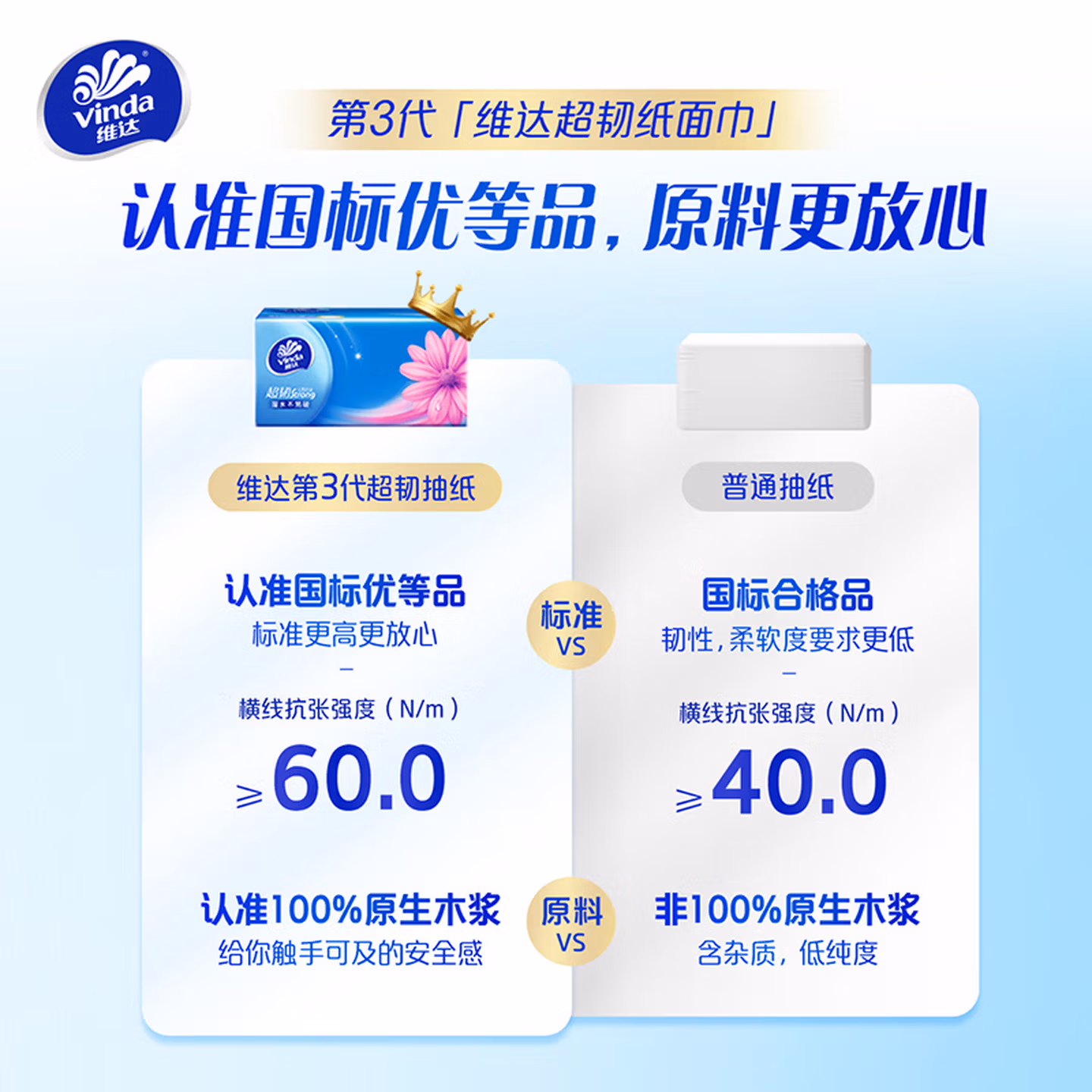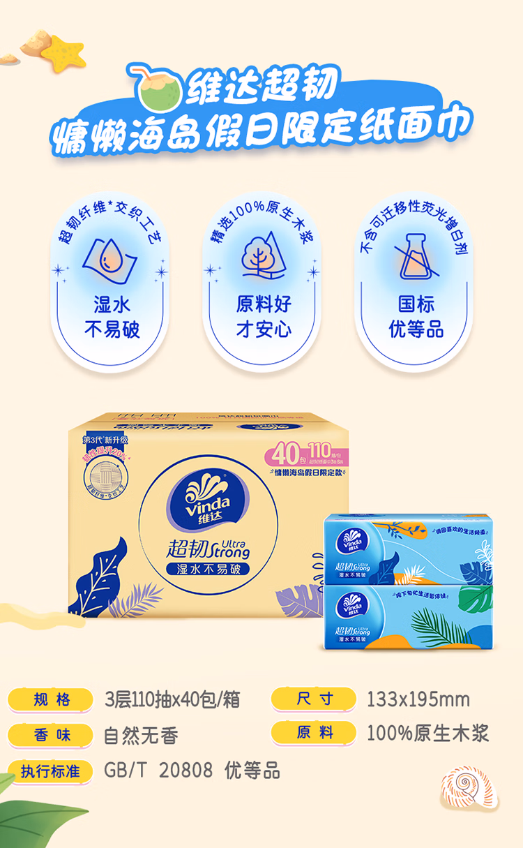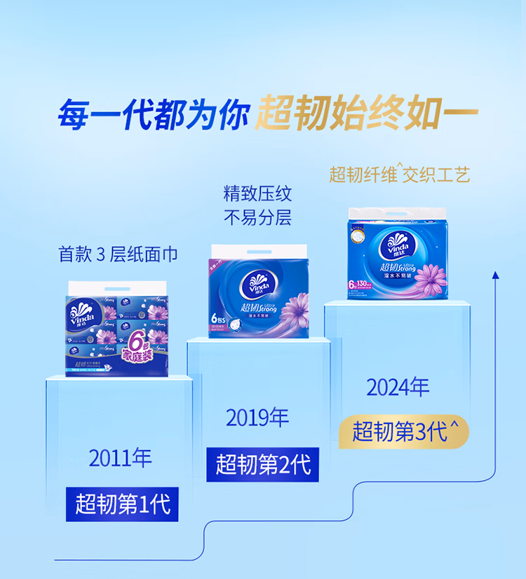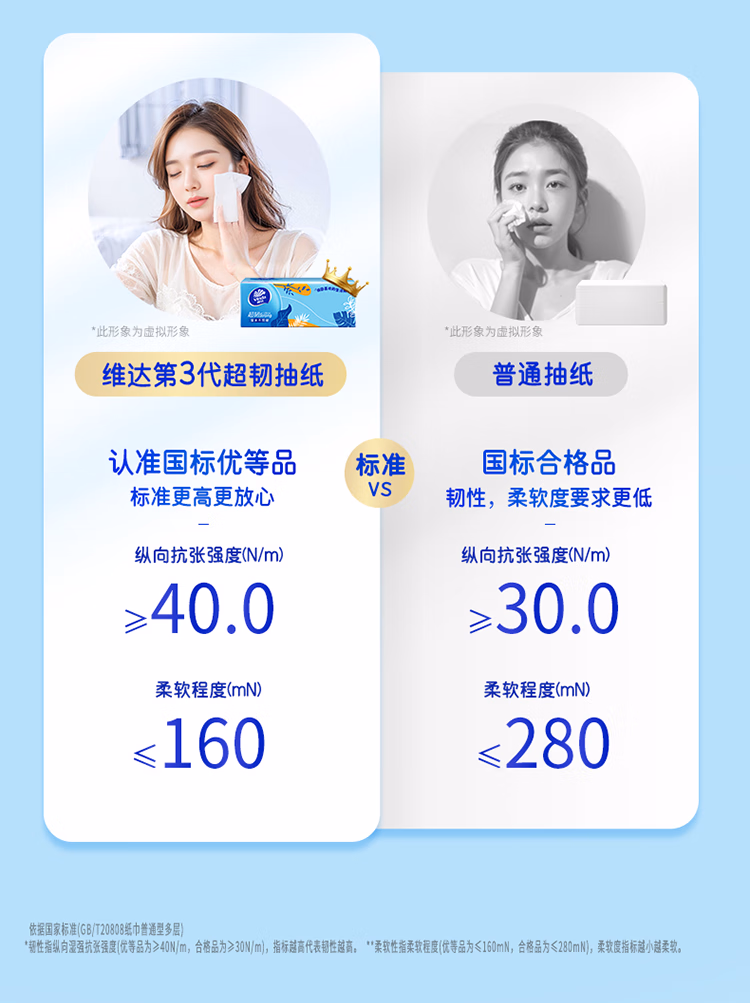 > 维达(Vinda)抽纸 超韧3层150抽*24包 真S码 湿水不易破 卫生纸 餐巾纸 整箱