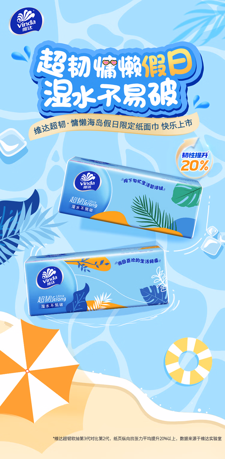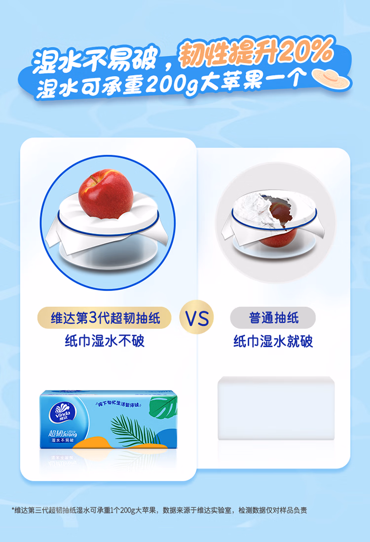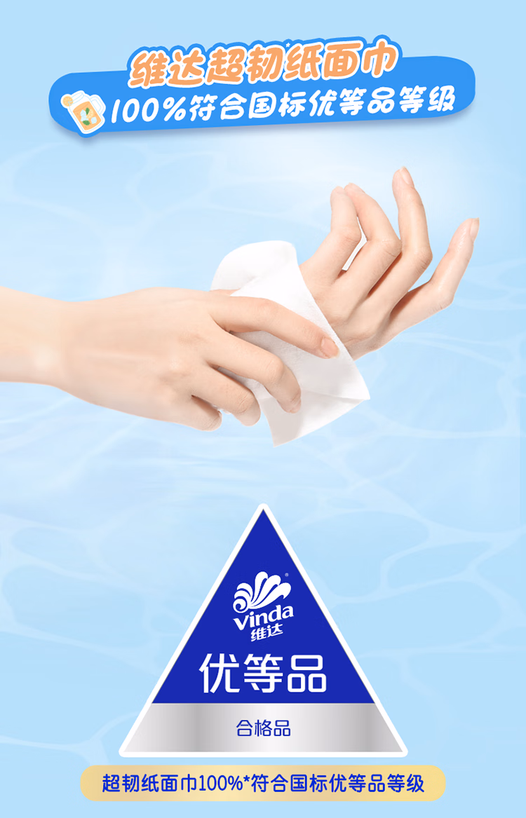 维达(Vinda)抽纸 超韧3层150抽*24包 真S码 湿水不易破 卫生纸 餐巾纸 整箱