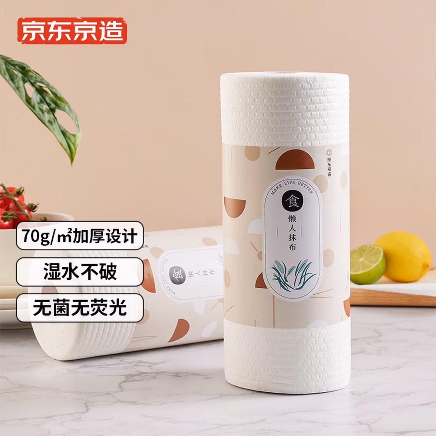 京东京造 加厚一次性懒人抹布100片 厨房卷纸70g高克重 吸油吸水