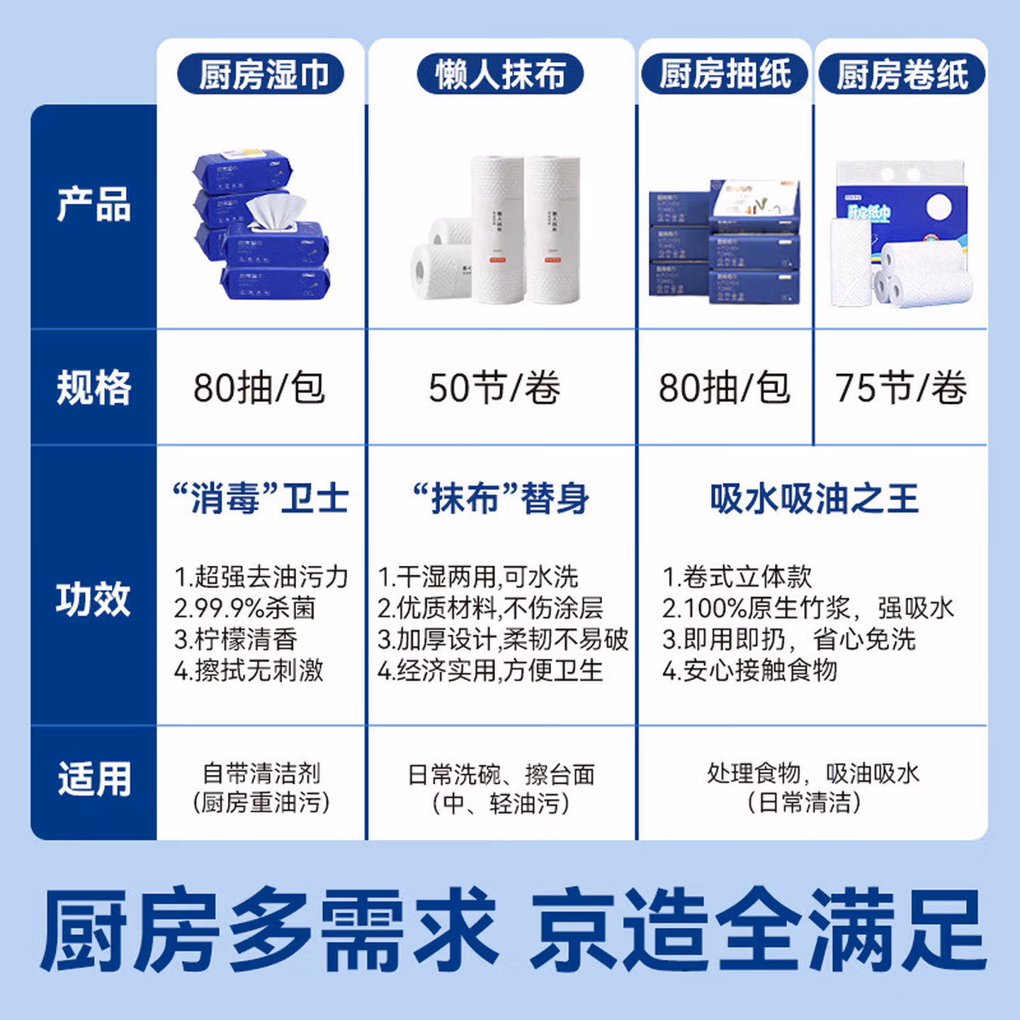 > 京东京造 加厚一次性懒人抹布100片 厨房卷纸70g高克重 吸油吸水